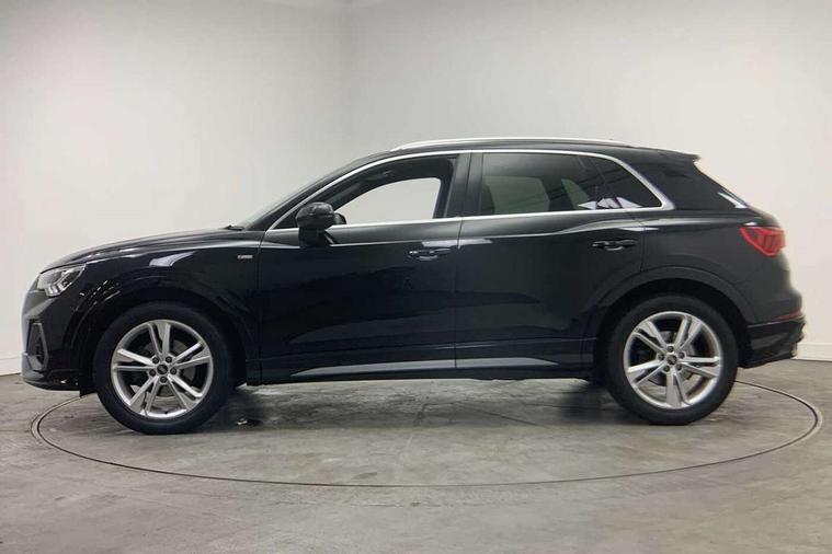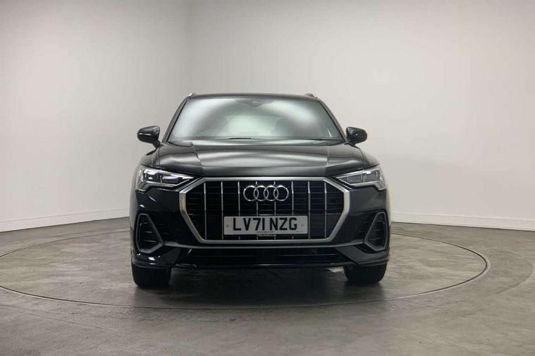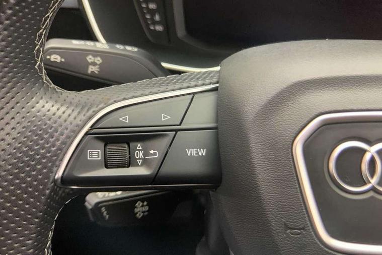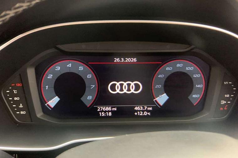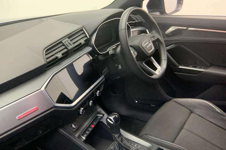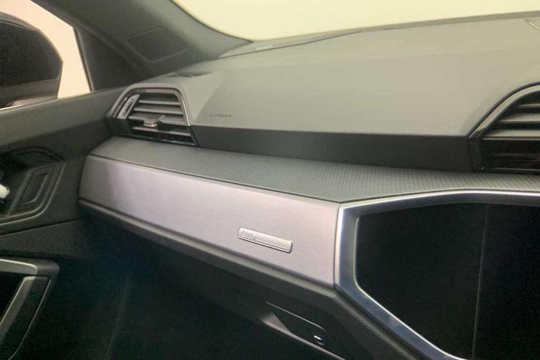 Amazon alexa Integration, Audi connect safety and service (e-call), Audi drive select, Audi lane departure warning, Audi smartphone interface includes wireless Apple carplay/Android Auto, Audi Virtual Cockpit - 10.25" display, Bluetooth interface, Camera based traffic sign recognition, Cruise control + speed limiter, MMI Navigation Plus with high resolution 10.1 inch touchscreen colour display, Power operated tailgate, Progressive steering, Rear parking sensors, Service interval indicator, Start stop system with recuperation, Voice control system with natural language interaction, 48V Mild hybrid technology, Sports suspension, 2 USB-C ports with charge and data functions, 6 passive loudspeakers, DAB digital radio module, Acoustic windscreen, Aluminium roof rails, Aluminium window trim, Auto dimming frameless rear view mirror, Body coloured bumpers, Electrically folding, adjustable and heated door mirrors with integrated LED side indicators and kerb view function for passenger side, Front and rear electric windows, Front fog lights, Front side air inlets in matt platinum grey, Front spoiler blade in matt platinum grey, Grille vertical bars in aluminium silver/Matt, High gloss black finish B and C pillars, LED headlights with LED daytime running lights and dynamic rear indicator, LED rear lights, Privacy glass dark tinted rear and rear-side windows (from B-pillar backwards), Rain and light sensors, Rear diffuser strip in matt titanium black, S line badges on front wings, S Line front and rear bumpers, Side skirt insert in matt Platinium grey, Silver chrome grille surround, Titanium black radiator grille, 12V socket in rear centre console, 40:20:40 folding with manual adjustment for 60:40 forwards/backwards position and backrest angle, Adjustable rear seat bench/backrest with centre armrest and cupholder, Black cloth headlining, Dual zone electronic climate control, Front and rear black floor mats with contrast stitching in rock grey, Front and rear headrests, Front and rear roof module including reading lights, Front centre armrest, Glove compartment lighting, Height and reach adjustable steering wheel, Illuminated door sill trims with S logo, ISOFIX child seat mounting for front passenger with airbag deactivation and outer rear seat including top tether attachment point for outer rear seats, Luggage compartment light, Manual front seats with height adjustment, Perforated leather gearknob, Stainless steel luggage compartment sill finisher, Stainless steel pedals, Tool kit, Non smoking pack - Q3, 3x3 point rear seatbelts, 6 airbags - Driver, front passenger, curtain and side windows, Audi pre-sense front with pedestrain and cyclist recognition, Electrically operated child locks on rear doors, Electromechanical parking brake, Electronic stabilisation control including ABS, ASR and EDL, Hill descent control, Hill hold assist, Pre sense basic, Seatbelt monitoring, Tyre pressure warning, Warning triangle and first aid kit, Anti theft alarm, Anti theft wheel bolts, Remote central locking, Dark matt brushed aluminium inlay, Detail dashboard around MMI touch colour display in glass look, black with surround in aluminium look, Leatherette door armrest, Tyre repair kit,