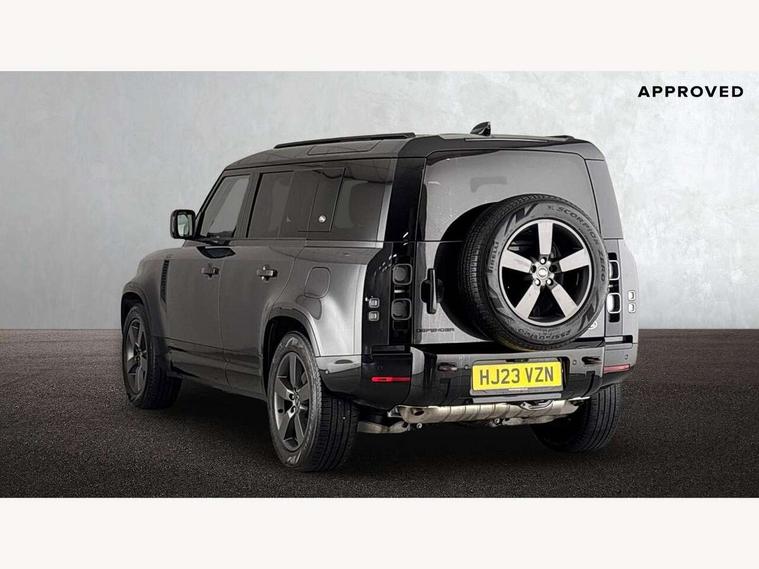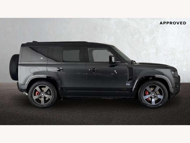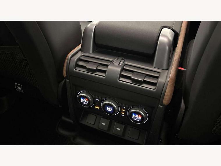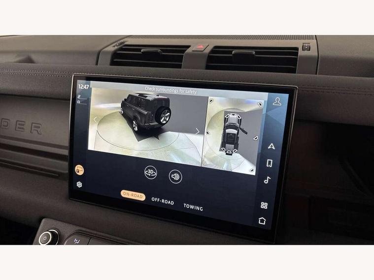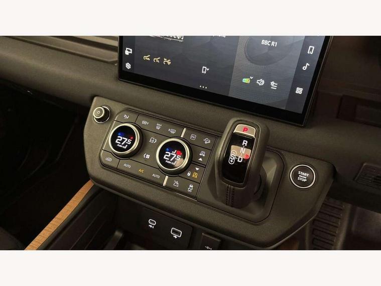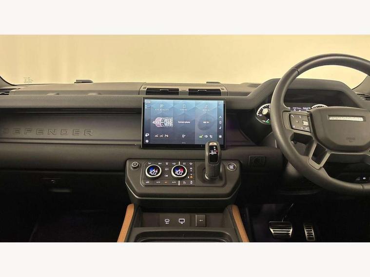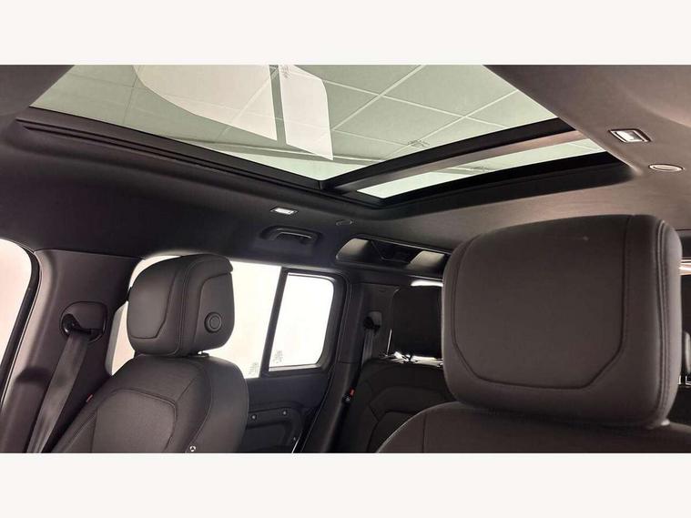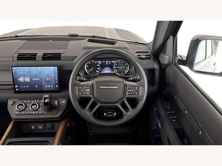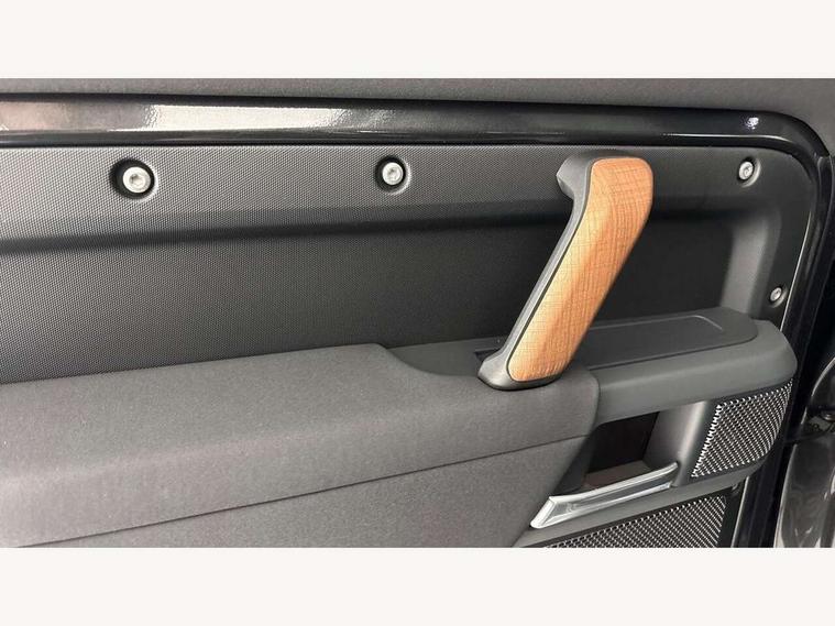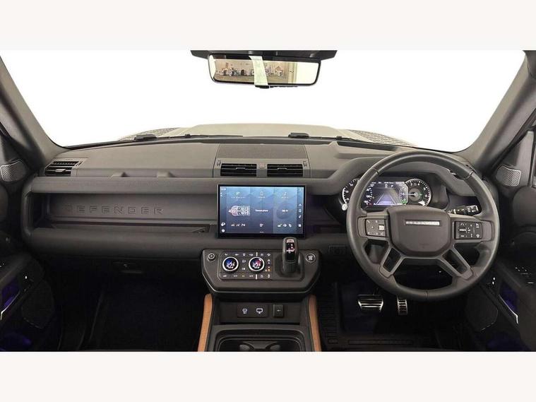 11.4" touchscreen, 360 degree parking aid, 3D Surround Camera with 360 View, 180 Rear View, Front Traffic Detection, Forward Vehicle Guidance, Tow Hitch Assist and clear sight Ground View, Adaptive cruise control, Android Auto, Apple CarPlay, Assisted tailgate with soft close, Blind spot assist, Bluetooth system, Brake pad wear indicator, Clear exit monitor, Connected navigation pro, Driver condition monitor, Electric power assisted steering (EPAS), Head up Display, Lane keep assist, Push button start, Rear collision monitor, Rear traffic monitor, Traffic sign recognition with adaptive speed limiter, Trip computer, Wade Sensing, 7 kW onboard charger, 8 speed automatic transmission, AC/DC charging, Adaptive dynamics, All terrain progress control, All wheel drive system, Configurable Terrain Response, Electronic active differential with brake torque vectoring, Electronic air suspension, Home charging cable mode 2 basic, Public charging cable, Terrain Response 2, Twin speed transfer box, DAB Radio (Digital Audio Broadcasting), Meridian 700w surround sound audio system with 15 speakers, Pivi pro connected, Automatic headlight levelling, Automatic headlights, Centre high mounted stop light, ClearSight interior rear view mirror, Darkened LED tail lights, Electric heated/power fold door mirrors with approach lights and auto dimming driver side, Electric windows with one touch open/close and anti-trap, Follow me home lighting, Front fog lights, Heated rear window with timer, Heated windscreen, Illuminated metal treadplates with brand name script, Matrix LED headlights with signature DRL, Privacy glass, Puddle lights, Rain sensing windscreen wipers, Rear fog lights, Rear side wing doors, Rear wiper, Side hinged tailgate, Solar attenuating windscreen, Trailer stability assist, X badge, 12V power socket in loadspace, 14 way heated and cooled electric adjustable memory front seats with 4 way manual headrests, 3 seat bench in 2nd row, 40:20:40 folding, heated rear seats with centre armrest, Air quality sensor, Alpine lights, Bright metal pedals, Cabin Air Purification plus, Domestic plug socket, Durable rubber cabin flooring, Durable rubber loadspace flooring, Ebony morzine headlining, Electric reach + rake adjustable steering column, Extended leather upgrade, Footwell lights, Front passenger isofix child seat attachment, Heated steering wheel, Loadspace cover, Loadspace Hook, Multifunction steering wheel, Overhead stowage for sunglasses, Premium cabin lighting, Rear headrests, Rear ISOFIX, Rear reading lights, Single front passenger seat, Standard seat configuration, Storage glovebox, Sunvisors with illuminated vanity mirrors, Three zone climate control, Twin front cupholders with cover, Online pack with data plan - Defender, 5 x 3 point seatbelts, ABS, Brake hold function, Cornering brake control (CBC), Cross car beam in dark grey powder coat brushed finish, Customer configurable autolock, DSC - Dynamic Stability Control, EBD - Electronic brakeforce distribution, Electric parking brake (EPB), Emergency brake assist, Emergency braking, ESP + traction control, Front airbags with passenger seat occupant detector, HDC - Hill descent control, Hill launch assist, Low traction launch, Power operated child locks, Remote for (e-Call, Optimised assistance call, InControl app, Climate, beep and flash and door), RSC - Roll stability control, Seat belt reminder, TPMS (Tyre pressure monitoring system), Alarm, Immobiliser, Intrusion sensor, Keyless entry, Locking wheel nuts,