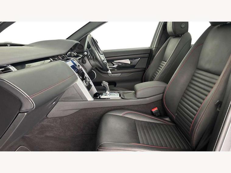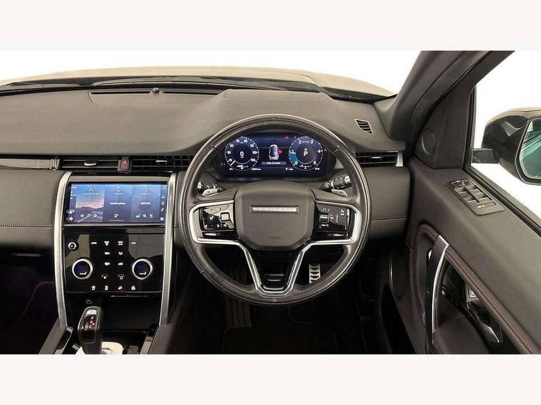 10" touch screen, 3D Surround Camera with 360 View, 180 Rear View, Front Traffic Detection, Forward Vehicle Guidance, Tow Hitch Assist and clear sight Ground View, Android Auto, Apple CarPlay, Blind spot assist, Clear exit monitor, Driver condition monitor, Front and rear parking aid, InControl remote premium, Interactive driver display, Lane keep assist, PAS, Pivi Pro connected navigation system with upgraded Infotainment, Powered tailgate/boot lid, Rear traffic monitor, Rear view camera, Service interval indicator, Traffic sign recognition with adaptive speed limiter, Trip computer, Wade Sensing, All terrain progress control, Coil suspension system, Diesel particulate filter, Terrain Response 2, Bluetooth connectivity including audio streaming, Digital Audio Broadcast radio-DAB, Steering wheel mounted audio controls, Automatic headlight levelling, Automatic headlights, Door mirror memory, Electric front/rear windows, Fixed panoramic sunroof with powered sunblind, Power fold, auto-dimming, heated door mirrors with approach lights, Rain sensing windscreen wipers, Rear fog lights, Rear side wing doors, Rear wiper, Bright metal pedals, Centre console with armrest, Front passenger isofix child seat attachment, Rear headrests, Satin chrome gearshift paddles, Sunvisors with illuminated vanity mirrors, Third row dual adjustable individual seats, Tilt/reach adjustable steering wheel, Black exterior pack - Discovery sport, Online pack - Discovery sport, 3 point seatbelts on all seats, ABS, Brake hold function, Collision mitigation braking system, Cornering brake control (CBC), Driver/Front Passenger airbags, Drivers knee airbag, Electronic brake force distribution, Electronic parking brake, Emergency brake assist, ESP + traction control, Hill descent control, Hill launch assist, Pedestrian airbag system, Rear seat ISOFIX, Side and curtain airbags for front and 2nd row seats, Trailer stability control, Tyre pressure monitoring system, Battery Back Up System (BBUS) with tilt sensor, Intrusion sensor, Locking wheel nuts, Centre stack rails in noble chrome,