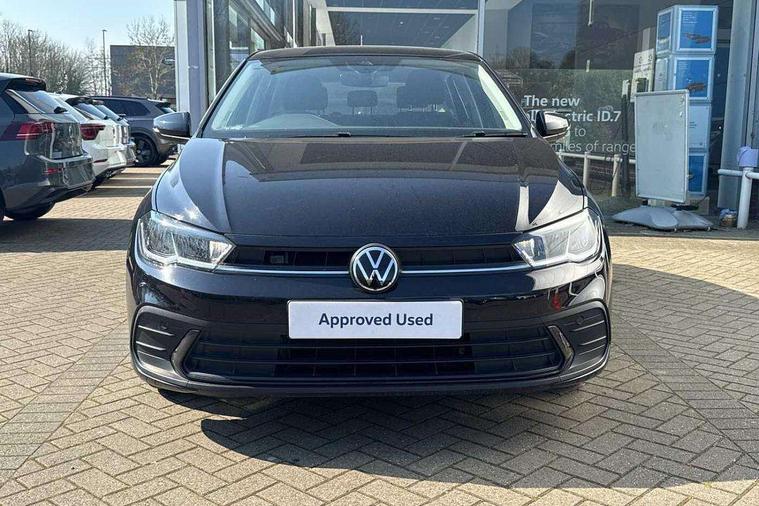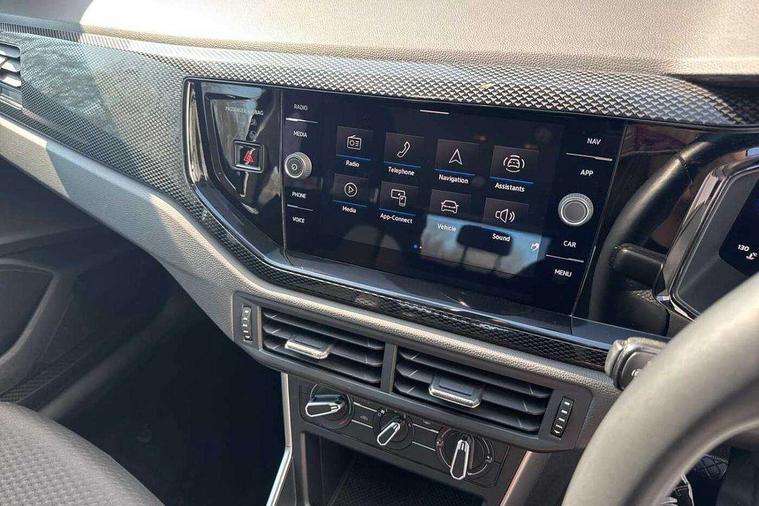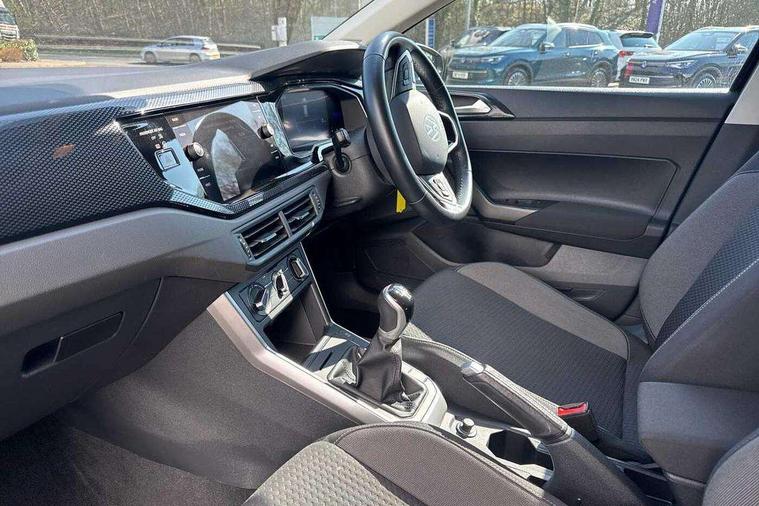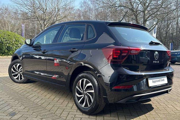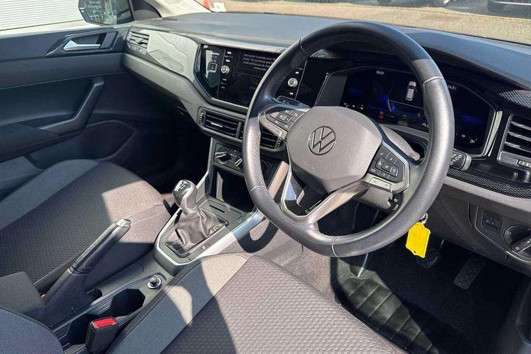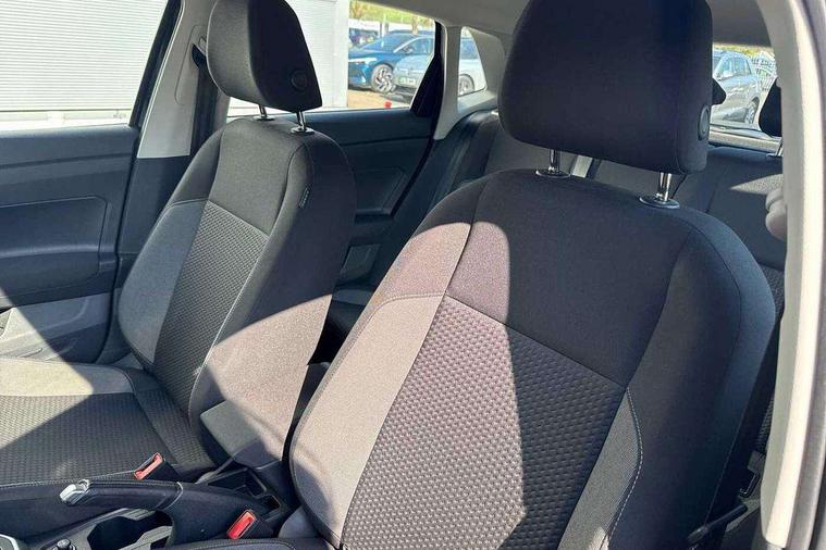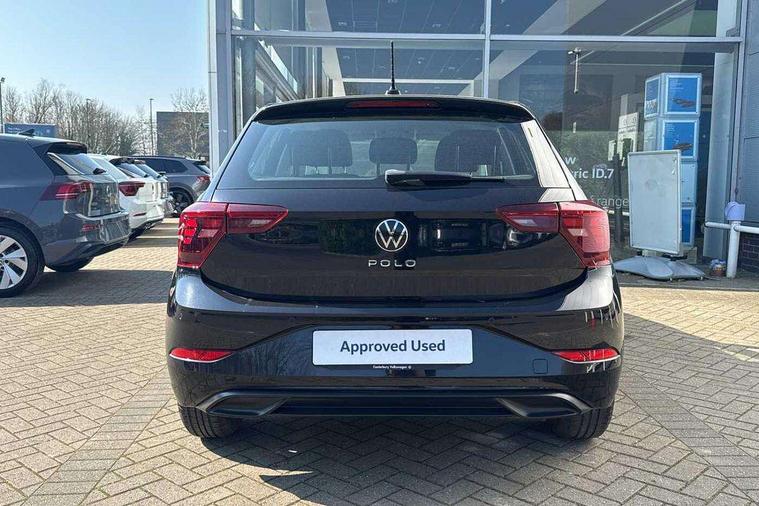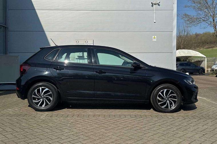 Adaptive cruise control without follow-to-stop and speed limiter, Bluetooth mobile phone interface, Driver alert system, Emergency call service, Front assist system, Power assisted speed sensitive steering, Preparation for We connect and We connect plus, Speedo and rev counter, electronic odometer, trip, service interval display and fuel gauge, Standard rear axle, Travel Assist - Lane keeping system and traffic jam assist, Travel assist including emergency assist, Trip computer, Warning signal and warning light for front and rear seatbelts not fastened, Washer fluid level indicator, Wireless app connect, Front wheel drive, Rear shock absorpion, Start-stop system with battery regeneration (recuperation - energy recovery during braking), DAB Digital radio, Diversity antenna for FM reception, Front and rear 6 speakers, Automatic dimming interior rear view mirror, Body colour bumpers, Body colour door handles, Body colour door mirrors, Electric front windows, Heat insulating darkened glass in side and rear windows, Heat insulating glass windscreen, Power folding adjustable/heated exterior mirrors and front passenger exterior mirror lowering function, Rain sensor, Rear electric windows, Rear fog light, Rear side wing doors, Rear windscreen washer and wiper with interval delay, Third brake light, 12V power socket in centre console, 2 front and 2 rear reading lights, 2 USB-C ports in the front, 2 USB-C charging sockets on the center console in the rear, 3 rear head restraints, 60/40 split folding rear seat and rear seat bench not split, Ceramique headliner, Chrome plated radiator grille inserts, air vent surrounds and light switch surrounds, Door and side trim panel, Driver and front passenger seat height adjustment, Driver/passenger sunvisors with illuminated vanity mirrors, Front centre armrest, Front seat backrest storage pockets, Front standard seats, Handbrake lever handle in leather, Hartley/Thomas cloth upholstery, Isofix child seat preparation easy-fit (for two outer rear seats, and front passenger seat) compatible with I-size, Leather trimmed gear knob, Luggage compartment cover, Luggage compartment floor, Luggage compartment lighting, Multifunction steering wheel, Single front passenger seat, Standard pedal cluster, Light and vision pack - Polo, 3 point height adj front seatbelts + pretensioners, 3x3 point rear seatbelts, ABS, Driver and front passenger airbag with front passenger airbag deactivation, Drivers and front passengers safety optimised head restraints, ESC (Electronic stability control) + EDL (Electronic Differntial lock) and ASR (Traction control), Extended and predictive pedestrian/ cyclist protection, Front curtain and side airbags with center airbag, Front disc brakes, Hill hold control, Manual child lock in rear doors, Rear drum brakes, Single tone horn, Tyre pressure loss indicator, Alarm with interior protection, Anti-theft alarm system with interior monitoring, backup horn, and towing protection, Anti-theft wheel bolts, Electronic engine immobiliser, Lava stone black gloss/matt decorative inserts in dash and front door panels, Low rolling resistance tyres,
