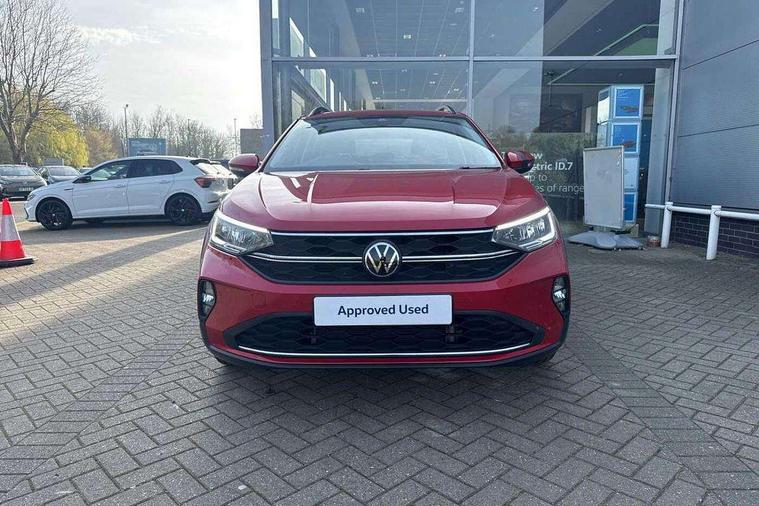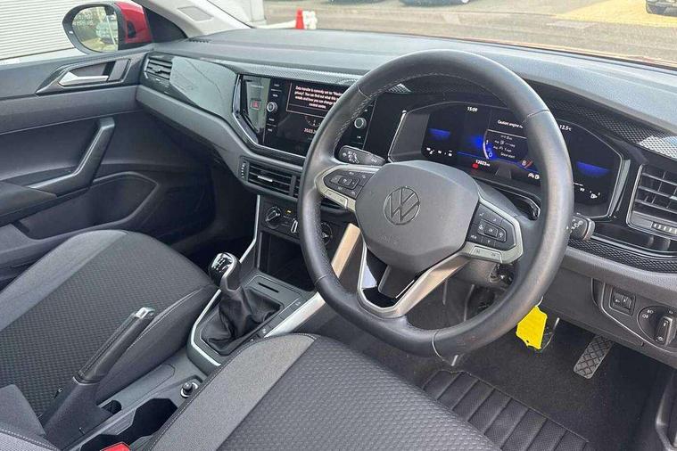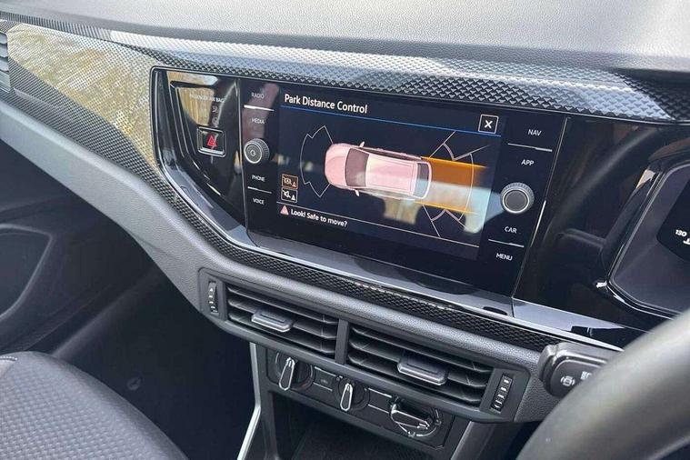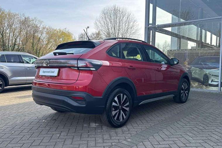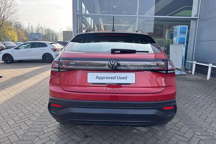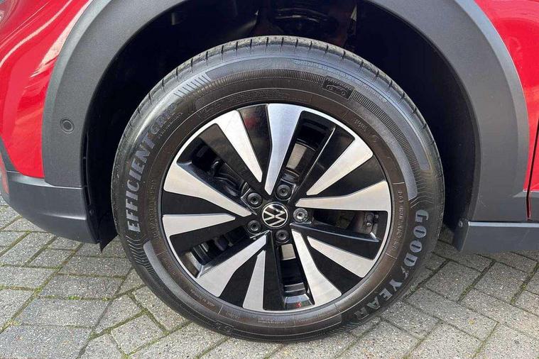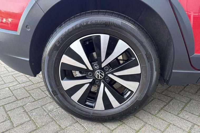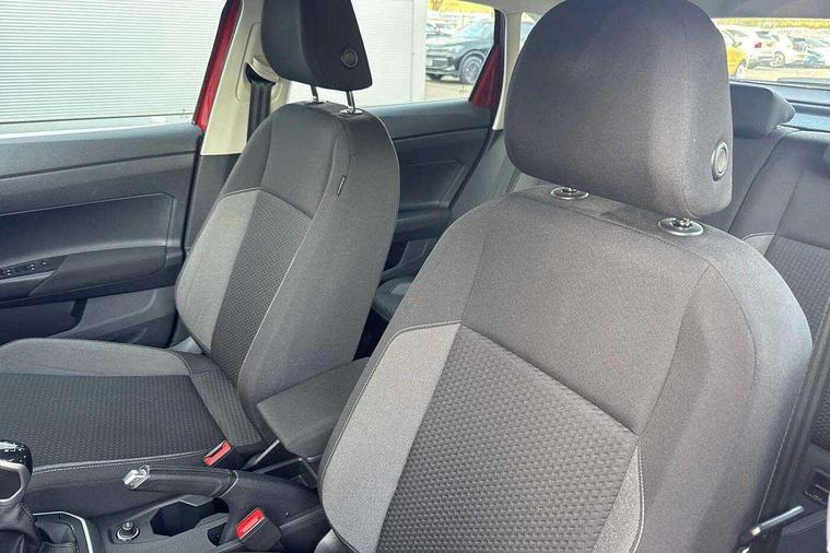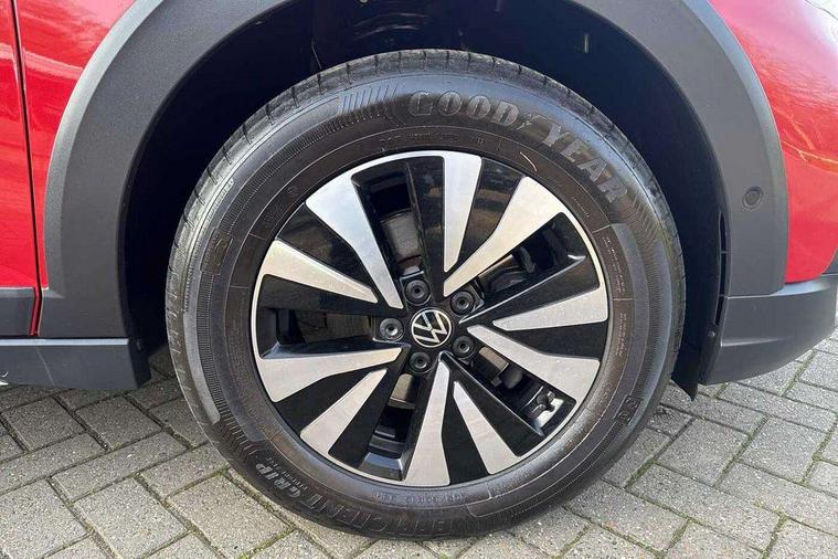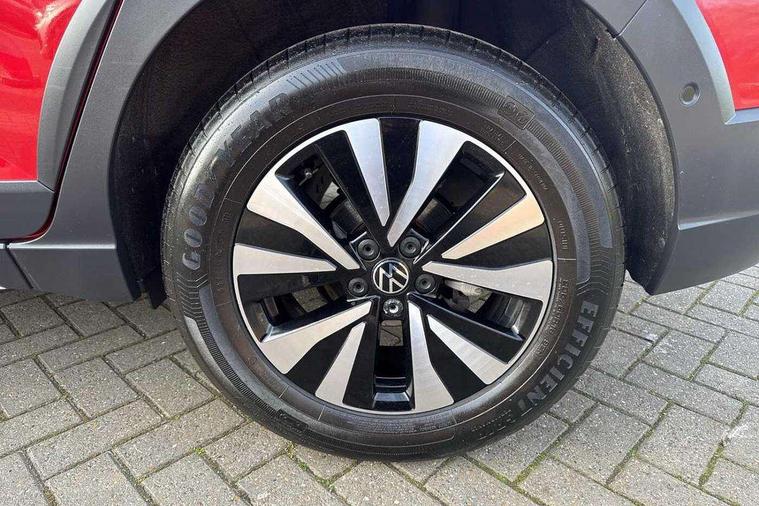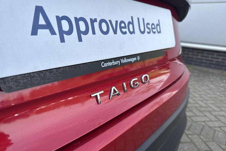 App-Connect including App-Connect Wireless, Driver alert system, e-Call (emergency call), Power Steering, Travel assist including emergency assist, Washer fluid level indicator, Wireless Charging including Bluetooth, Start-stop system with battery regeneration (recuperation - energy recovery during braking), Digital radio reception (DAB+), Diversity antenna for FM reception, WeConnect plus, Ambient lighting with logo projection, Aspherical driver's exterior mirror, Auto headlights, Body coloured bumpers, Body coloured exterior mirror housings and door handles, Electric windows, External USB type C socket and charging sockets, Front fog lamps with cornering function, Headlight range control, Heat insulating glass windscreen, LED headlamps, LED rear combination lamp, LED third brake light, Left convex exterior mirror, Power folding adjustable/heated exterior mirrors and front passenger exterior mirror lowering function, Rear fog light on one side, reversing light on both sides, Rear side wing doors, Rear wash/wipe with intermittent wipe setting, 'Slash/ Austin' Cloth upholstery, 12V socket in centre console, 2 front reading lights, 3 rear head restraints, 3 seat bench in 2nd row, Black carpets, Child seat anchor for child seat system i-Size, 2x top tether and child seat anchor in front on front passenger side, Door and side trim panels in titan black, Driver and front passenger seat height adjustment, Front centre armrest, Handbrake lever handle in leather, Height and reach adjustable steering wheel, Leather trimmed gear knob, Leather wrapped multifunction steering wheel, Luggage compartment floor, Luggage compartment light, Lumbar support for driver's and front passengers seat, Seat covers in titanium black, Single front passenger seat, Split folding backrest with centre armrest and unsplit rear seat bench, Storage compartment under front seats, Sun visors with illuminated vanity mirrors, Chrome Package - Taigo, Drivers assistance pack - Taigo, Light and Sight pack including High beam assist - Taigo, 2 x 3-point seatbelts/outer rear seats with ECE label, 3-point seat belts in front with pretensioner and height adjustment, 3-point seatbelt for centre rear seat, Driver and front passenger airbags with front passenger airbag de-activation, front side and curtain airbags, Driver and front passenger safety-optimised head restraints, Electronic stability control, Extended and predictive pedestrian/ cyclist protection, Front and rear disc brakes, Front curtain and side airbags with center airbag, Hill start assist, Manual rear child locks, Single tone horn, Tyre pressure loss indicator, Anti-theft alarm system with interior monitoring, backup horn, and towing protection, Anti-theft wheel bolts, Lava stone black gloss/matt decorative inserts in dash and front door panels, Low rolling resistance tyres,