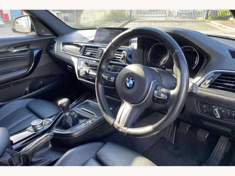 Automatic start/stop system, BMW Online services, BMW remote services, BMW Teleservices, Brake force display, Brake pad wear indicator in front and rear, Check Control warning system for monitoring of lights and door/luggage compartment open warning, Cruise control with brake assist, Eco pro mode, Instrument cluster with speedometer with miles per hour read out, tachometer and fuel gauge, Lights on warning by audio warning signal when ignition is switched off, Oil temperature display via on board computer in instrument cluster, On board computer - average speed+fuel consumption, service interval, clock/date, odometer/trip meter, outside temperature display and ice warning, On board diagnostics, Optimum shift indicator, Personal Profile, Real time traffic information, Servotronic PAS, Speed limiter, Battery age recognition function, Drive Performance Control, BMW professional radio with CD player, DAB Digital radio, Harman/Kardon loudspeaker system, Body colour door handles, Body colour front and rear bumpers, Body colour mirror caps, Body colour roof mouldings, Clear lenses direction indicator lights, Dark chrome exhaust tailpipe, Darkened rear lights with LED light bars, Daytime driving lights, Direction indicator side lights in exterior mirrors, Dynamic brake lights, Electrically adjustable heated door mirrors and washer jets, Follow me home headlights, Front and rear bumper system with replaceable deformation elements, Front and rear electric windows with open and close fingertip control, anti trap facility and comfort closing, Green tinted heat protection glazing, Headlight beam throw control, Heated windscreen washer jets, High gloss black kidney grille with black slats, High level third brake light, Lightweight engineering, M aerodynamic bodystyling, Nearside reverse light in rear light cluster, Offside rear fog lights, Rain sensor including auto headlights activation, Rear window aerial, Rear window wiper, Shark fin antenna, Sun protection glass, Visible VIN plate, Welcome lighting, 12V power socket in centre console, 12V power socket in passenger footwell, 60/40 split folding rear seat, Ambient lighting - switchable BMW classic orange/ cold white LED, Anthracite headlining, Anthracite Velour front and rear floor mats, Conditioned based service, Door sill finishers with illuminated M designation, Four grab handles integrated in roof lining, Front and rear side armrest integrated into door trim, Front folding sliding armrest with storage compartment, Front head restraints, Front sports seats with electric side bolster adjustment, Front storage compartment in centre console and in door trim, Front/rear courtesy lights with soft on/off dimming, Gearshift lever with M designation, Glove box handle with chrome surround, Glovebox, Interior light in front centre interior mirrors and rear centre auto interior light activation when door is opened when ignition switched off, Isofix child seat for two outer rear seats, Leather gear knob and handbrake grip, Luggage compartment access via BMW roundel, Luggage compartment lighting, M sports multi function leather steering wheel, Manually adjustable steering column, Multi-function controls for steering wheel, Rear folding head restraints, Sunvisors with vanity mirrors and ticket pocket, Two cupholders with sliding cover and inlay mat, Two sills lashing eyes in the luggage compartment, 3 point seatbelts on all seats, front pyrotechnic belt tensioners, stopper and belt force limiters, rear coded belt buckles, Active differential brake (ADB), electronic differential lock in DSC-OFF mode, Airbags - Front driver and passenger, front and rear head, front side, curtain head protection, Anti lock braking system (ABS) with brake assist, Automatic Stability Control (ASC), Battery safety cut-off, BMW emergency call, Brake drying, Brake energy regeneration, Braking readiness, Cornering brake control (CBC), Crash sensor activating central locking release, hazard warning lights, Driver and front passenger seat belt security check, DSC+, Dynamic brake control, Dynamic Traction Control - DTC, Front passenger manual airbag deactivation, Front ventilated brake disc, Hill start assist, M Sport braking system, Rear brake discs, Rear child proof door locks, Side impact protection, Twin horns, Tyre pressure monitoring system, Warning triangle and first aid kit, Automatic drive away locking facility, Central locking switch for all doors, fuel filler cap and luggage compartment, Locking wheel bolts, Remote central locking with two Integrate key, one button for opening and closing all lock, open and close window, button for open luggage compartment, Remote control integrated key with blue inset, Start/stop button with comfort go keyless engine start and auto start stop deactivation button, Thatcham Cat.1 alarm and immobiliser, Reduced rolling resistance tyres, Run flat tyres,