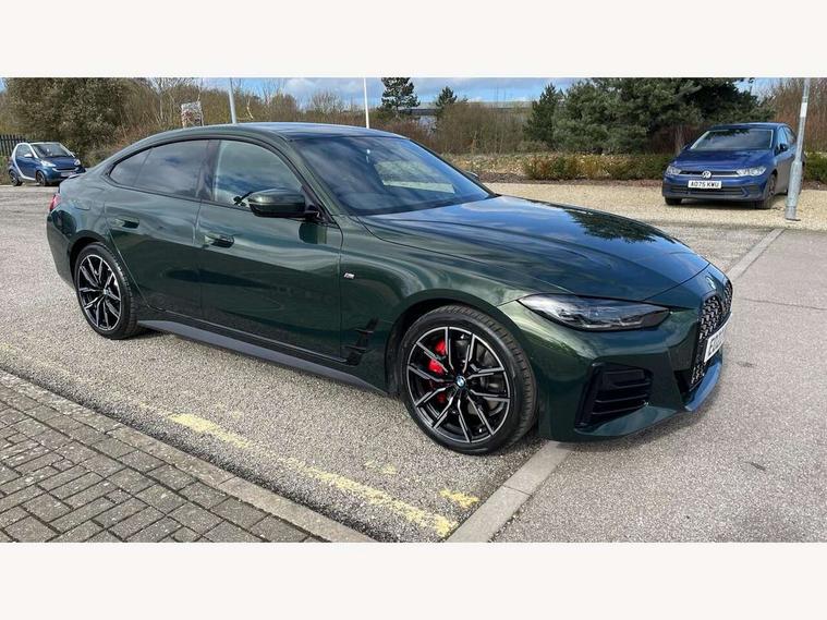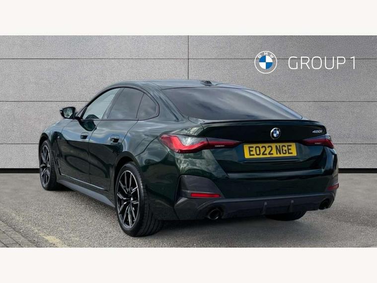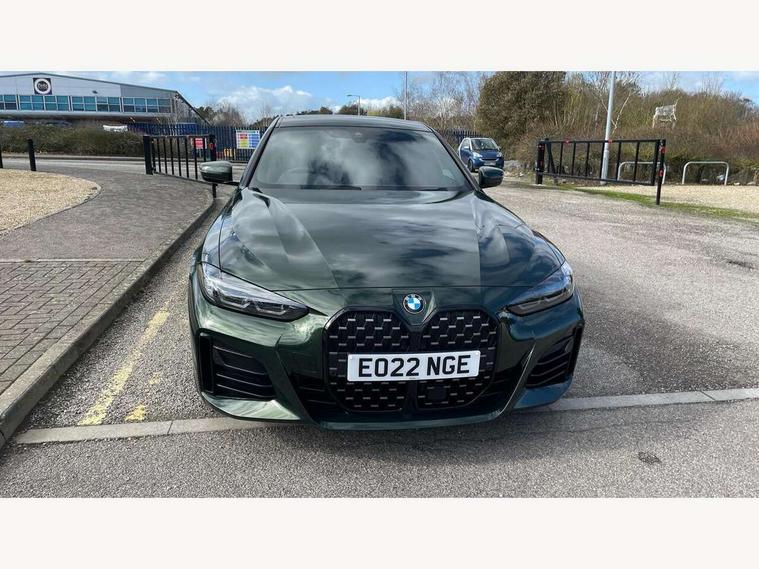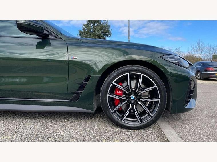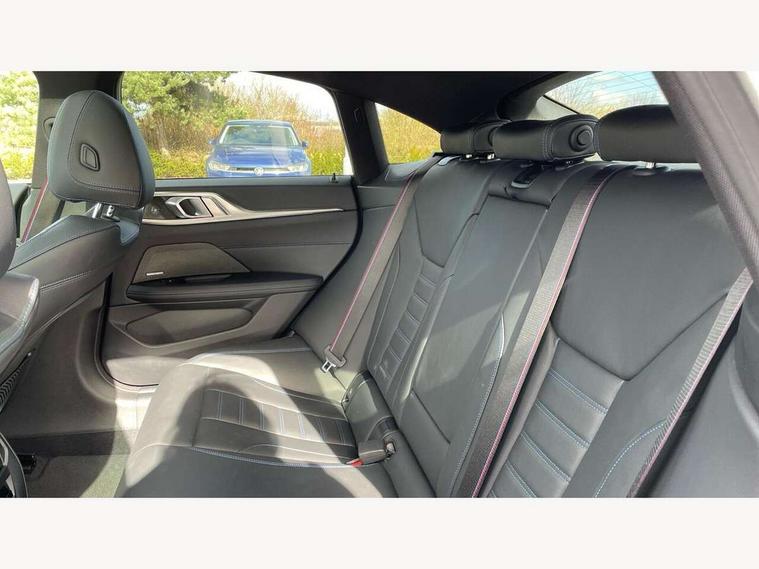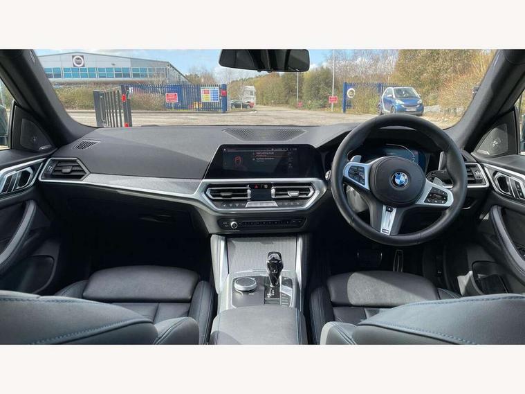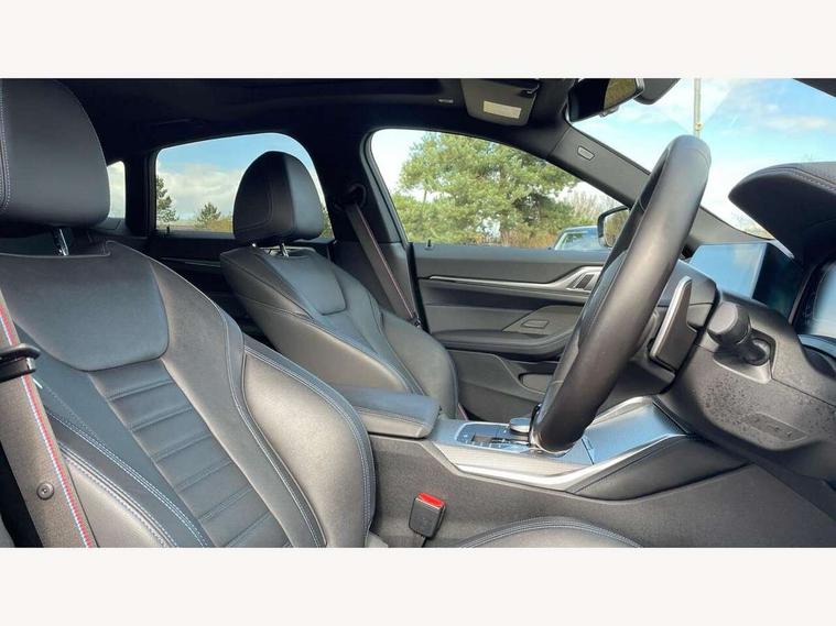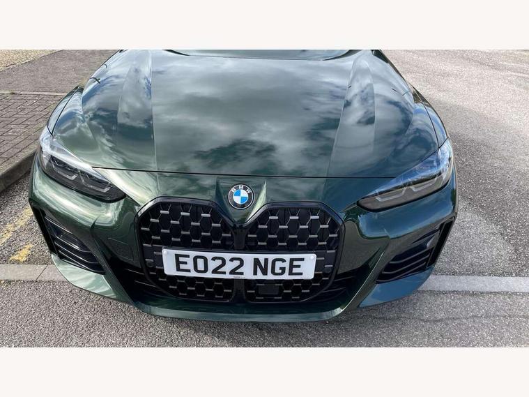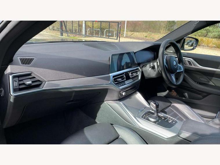 Active guard plus, Attentiveness assist, Auto start-stop, BMW ConnectedDrive online services, BMW iDrive controller on centre console, BMW Live Cockpit Professional Nav with 12.3" instrument display + 10.25" display, Intelligent Voice Assist, BMW OS 7, HDD, 2USB, 4G LTE connect, BMW service history, BMW Teleservices, Brake pad wear indicator in front and rear, Check Control warning system for monitoring of lights and door/luggage compartment open warning, Condition based service, Cruise control with brake assist, Electric bootlid, Electric power steering with Servotronic steering optimised at all speed ranges, Gearshift time display in manual mode, Instrument cluster with speedometer with mph readout, tachometer, fuel gauge and oil temperature gauge, Integrated owners handbook, Oil sensor for level and grade, warning by check control system, On board computer - average speed, fuel consumption, outside temp display with acoustic warning, clock/date, service interval, odometer/trip meter, Optimum shift indicator, Tailgate, Variable sport steering, 8 speed automatic steptronic transmission with gearshift paddles, Double VANOS, Drive performance control - ECO PRO, comfort and sport modes, Electronic differential lock control (EDLC), High precision injection, Low centre of gravity, M sport suspension, Petrol Particulate Filter, Stroke dependent dampers, VALVETRONIC engine management, DAB tuner, Electronic service booklet, Acoustic glazing, Automatic headlight beam throw control with load dependent regulating reaction, dynamic compensation of braking dive and acceleration squat, Automatic windscreen wipers and automatic headlight, Automatically dimming electrochromatic rear view mirror, BMW emblem on engine compartment lid and tailgate, BMW kidney grille with mesh grille front side of the nuggets in matt aluminium and frame in chrome high gloss, Body colour fuel filler flap, Body colour M sport rear spoiler, Body colour roof fin, Brushed aluminium inserts in the front door sill finishers with BMW designation, Dynamic brake lights, Electric windows - front and rear, with open/close fingertip control, anti trap facility and comfort closing function all round, Exhaust tailpipe - split left and right, Exterior mirrors - electrically folding with anti-dazzle, Fading support, Front and rear bumper system, Front apron plastic in body colour, Green tinted heat protection glazing, High gloss shadow line exterior trim, Illuminated bow type door handles in body colour drivers side with door lock, Interior rear view electrochromatic mirror with automatic anti dazzle function, LED daytime running lights, LED front fog lights, Licence plate panel integrated into front bumper and tailgate, Lightweight engineering, M designation on front side panels, left and right, Model designation on right side of tailgate, One piece front bumper cover including towing eye cover in body colour, Preparation for high beam assistant, Rear side wing doors, Rear wiper, Side frame decorative moulding black matt, Two part LED tailights in L-shape with components in smoked glass, brake light, LED turn indicator and rear fog light, Visible VIN plate, Welcome lights in interior and door handle area, Widened track and increased camber values for max transverse dynamics, agility and steering precision, Window recess cover black high gloss, Windscreen wipers with integrated heated washing jets, 12V power socket in front centre console, 2 front cupholder in centre console with clamping elements and matt black inlay, 3 rear headrests, 3 seat bench in 2nd row, 3 spoke M sport leather multifunction steering wheel, 3 zone automatic air conditioning, 4 pieces lashing eyelets in luggage compartment, 40:20:40 split folding rear seat and rear centre armrest with two cupholders, Ambient lighting with welcome carpet light, Anthracite headlining, Armrest integrated in front and rear door trim + front centre console armrest, Four grab handles integrated in roof lining, Front and rear door exit lighting (left / right), Front and rear door pockets, Front and rear footwell lights, Front and rear reading lights, Front headrests, Front seat backrest width adjustment, Front sport seats, Heated driver and front passenger seats, Height adjustable mechanically and infinitely variable steering column, Illuminated armrest storage compartment, Illuminated glove compartment with separate small compartment, Luggage compartment light, Make-up mirror lights, Single front passenger seat, Storage compartment in rear centre console, Sunvisors with vanity mirrors and ticket pocket, Toolkit located in luggage compartment, Velour front floor mats, Vernasca leather upholstery, Connected professional package - 4 Series, M sport exterior styling pack - 4 Series, 3 point seatbelts on all seats, Battery safety cut-off, BMW emergency call, Brake energy regeneration, Braking pre-tensioning, Child proof locking system in rear door, Child seat ISOFIX attachment for the two outer rear seats, Coasting in idle in ECO PRO mode, Cornering brake control (CBC), Crash sensor activating of airbags, Unlocking doors, hazard warning lights, interior light, safety battery terminal, Driver and front passenger side airbags, integrated in the door side seat backrest bolsters for all seat variants, Driver/Front Passenger airbags, Dry braking, Dynamic brake control, Dynamic stability control + (DSC+) - Anti-lock Braking System (ABS) with brake assist and cornering brake control + Automatic Stability Control (ASC), Dynamic Traction Control - DTC, Electric parking brake including automatic hold function and automatic release of the parking brake when driving off, Front and rear ventilated brake disc, Front passenger manual airbag deactivation, Head airbags for all 4 outer seats, Hill start assistant, Seat belt security check for driver and front passenger, Seat belt with belt stopper, pyrotechnic belt tensioners and belt force limiters, Side impact protection, Tyre pressure monitoring with three le