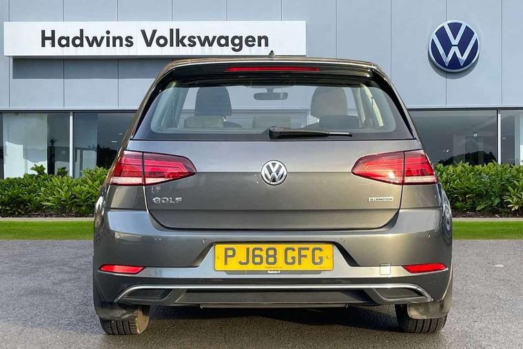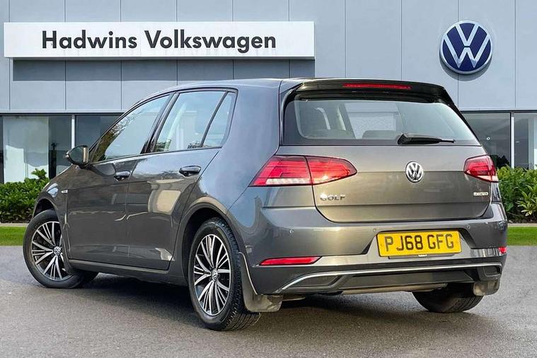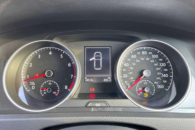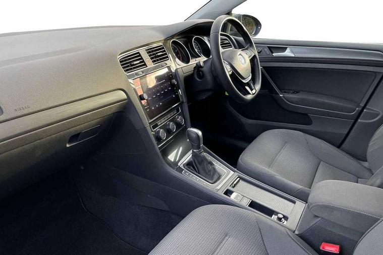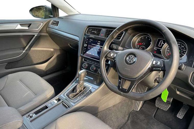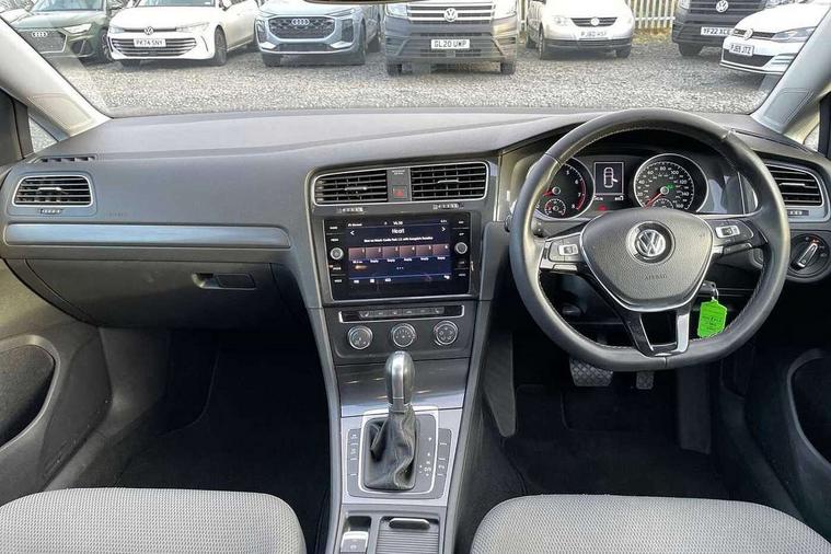 'Lights On' Reminder warning buzzer, 8" colour touch screen, ACC - Adaptive cruise control with front assist, forward collision warning, distance monitoring, city emergency brake and speed limiter, App-Connect, Bluetooth telephone and audio connection for compatible devices, Brake pad wear indicator warning light, Drive mode selector, Driver alert system, Driver profile selection, Front assist, radar sensor controlled distance monitor, city emergency braking + predictive pedestrian protection, Front assistant collision mitigation, Instrument cluster in white, Multifunction computer with visual gear change recommendation for fuel consumption, Power assisted speed sensitive electro-mechanical steering, Speedo, rev counter, electronic odometer, trip, service interval display, exterior temperature and fuel gauge, Stop/start system, Ultrasonic front and rear optical and audible parking sensors, Warning buzzer and light for front seatbelts unfastened, Battery regeneration during braking, XDS electronic differential lock, 8 Speakers, CD/MP3/WMA, USB and SD card reader, aux-in, Composition media system, DAB Digital radio receiver, SMS Functionality, Aerodynamic black radiator grille with chrome trimmed insert, Automatic coming/leaving home lighting function, Automatic dimming rear view mirror/rain sensor, Black rear diffuser, Body colour bumpers, Body colour door handles, Body colour door mirrors with integrated indicators, Electric front windows, Electric rear windows, Electrically adjustable and heated door mirrors, Glavanised body, Heated rear windscreen, High level 3rd brake light incorporating LED Technology, Range adjustable headlights via infotainment system with LED daytime running lights, Rear number plate lights incorporating LED technology, Rear window aerial, Rear window wash/wipe with intermittent wipe, Reflectors in all doors, Remote electrically foldable door mirrors, door mirror puddle lights and reverse activated kerb-view adjustment on passengers door mirror, Tailgate with integrated rear roof spoiler, Windscreen wipers/ intermittent wipe + 4 position delay, 12V socket in luggage compartment, 3 rear headrests, 4 load lashing points in luggage compartment, 60/40 split folding rear seat backrest, Bag hook in luggage compartment x 2, Cooled glovebox, Dust/pollen filter, Front and rear reading lights incorporating LED technology, Front centre armrest with storage compartment and two rear air vents, Front seat back storage pockets, Grab handles front x 2, rear x 2 with integrated coat hooks, Height and reach adjustable steering wheel, Illuminated vanity mirrors, Instrument lighting white adjustable panel illumination, Interior light delay, Isofix preparation for 2 rear child seats, Load through provision with rear centre armrest and cupholders x2, Luggage compartment light, Multifunction leather steering wheel with leather trimmed gear knob, Overhead storage box, Pearl grey headlining, Storage box in luggage compartment, Storage compartment in roof console with cover, Storage compartments in front doors, Storage compartments in rear doors, Stowable luggage compartment cover, Sun visors, Three spoke multi-function leather trimmed steering wheel and gearknob, Variable boot floor, height adjustable and removable, Mirror pack - Golf, 3 rear three point seatbelts, Airbags - Driver's and front passenger's, curtain airbag, Driver's knee, front side impact and passenger's airbag deactivation switch, Anti-lock Braking System (ABS) with Hydraulic Brake Assist (HBA), Automatic post collision braking system, Child locks on rear doors, Driver/Passenger optimised head restraints, Electronic parking brake with auto hold, Electronic stability control (ESC) including Electronic differential lock (EDL) and ASR (Traction control) with deactivation via infotainment system, Pre crash preventive occupant protection, Three point height adjustable front seatbelts with tensioners, Tyre pressure loss indicator, Alarm with interior protection, Electronic engine immobiliser, Remote central locking with 2 remote folding keys, Brushed dark silver decorative inserts in dash and door panels, Chrome plated air vent surround, Chrome-plated light switch surround, Polar night black centre console, Steel space saver spare wheel,