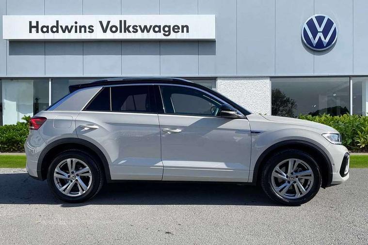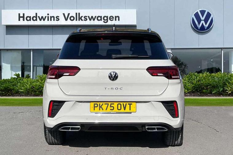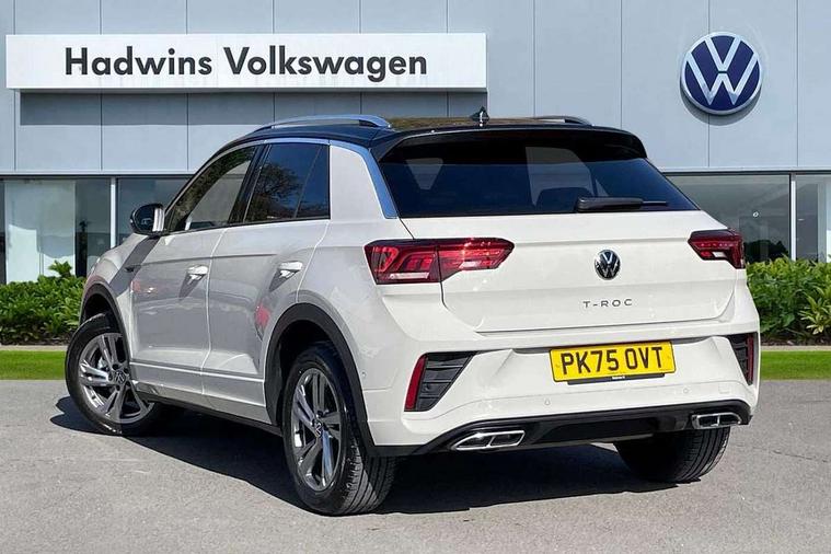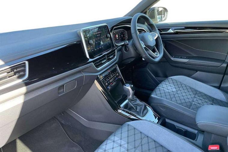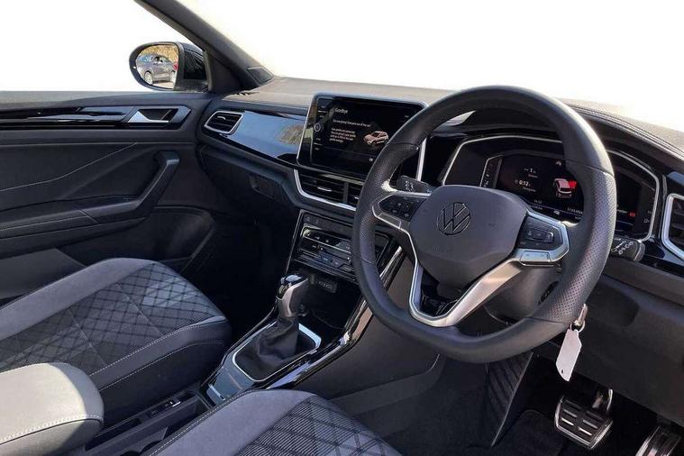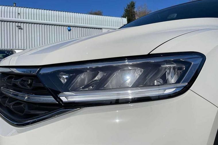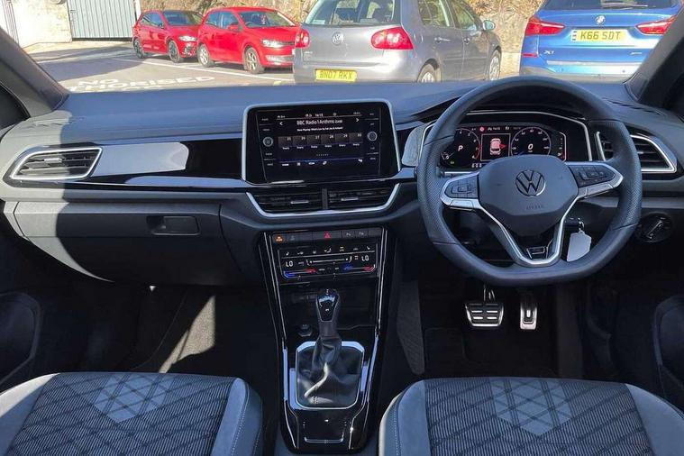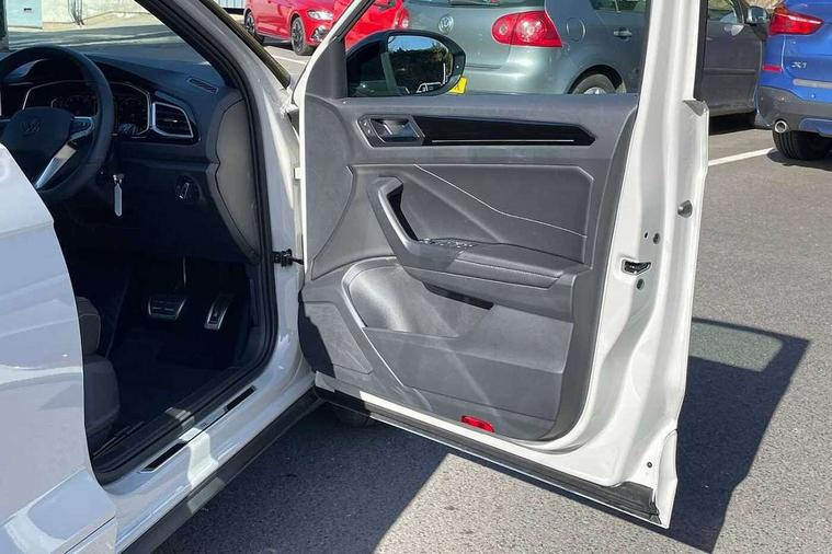10.25" Digital cockpit pro, Advanced driver attention and drowsiness monitor, Emergency call service, Lane keeping system Lane Assist, Mobile phone interface, Modified key software - reduce switch off time for key status change to Long no motion, Online services, Park assist including front and rear parking sensors, Service interval indicator, Tailgate/trunk lid release from outside, Think blue trainer driver tips and journey analysis, Warning sound and light for front seatbelts unfastened, Wireless app connect, Battery regeneration during braking, Start/stop function with battery regeneration, DAB Digital radio, Diversity antenna for FM reception, Front and rear 6 speakers, Music playback - MP3, WMA and AAC files, Premium USB cable in choice of either Apple or Android smartphone compatibility, SD card slot, Simultaneous pairing of 2 compatible mobile devices, Title and cover art display, We Connect and We Connect Plus functionality, Auto dimming interior rear view mirror, Automatic hazard lights activation under emergency braking, Automatic headlight control with LED separate daytime running lights with coming/leaving home function, Body coloured exterior mirror housings and door handles, Electrically adjustable and heated door mirrors, Extended roof spoiler, Exterior mirrors aspherical on driver side, convex on front passenger side, External USB type C socket and charging sockets, Front windscreen wiper with intermittent wipe and 4 position delay, Heated rear window, LED 3rd brake light, LED rear combination lamps, LED rear number plate lights, Power windows with comfort operation and circuit breaker, Privacy glass for rear side windows and rear window, R-Line design body coloured bumpers, Rain sensor, Rear exhaust tailpipe, Rear fog light on one side and reversing lights on both sides, Rear side wing doors, Rear wash/wipe with intermittent wipe setting, Remote electrically foldable door mirrors, puddle lights and reverse activated passenger's door mirror, 12V power socket in centre console, 3 rear head restraints, 3 seat bench in 2nd row, 4 load lashing points in luggage compartment, Air care climatronic air conditoning system with active combination filter and 2-zone temperature control, Black roof lining, Chrome plated decorative trims, Chrome plated radiator grille inserts, air vent surrounds and light switch surrounds, Door and side trim panel with leatherette insert, Front + rear carpet mats, Front centre armrest, Front cupholders x 2, Front footwell illumination, Front reading light, Front scuff plates with R Line logo, Front seat back storage pockets, Glove compartment door with light, Instrument lighting, white adjustable panel illumination, Interior ambient lighting and surround lighting, Interior light delay, Isofix child seat preparation, Leather gearshift handle, Load-through provision with cup holder when folded down ('Unsplit rear seat bench, split folding backrest, with centre armrest), Luggage compartment lighting, Single front passenger seat, Stainless steel pedals, Storage compartment in left and right luggage area, Storage compartment in rear doors, Storage compartments in driver and front passenger doors, Sunvisors with illuminated vanity mirrors, Variable boot floor, height adjustable and removable, Driver assistance pack without proactive passenger protection - T-Roc, 3 point height adj front seatbelts + pretensioners, 3 point seatbelts in outer rear with ECE label, ABS, Child locks on rear doors, City emergency braking and pedestrian monitoring, Driver and front passenger airbag with front passenger airbag deactivation, Driver and front passenger safety-optimised head restraints, Drivers seatbelt reminder, Electronic parking brake, Electronic Stability Control (ESC) inc EDL (Electronic Differential Lock) and ASR (Traction Control), Front and rear passengers curtain airbag system including front side airbags, Hill start assist, Predictive pedestrian protection, Rear disc brakes, Two tone horn, Tyre pressure loss indicator, Volkswagen roadside assistance, Piano black decorative inserts in dashboard and front door trim panels, Trims for alloy wheels,