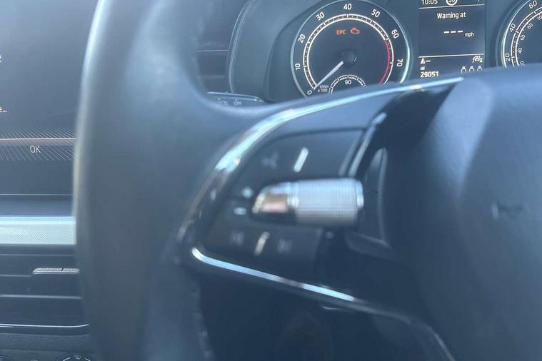 Amundsen satellite navigation with 9.2" glass colour touchscreen display, web radio, voice control and traffic sign recognition, Bluetooth system, E-call, Front assist system, Gesture control, PAS, Service indicator, Speed limiter, Wireless SmartLink for apple car play, android auto and mirrorlink, 8 Speakers, Auxiliary input socket, DAB Digital radio, Body colour bumpers, Body colour door mirrors and handles, Chrome grille surround, Dimming rear view mirror with black surround, Electrically adjustable and heated door mirrors, Front and rear electric windows, Headlight range control, Heated rear window, LED rear lights - low functionality, LED third brake light, Light sensors, Privacy glass, Rain sensor, Rear fog lights, Rear side wing doors, Rear wiper, 12V Accessory socket in centre console, 3 seat bench in 2nd row, Chrome inner door handles, Cloth upholstery, Front head restraints, Glove compartment with illumination, Height adjustable driver and front passenger seats - manual, Ice scraper, Isofix child seat fittings on outer rear seats, ISOFIX on front passenger seat, Manual lumbar support for front seats, Rake/reach adjustable steering wheel, Reading lights, Single front passenger seat, Sun visors with illumination on front passenger, Textile floor mats, Third rear headrest, Top tether for front passenger seat, Umbrella in driver's door, 3x3 point rear seatbelts, Airbags - driver and front passenger, ESP, Front passenger airbag deactivation switch, Front side airbags with curtain airbags, Hill hold control, Manual parking brake, Manual rear child locks, One tone horn, Rear disc brakes, Seatbelt reminder for driver an co-driver, Traction control, Tyre pressure monitor, Anti-theft alarm system with interior monitoring, backup horn, towing protection and remote central locking with SAFE system, Anti-theft wheel bolts, Electronic engine immobilizer, Silver haptic decorative insert on the dashboard with hot stamping in glossy black,