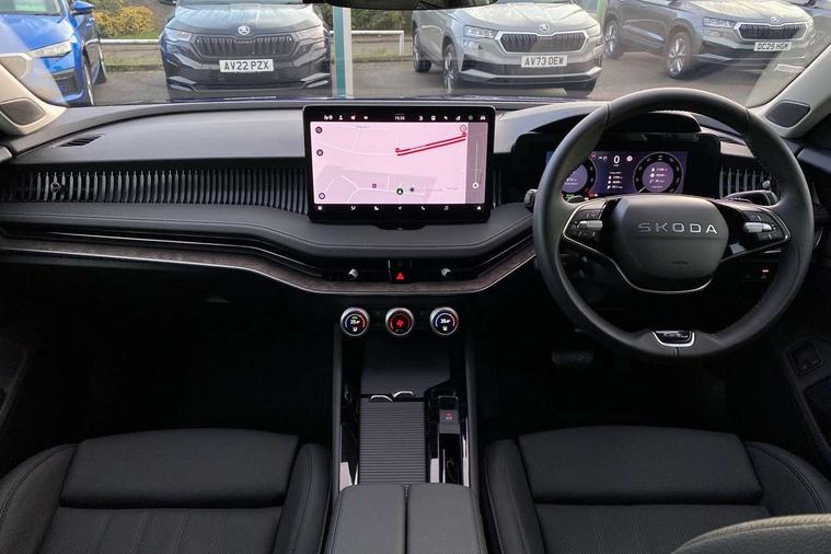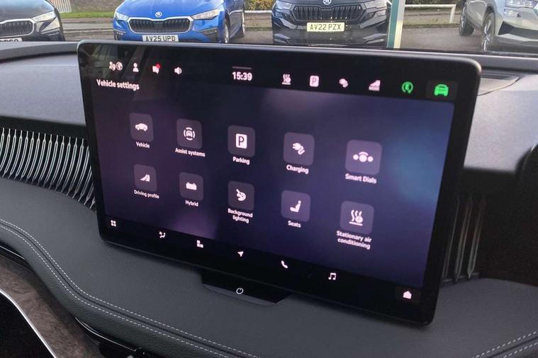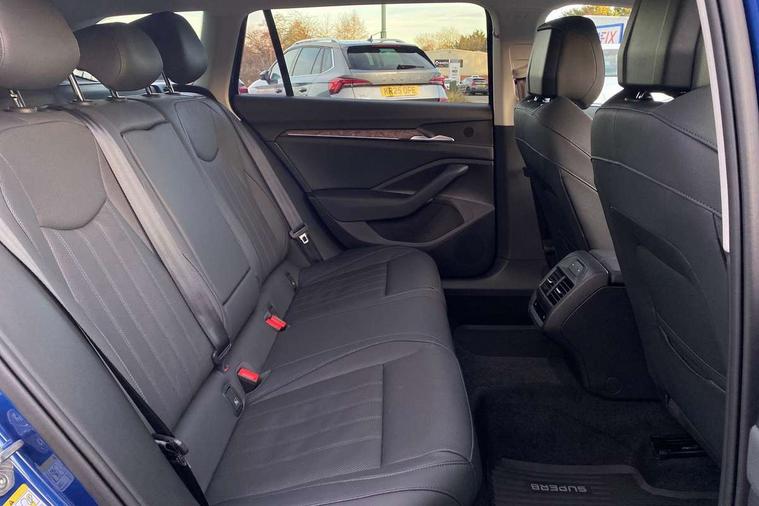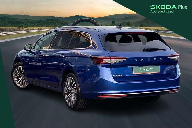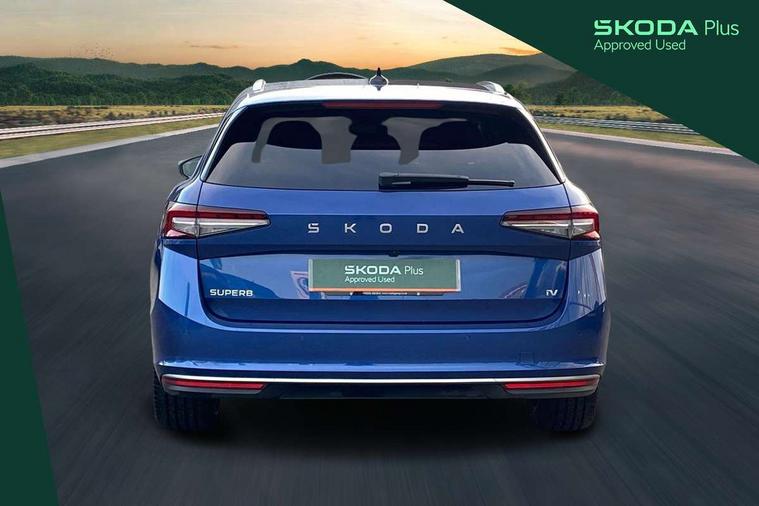13" touchscreen display with satellite navigation, 4x USB-C ports (2x in front centre console and 2x in rear) (45W), Adaptive cruise control with speed assist, lane assist plus and traffic tram assist, Blind spot detection with door exit warning, Bluetooth system, CareConnect and Emergency Call, ChatGPT functionality, Drive mode selection, Driver fatigue sensor, Front assist with extended predictive pedestrian protection, Front cross traffic assist, PAS, Quick start all heating software functionality, Remote park assist, Stop/start engine system, Traffic sign recognition, Turn assist with evasive assistance, Virtual Cockpit - 10.25" digital display, Voice control system, Washer for rear camera, Wireless charging for one smartphone (15W) with cooling function, Wireless smartlink apple carplay, SmartLink+ android auto, Dynamic chassis control plus with progressive dynamic steering, Mode 3 charging cable, Canton sound system - 14+1 speaker, DAB Digital radio, Display cleaner, FM radio connection, Web radio connection, Acoustic side windows and interior noise suppression, Backdrop lighting, Body colour door handles, Body coloured door mirrors, Chrome roof rails, Chrome window surround, Dynamic range control with poor weather light and integrated fog light, Electrically adjustable, heated, folding and driver side auto-dimming door mirrors with memory function, integrated indicators and logo projection, Frameless auto-dimming rear view mirror with USB-C, Ice scraper in fuel tank cap, LED 3rd brake light, Light assist with High beam control, Light assistant (coming/leaving home/tunnel light), Privacy glass, Rear fog lights (x2), Rear roof spoiler, Rear side wing doors, Rear windscreen wiper, Unique dark chrome design logo on alloy wheels, Unique dark chrome grille surround with dark chrome rib elements, plus dark chrome rear diffuser strip, Windscreen wipers with rain sensor, 12V socket 1x centre console 1x boot, 14-way electrically adjustable, memory, front seats with 4-way pneumatic lumbar support, and extendable thigh support with smart comfort entry aid, 2x cargo elements in boot, 2x light in boot, 3 seat bench in 2nd row, 4x foldable bag hooks in boot, 60:40 Split folding rear seats, Advanced massage function for front seats, Bottle holders in the front doors 1.5 litre bottle and rear 1.5 litre bottle, Cup holder in front with easy open mat, Front armrest with storage box, Front sports comfort seats, Heated and ventilated front seats, Height adjustable front and rear head restraints, Illuminated glovebox, Interior lights with control switches, Isofix child seat fittings in outer rear and front passenger seats, LED front and rear reading lights, Single front passenger seat, Skoda lettering on steering wheel, Storage compartment with cover, Storage pockets on back of front seats, Sun visors with illuminated vanity mirrors, Ticket holder on A Pillar, Tri zone climate control, Umbrella in driver's door, Light and view package - Superb, Parking package - Superb, Transport package - Superb Estate, Winter package - Superb, 3 rear seatbelts, 8 Airbags - Front driver and passenger, front side driver and passenger, centre, curtain front and rear, drivers knee, Crew protect assist, Driver and passenger seatbelts with warning light, Electronic parking brake, ESC including ABS, EBV, MSR, ASR, EDS, HBA, DSR, RBS, CBC, multi-collision brake (MKB) and Auto hold, Hill hold assist, Power operated child lock in rear doors, Alarm with interior monitoring tilt sensor and back up horn, Backrest remote release from trunk, Electronic engine immobiliser, Keyless start/stop, Remote central locking with SAFE system, Third key, Walk away locking, Decorative front door sills, Tyre repair kit,