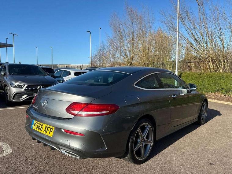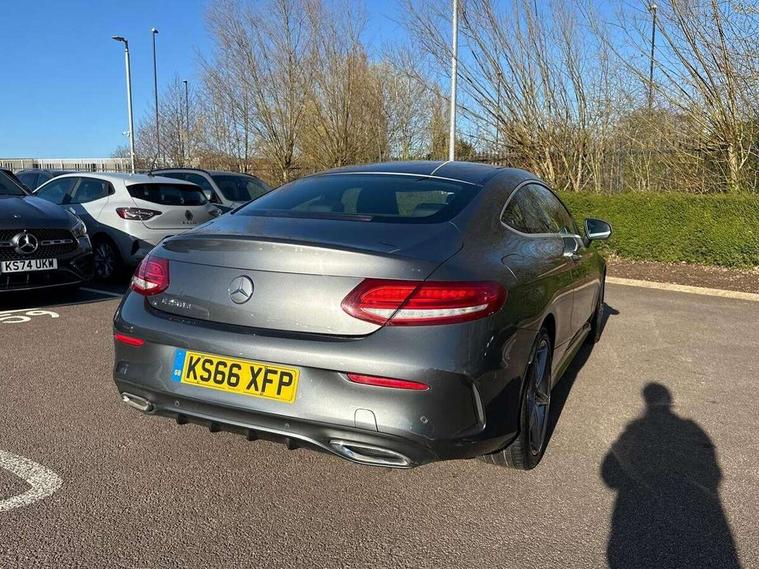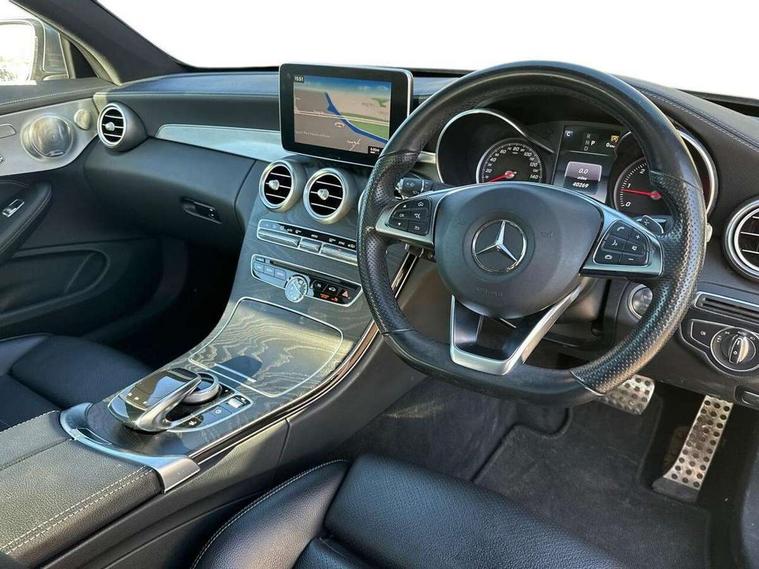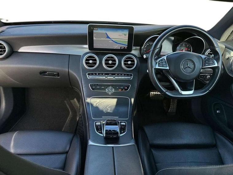 Active park assist with parktronic system, Attention assist, Bluetooth interface for hands free telephone, Collision prevention assist plus, COMAND online nav with colour display, radio/CD/DVD/MP3, SD card, 10GB music, Emergency Call system, speed limit assist, linguatronic voice control, DYNAMIC SELECT with a choice of driving modes (ECO, Comfort, Sport, Sport+ and Individual), Instrument cluster with 5.5-inch TFT multi-function display, Multi function trip computer, Outside temperature gauge, Remote boot release, Service indicator (ASSYST), Speed sensitive steering, Diesel particulate filter, 2 USB ports, Burmester surround sound system, DAB digital radio module, Frontbass loudspeakers, Media interface, Steering column mounted multifunction controls, Adaptive brake lights, AMG front, rear apron and side skirts, Auto dimming driver's door mirror, Auto dimming rear view mirror, Body coloured bumpers, Chrome grille surround, Door sill plates with "Mercedes-Benz" lettering, Electric adjustable/heated/folding door mirrors, Electric front sliding and fixed rear panoramic glass sunroof, Electric windows one touch open/close, Green tinted glass, Heated windscreen washers, LED daytime running lights, LED tail lights, Radiator grille with integral star, Rain sensor windscreen wipers, Side windows surround in polished aluminium, Twin chrome exhaust tailpipes, 2 cupholders in front centre console, 2 rear head restraints, 3 spoke flat bottom multi-function leather AMG steering wheel, 4-way lumbar support for drivers seat, 4-way lumbar support for front passenger seat, 40:20:40 split folding rear seats, Advanced multicolour ambient light and LED interior light, AMG floormats, Auto dual-zone climate control system, Auto Mercedes-Benz child seat recognition sensor, Door courtesy lamps, Electric front seats, Electric height adjustable front seats, Front centre armrest with storage compartment, Front footwell illumination, Heated front seats, Height/reach adjustable steering column, Illuminated front/rear door handle recesses, Illuminated glovebox, Isofix rear child seat fastenings, LED reading lights, Sports pedals with stainless steel surfaces and rubber studs, Sports seats with integrated headrests, Steering wheel gearshift paddles, Sunvisors with illuminated vanity mirrors, Memory pack - C Class, Seat comfort pack - C Class, Stowage space pack - C Class, 2 rear seatbelts, ABS + BAS, Active bonnet, Adaptive brake system, Brake calipers with Mercedes-Benz lettering + perforated brake discs, Drivers knee airbag, Drivers pelvis airbag, Dual stage driver/passenger airbags, Electronic parking brake, ESP with ASR, Front side airbags, Hill hold control, Hill start assist, Tyre pressure monitoring system, Warning triangle and first aid kit, Window airbags, Alarm system/interior protection/immobiliser, Chrome surround in electric key, Keyless entry and keyless start, Remote central locking, Tyre inflation kit,