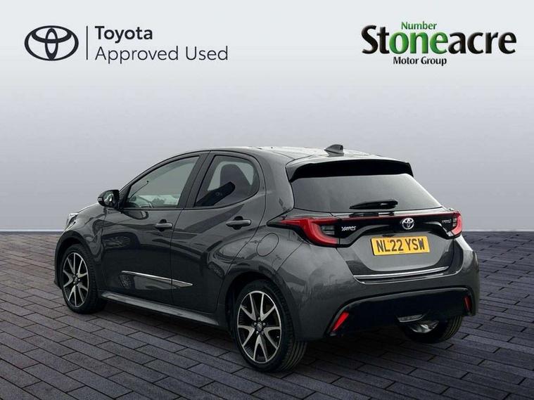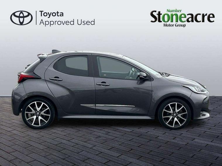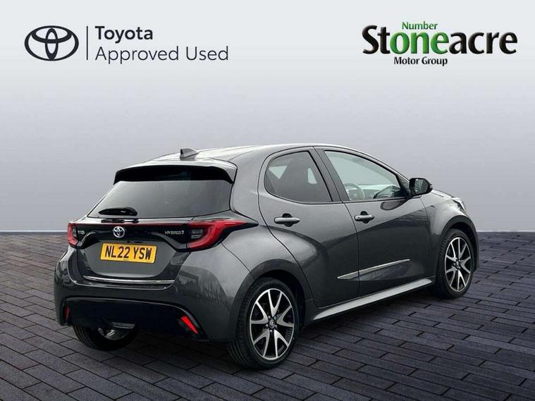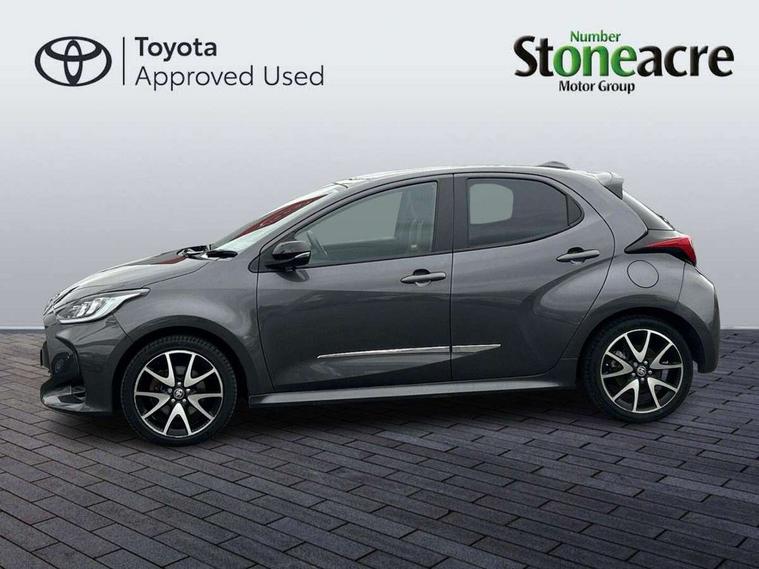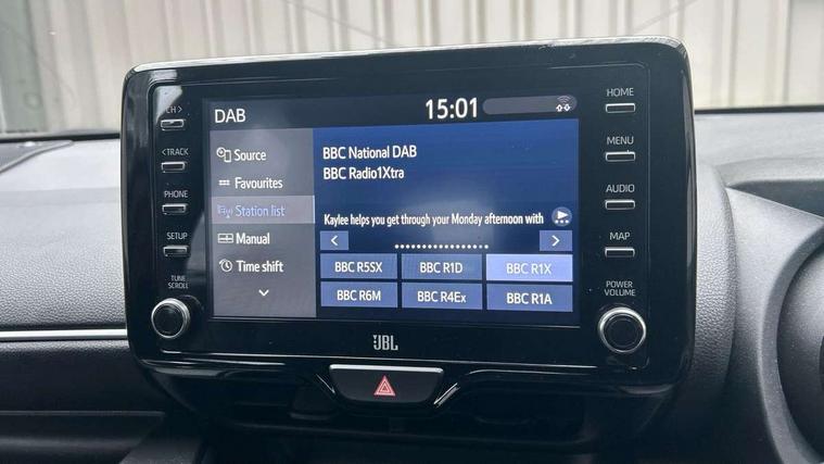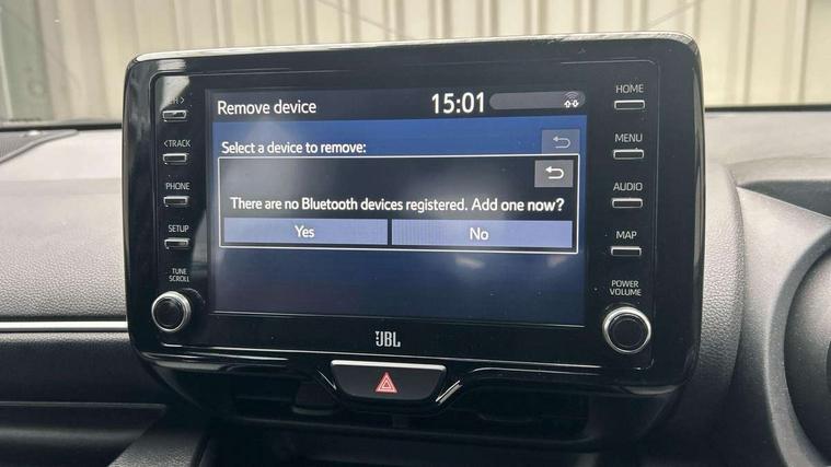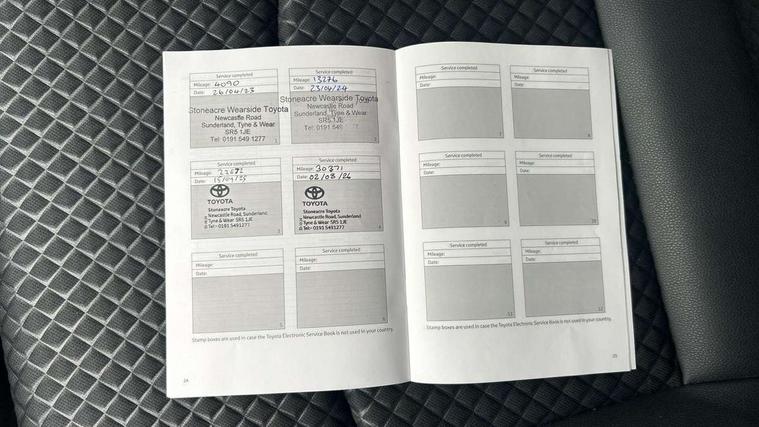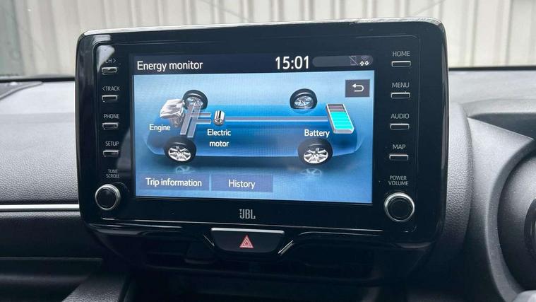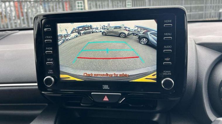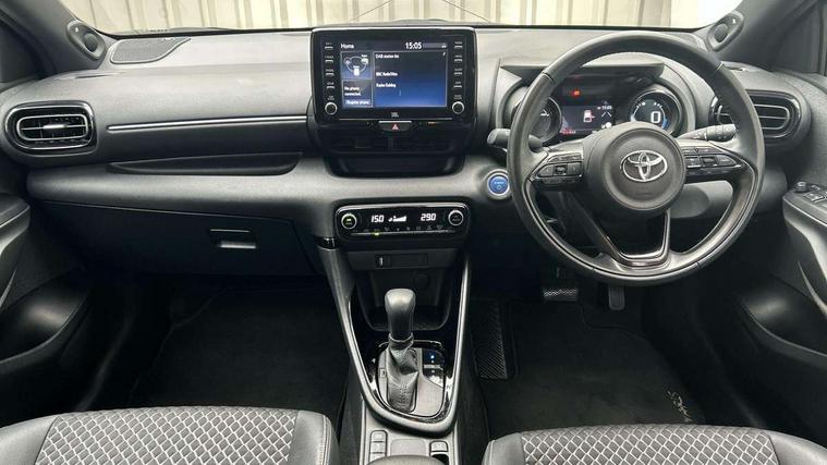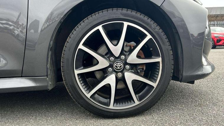 Adaptive cruise control, Adjustable speed limit with speed warning, Bluetooth connectivity, Colour binocular inspired displays with digital speedometer, E-call, Electric power steering, Hybrid energy display, Multi information display switches on steering wheel, Reversing camera, Smartphone integration with Apple CarPlay and Android auto, Vehicle Stability Control (VSC), 8" Multimedia display touch screen, JBL Premium sound system with 8 speakers, Toyota Touch 2 with DAB, USB connection, Acoustic windscreen glass, Automatic headlights, Automatic windscreen wipers with rain sensor, Body coloured door mirrors, Electric adjustable heated door mirrors, Follow me home headlights, Front auto power windows with anti jam protection, Full LED rear lights, LED daytime running lights, LED front fog lights, LED Headlights, LED High mounted stop lamp, Painted front grille, Rear auto power windows with anti jam protection, Rear privacy glass, Rear side wing doors, Rear spoiler, Rear wiper, Shark fin antenna, Turning signal integrated indicators in door mirrors, 3 adjustable rear headrests, 3 seat bench in 2nd row, 3 spoke leather steering wheel, 60/40 split folding rear seat, Active headrests, Adjustable boot height, Coat hooks in rear grab handles, Cup holders (2 front & door), Data Communication Module (DCM) connected services, Dual zone automatic air conditioning, Fabric seat with partial synthetic leather upholstery, Front armrest, Front sport seats, Glovebox, Height adjustable driver's seat, Height adjustable passenger seat, Isofix seat fixing, Leather gearshift, Map pockets on the backs of the front seats, Pollen filter, Shopping bag hooks, Single front passenger seat, Tilt/telescopic steering column, 3 point seatbelts on all rear seats, ABS+EBD+Brake assist, Electronic parking brake, Emergency brake light system (EBS), Front passenger airbag on/off switch, Front seatbelt reminder, Hill start assist control (HAC), Rear child proof door locks, Rear seat belt reminder, Supplemental Restraint System (SRS) 8 airbags: Driver & passenger's airbags, dual side curtain airbags, side impact airbags, front centre airbag, Toyota Safety Sense 2, Precollison + Night time Pedestrian & Cyclist Detection, Lane Trace Assist, Auto High Beam, Intelligent ACC & Road Sign Assist, Tyre pressure warning system, Alarm/immobiliser, Keyless smart entry with push button start, Remote powered central double locking doors, Piano black interior trim, Soft touch instrument panel, Space saver spare wheel,