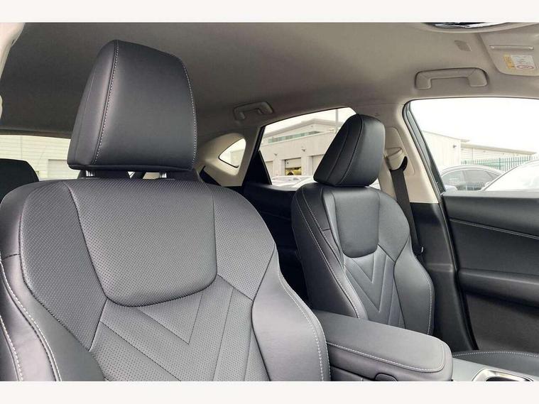 360 degree panoramic view monitor, 7" display in instrument binnacle, Blind spot monitoring with rear cross traffic alert, Bluetooth telephone connectivity, eCall emergency system, Electric speed sensitive power steering, Head up Display, Intelligent parking sensors - 4 front and 4 rear with object and pedestrain detection, Lane change flasher function, Lexus link connect - Cloud based navigation, cloud based voice assistant, always online, 14" HD touchscreen, embedded nav and faster CPU, Push button starter, Reversing camera with back guidelines, Service interval indicator, Tailgate, Tazuna cockpit with 7" improved meters display, 10" HUD and capacitive touch steering wheel switches, Wireless Apple CarPlay/Android Auto, Wireless Smartphone charger, 6.6 kW onboard charger, All Wheel Drive (AWD), Hybrid automatic transmission, Vehicle Dynamics Integrated Management (VDIM), Vehicle Stability Control (VSC), 10 speakers, 4 USB ports - 2 front, one USB C, 2 rear USB C, DAB Digital radio, 4 eye LED headlight with adaptive high beam, Auto dimming interior rear view mirror, Automatic headlights, Black roof, Double hidden exhaust pipes, Front and rear one touch power windows, with anti-jam protection, Heated and auto folding door mirrors, Illuminated door handles with puddle light, LED brake lights and rear lights with emergency brake signal, LED cornering lights, LED daytime running lights, LED front fog lights, LED Indicators, Power back door with kick sensor, Privacy glass, rear doors and tailgate, Rain sensor windscreen wipers, Rear side wing doors, Rear wiper, Roof rails, 12V accessory port centre console and luggage compartment, 2 cupholders in front centre console, 2 x fixed shopping bag hooks in boot, 2 x sun visors with vanity mirror and lamp, 3 seat bench in 2nd row, 4 way electrical lumbar adjustment for driver, 4 x tie down hooks in the boot, 60/40 split folding rear seat, 8 way driver/passenger electrically adjustable front seats, Adjustable rear seat backrest, Card holder installed in driver and passengers sun visors, Centre armrest with storage box, Driver seat memory function, Dual zone climate control air conditioning system with humidity sensor, Front and rear head restraints, Front and rear textile carpet mats, Front passenger seat, Heated and ventilated front seats, Heated rear seats, Heated steering wheel, LED ambient lighting, LED interior illumination, Power adjustable leather steering wheel with paddle shifts, Rear centre armrest with 2 cupholders, Smooth leather upholstery, Whiplash Injury Lessening (WIL) feature (active headrest) for seats, 3 point ELR front seatbelts with pretensioners, 3x3 point rear seat belts, ABS, Adjustable seat belt anchor points, Driver and front passenger 2 stage airbag, Driver/front passenger side airbags, Drivers knee airbag, E-Latch with safe exit assist, EBD + Brake Assist, ECB (Electronically Controlled Brake System), Electronic parking brake, Front and rear curtain shield airbags, Front center airbag, Front passenger seat cushion airbag, Hill assist control, Lexus safety system - dynamic radar cruise control, pre collision system day and night, lane tracing assist, road sign, automatic high beam, OTA, Manual rear child locks, Passenger airbag cut-off device, Traction control, Tyre pressure warning, Anti-theft system with alarm, intrusion sensor, glass breakage sensor, tilt sensor and engine immobiliser, Locking wheel nuts, Smart entry ( front/rear/boot), Speed sensitive auto door locking, Ultra Wide Band (UWB) Anti-theft system, VIN Window etching, 3D prism black Inlay, Organic inlay,