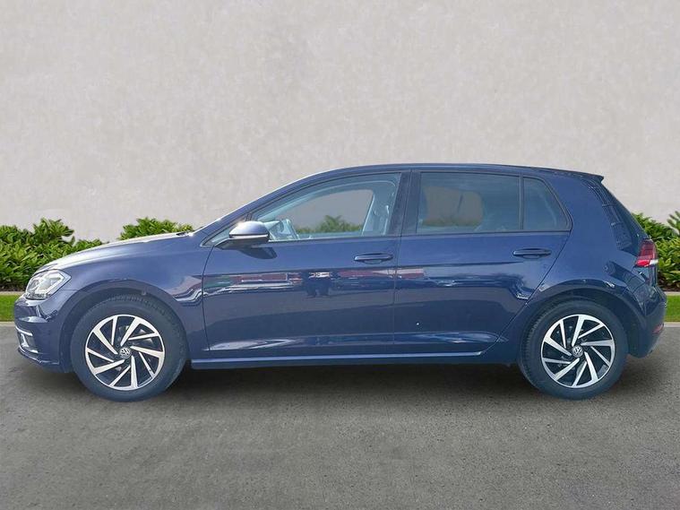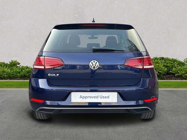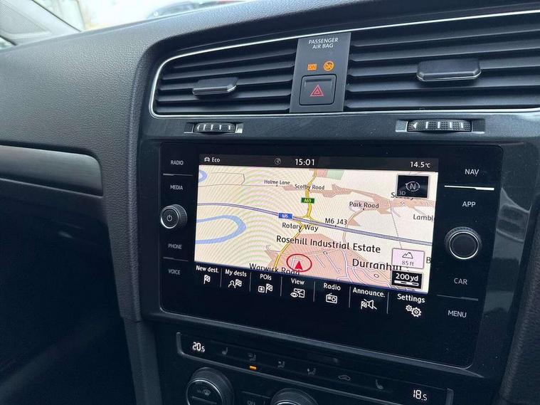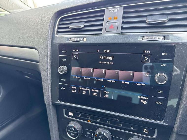 Brushed dark silver decorative inserts in dash and door panels, Chrome plated air vent surround, Chrome-plated light switch surround, Polar night black decorative inserts in centre console, Convenience Pack - Golf, Light and Sight pack - Golf, Mirror pack - Golf, Steel space saver spare wheel, Alarm with interior protection and deactivation via infotainment system, Electronic engine immobiliser, Composition media system, DAB Digital radio receiver, Driver Personalisation profile selection, MP3/WMA compatability, Multi device interface (MDI) with USB connection, Personalisation 1.1 profile for media, Premium USB cable in choice of either Apple or Android smartphone compatibility, SMS Functionality, Title and cover art display, 4 X 20W output, USB connection and socket, USB and SD card connectivity, 3 rear three point seatbelts, Airbags - Driver's and front passenger's, curtain airbag, Driver's knee, front side impact and passenger's airbag deactivation switch, Anti-lock Braking System (ABS) with Hydraulic Brake Assist (HBA), Automatic post collision braking system, Child locks on rear doors, Driver/Passenger optimised head restraints, Electronic parking brake with auto hold, Electronic stability control (ESC) including Electronic differential lock (EDL) and ASR (Traction control) with deactivation via infotainment system, Front ventilated disc brakes and rear disc brakes, Pre crash preventive occupant protection, Three point height adjustable front seatbelts with tensioners, Tyre pressure loss indicator, Auto dimming rear view mirror, Black front air intake and radiator grille with chrome insert, Black rear diffuser, Body colour bumpers, Body colour door handles, Body colour door mirrors with integrated indicators, Dusk sensor + automatic driving lights, Electric front windows, Electric rear windows, Electrically adjustable and heated door mirrors, Fully galvanised body, Heated rear windscreen, Hidden exhaust pipe, High level 3rd brake light incorporating LED Technology, LED front fog lights with static cornering light function, Range adjustable headlights via infotainment system with LED daytime running lights, Rear fog lamp, Rear number plate lights incorporating LED technology, Rear tinted glass 65% light absorbing from B pillar backwards, Rear window aerial, Rear window wash/wipe with intermittent wipe, Reflectors in all doors, Remote electrically foldable door mirrors, door mirror puddle lights and reverse activated kerb-view adjustment on passengers door mirror, Tailgate with integrated rear roof spoiler, Windscreen wipers/ intermittent wipe + 4 position delay, 12V socket in luggage compartment, 3 rear headrests, 4 load lashing points in luggage compartment, 60/40 split folding rear seat backrest, Auto fold down lever in rear seat backrest, Bag hook in luggage compartment x 2, Cooled glovebox, Cover for storage compartment in centre, Cupholder cover, Dust/pollen filter, Front and rear reading lights X 2, Front centre armrest with storage compartment and two rear air vents, Front seat back storage pockets, Grab handles front x 2, rear x 2 with integrated coat hooks, Height and reach adjustable steering wheel, Illuminated vanity mirrors, Instrument lighting white adjustable panel illumination, Interior light delay, Isofix preparation for 2 rear child seats, Load through provision with rear centre armrest and cupholders x2, Luggage compartment lighting, Overhead storage box, Passenger underseat drawer, Pearl grey headlining, Storage box in luggage compartment, Storage compartment in roof console with cover, Storage compartments in centre console, Storage compartments in front doors, Storage compartments in rear doors, Stowable luggage compartment cover, Sun visors, Variable boot floor, height adjustable and removable, 'Lights On' Reminder warning buzzer, ACC - Adaptive cruise control with front assist, forward collision warning, distance monitoring, city emergency brake and speed limiter, Bluetooth telephone and audio connection for compatible devices, Brake pad wear indicator warning light, Driver alert system, Driving Mode Selection with four preset modes - Eco, normal, sport or individual modes, Instrument cluster in white, Multifunction computer with visual gear change recommendation for fuel consumption, Power assisted speed sensitive electro-mechanical steering, Push tank flap, Speed limit display, Speedo, rev counter, electronic odometer, trip, service interval display, exterior temperature and fuel gauge, Stop/start system, Think blue trainer driver tips and journey analysis, Warning buzzer and light for front seatbelts unfastened, We Connect Go Dongle, Battery regeneration during braking, XDS electronic differential lock,