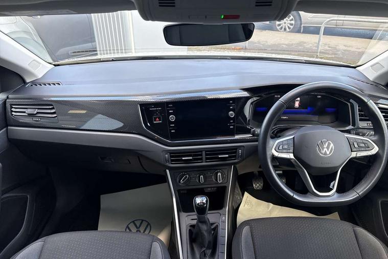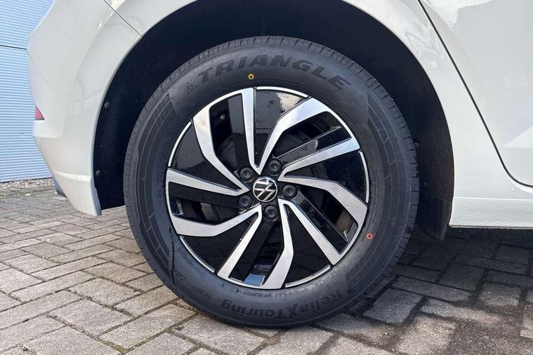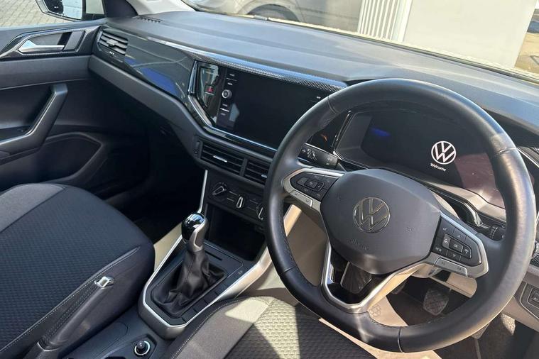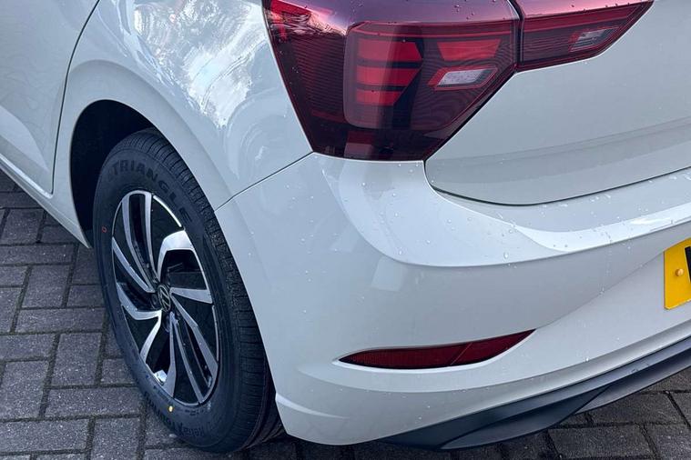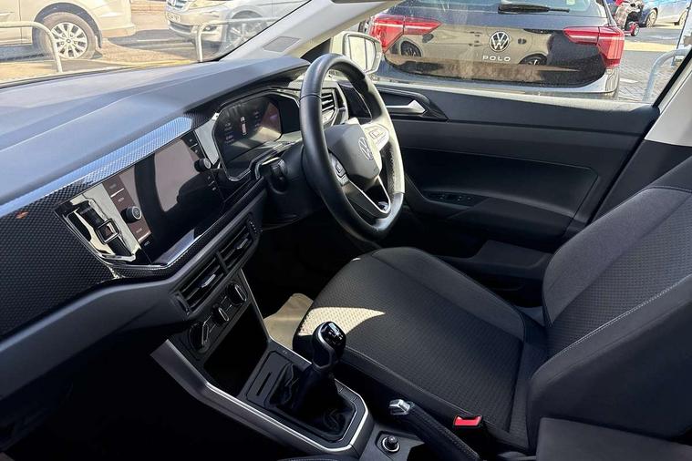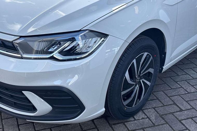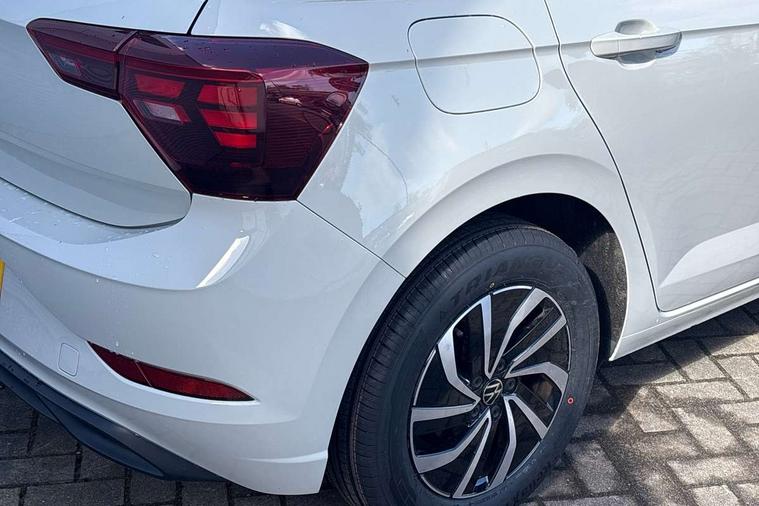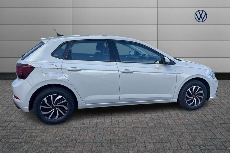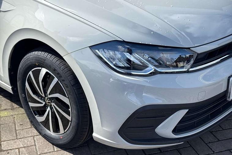 Adaptive cruise control without follow-to-stop and speed limiter, Advanced driver attention and drowsiness monitor, Bluetooth mobile phone interface, Dynamic road sign display, Emergency call service, Power assisted speed sensitive steering, Preparation for navigation system with media and internet package, Preparation for We connect and We connect plus, Speedo and rev counter, electronic odometer, trip, service interval display and exterior temperature gauge, Standard rear axle, Travel Assist - Lane keeping system and traffic jam assist, Travel assist including emergency assist, Trip computer, Warning signal and warning light for front and rear seatbelts not fastened, Washer fluid level indicator, Wireless app connect, Front wheel drive, Rear shock absorpion, Start-stop system with battery regeneration (recuperation - energy recovery during braking), DAB Digital radio, Diversity antenna for FM reception, Front and rear 6 speakers, Automatic dimming interior rear view mirror, Automatic headlight control with LED separate daytime running lights with coming/leaving home function, Body colour bumpers with chrome inserts, Body colour door handles, Body colour door mirrors, Electric front windows, Engine badge deletion, Headlight range adjustment, Heat insulating and laminated safety glass windshield, Heat insulating darkened glass in side and rear windows, Heat insulating glass windscreen, LED Headlights, LED rear combination lamps, Power folding adjustable/heated exterior mirrors and front passenger exterior mirror lowering function, Rain sensor, Rear electric windows, Rear fog light, Rear side wing doors, Rear windscreen washer and wiper with interval delay, Third brake light, 12V power socket in centre console, 2 front and 2 rear reading lights with switch off delay and dimmer, 2 USB-C ports in the front, 2 USB-C charging sockets on the center console in the rear, 3 rear head restraints, 60/40 split folding rear seat and rear seat bench not split, Ceramique roof lining, Chrome plated radiator grille inserts, air vent surrounds and light switch surrounds, Door and side trim panel, Driver and front passenger seat height adjustment, Driver/passenger sunvisors with illuminated vanity mirrors, Front centre armrest, Front seat backrest storage pockets, Front standard seats, Handbrake lever handle in leather, Hartley/Thomas cloth upholstery, Headliner in recycled material, Isofix child seat preparation easy-fit (for two outer rear seats, and front passenger seat) compatible with I-size, Leather trimmed gear knob, Luggage compartment cover, Luggage compartment lighting, Removable luggage compartment floor, Single front passenger seat, Standard climatic zones, Standard pedal cluster, Three spoke leather wrapped multifunction steering wheel, Light and vision pack - Polo, 3 point height adj front seatbelts + pretensioners, 3x3 point rear seatbelts, ABS, Driver and front passenger airbag with front passenger airbag deactivation, Drivers and front passengers safety optimised head restraints, ESC (Electronic stability control) + EDL (Electronic Differntial lock) and ASR (Traction control), Extended and predictive pedestrian/ cyclist protection, Front assist with autonomous emergency braking (for Adaptive Cruise Control ACC up to 130 mph), Front curtain and side airbags with center airbag, Front disc brakes, Hill hold control, Manual child lock in rear doors, Rear drum brakes, Single tone horn, Tyre pressure loss indicator, Alarm with interior protection, Anti-theft alarm system with interior monitoring, backup horn, and towing protection, Anti-theft wheel bolts, Electronic engine immobiliser, Lava stone black gloss/matt decorative inserts in dash and front door panels, Low rolling resistance tyres,