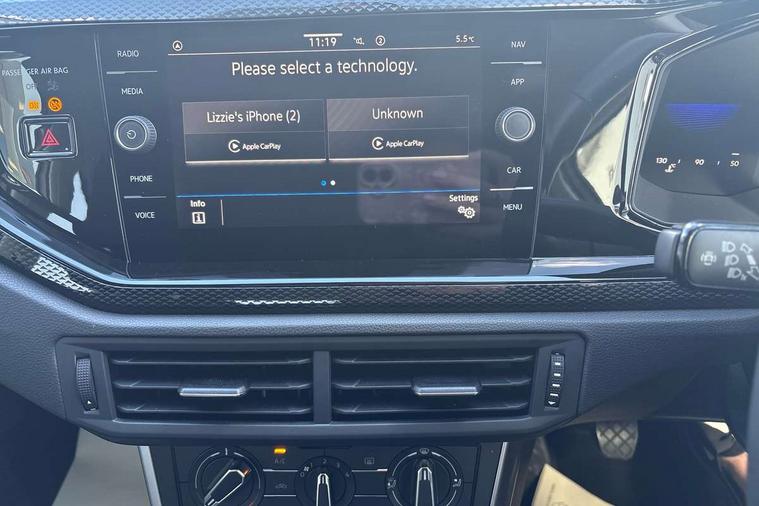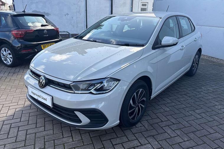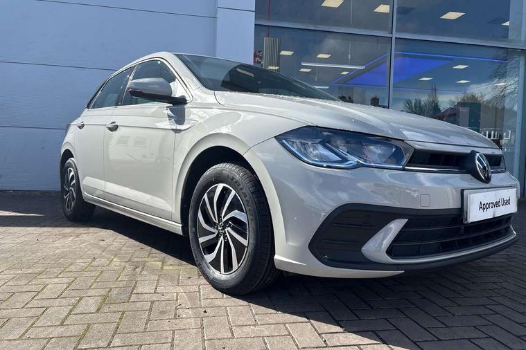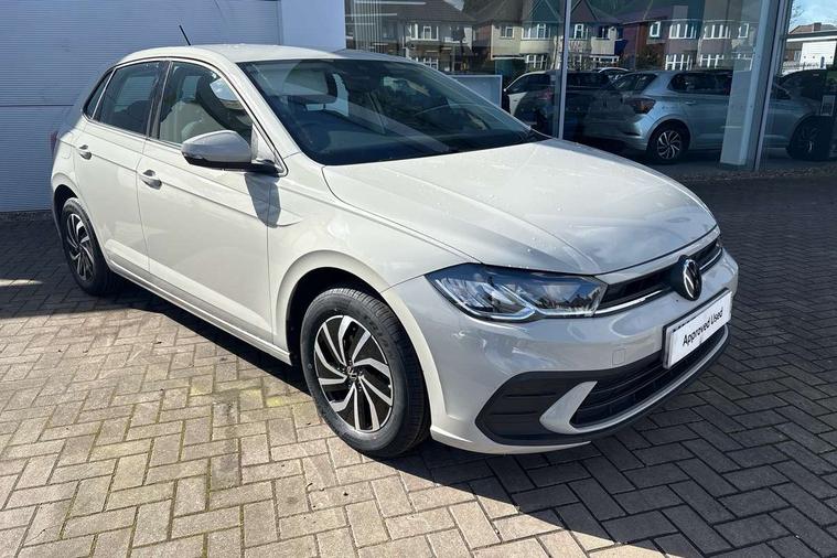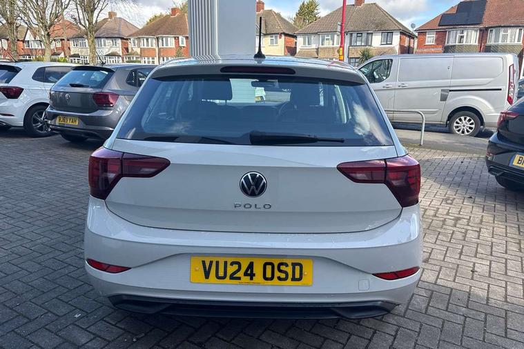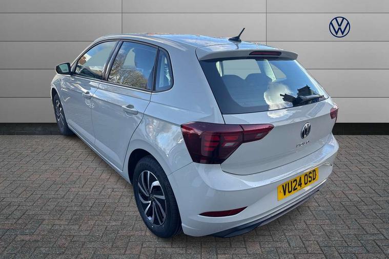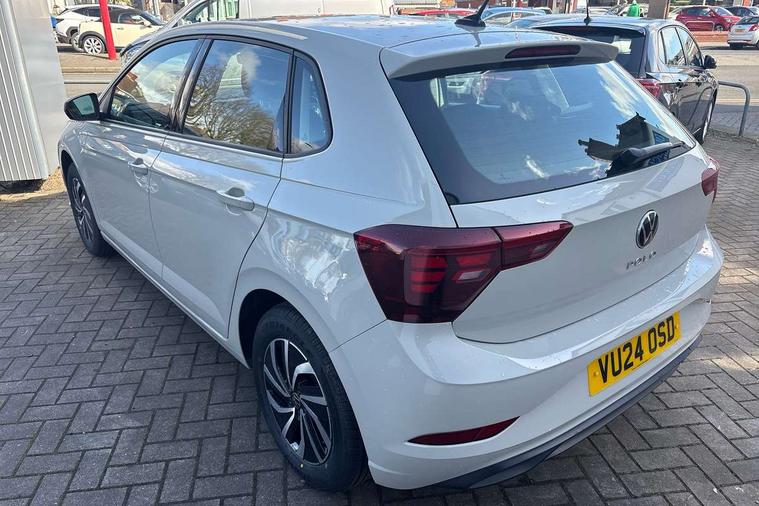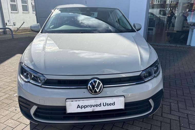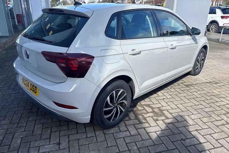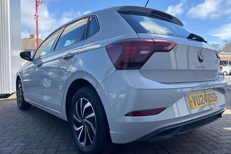 Adaptive cruise control without follow-to-stop and speed limiter, Advanced driver attention and drowsiness monitor, Bluetooth mobile phone interface, Dynamic road sign display, Emergency call service, Power assisted speed sensitive steering, Preparation for navigation system with media and internet package, Preparation for We connect and We connect plus, Speedo and rev counter, electronic odometer, trip, service interval display and exterior temperature gauge, Standard rear axle, Travel Assist - Lane keeping system and traffic jam assist, Travel assist including emergency assist, Trip computer, Warning signal and warning light for front and rear seatbelts not fastened, Washer fluid level indicator, Wireless app connect, Front wheel drive, Rear shock absorpion, Start-stop system with battery regeneration (recuperation - energy recovery during braking), DAB Digital radio, Diversity antenna for FM reception, Front and rear 6 speakers, Automatic dimming interior rear view mirror, Automatic headlight control with LED separate daytime running lights with coming/leaving home function, Body colour bumpers with chrome inserts, Body colour door handles, Body colour door mirrors, Electric front windows, Engine badge deletion, Headlight range adjustment, Heat insulating and laminated safety glass windshield, Heat insulating darkened glass in side and rear windows, Heat insulating glass windscreen, LED Headlights, LED rear combination lamps, Power folding adjustable/heated exterior mirrors and front passenger exterior mirror lowering function, Rain sensor, Rear electric windows, Rear fog light, Rear side wing doors, Rear windscreen washer and wiper with interval delay, Third brake light, 12V power socket in centre console, 2 front and 2 rear reading lights with switch off delay and dimmer, 2 USB-C ports in the front, 2 USB-C charging sockets on the center console in the rear, 3 rear head restraints, 60/40 split folding rear seat and rear seat bench not split, Ceramique roof lining, Chrome plated radiator grille inserts, air vent surrounds and light switch surrounds, Door and side trim panel, Driver and front passenger seat height adjustment, Driver/passenger sunvisors with illuminated vanity mirrors, Front centre armrest, Front seat backrest storage pockets, Front standard seats, Handbrake lever handle in leather, Hartley/Thomas cloth upholstery, Headliner in recycled material, Isofix child seat preparation easy-fit (for two outer rear seats, and front passenger seat) compatible with I-size, Leather trimmed gear knob, Luggage compartment cover, Luggage compartment lighting, Removable luggage compartment floor, Single front passenger seat, Standard climatic zones, Standard pedal cluster, Three spoke leather wrapped multifunction steering wheel, Light and vision pack - Polo, 3 point height adj front seatbelts + pretensioners, 3x3 point rear seatbelts, ABS, Driver and front passenger airbag with front passenger airbag deactivation, Drivers and front passengers safety optimised head restraints, ESC (Electronic stability control) + EDL (Electronic Differntial lock) and ASR (Traction control), Extended and predictive pedestrian/ cyclist protection, Front assist with autonomous emergency braking (for Adaptive Cruise Control ACC up to 130 mph), Front curtain and side airbags with center airbag, Front disc brakes, Hill hold control, Manual child lock in rear doors, Rear drum brakes, Single tone horn, Tyre pressure loss indicator, Alarm with interior protection, Anti-theft alarm system with interior monitoring, backup horn, and towing protection, Anti-theft wheel bolts, Electronic engine immobiliser, Lava stone black gloss/matt decorative inserts in dash and front door panels, Low rolling resistance tyres,
