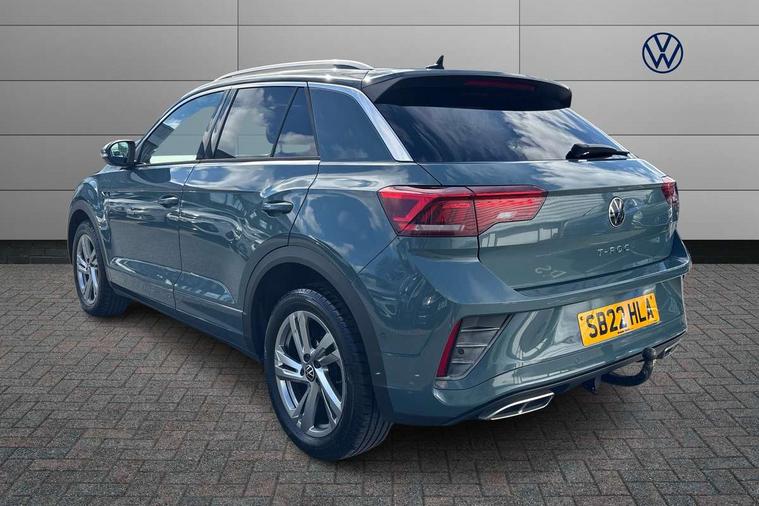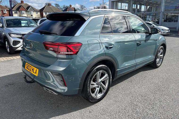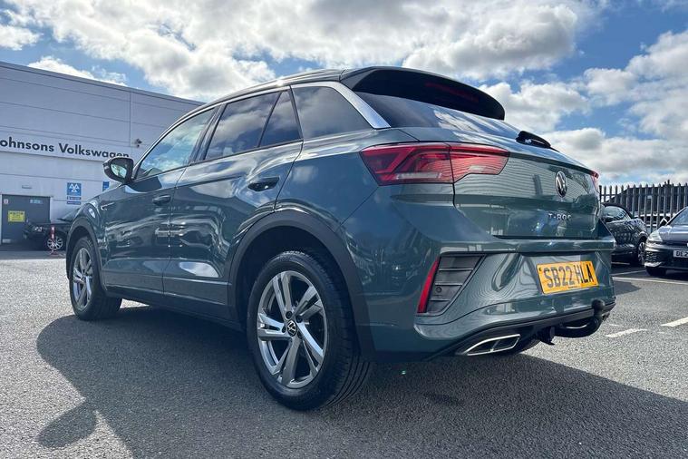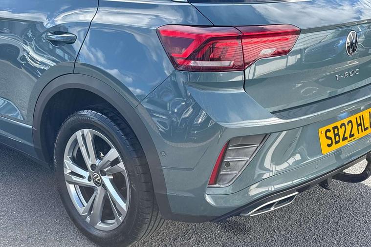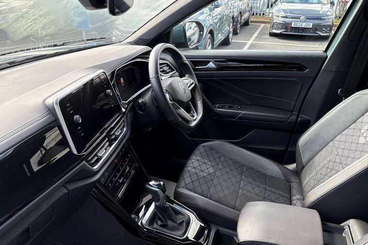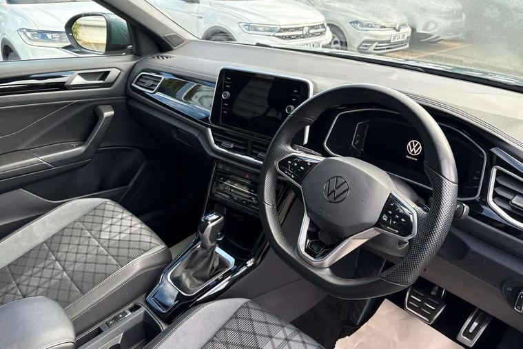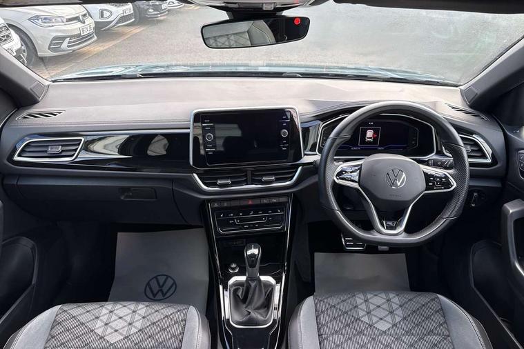 10.25" Digital cockpit pro, Bluetooth mobile phone interface, Driver alert system with fatigue detection, Driver tips and journey analysis, Emergency call service, Lane keeping system Lane Assist, Modified key software - reduce switch off time for key status change to Long no motion, Online services, Park assist including front and rear parking sensors, Service interval indicator, Tailgate/trunk lid release from outside, Think blue trainer driver tips and journey analysis, Warning sound and light for front seatbelts unfastened, Wireless app connect, Battery regeneration during braking, Start/stop function with battery regeneration, Diversity antenna for FM reception, Front and rear 6 speakers, Music playback - MP3, WMA and AAC files, Premium USB cable in choice of either Apple or Android smartphone compatibility, SD card slot, Simultaneous pairing of 2 compatible mobile devices, Title and cover art display, We Connect and We Connect Plus functionality, 3rd brake light, Auto dimming interior rear view mirror, Automatic hazard lights activation under emergency braking, Automatic headlight control with LED separate daytime running lights with coming/leaving home function, Extended roof spoiler, Exterior mirrors aspherical on driver side, convex on front passenger side, External USB type C socket and charging sockets, Front windscreen wiper with intermittent wipe and 4 position delay, Heated rear window, LED Plus headlamps, LED rear combination lamps, LED rear number plate lights, LED tail lamp rear comination lamps, Power windows with comfort operation and circuit breaker, R-Line design body coloured bumpers, Rain sensor, Rear exhaust tailpipe, Rear fog light on one side and reversing lights on both sides, Rear side wing doors, Rear wash/wipe with intermittent wipe setting, Remote electrically foldable door mirrors, puddle lights and reverse activated passenger's door mirror, 12V power socket in centre console, 3 rear head restraints, 3 seat bench in 2nd row, 4 load lashing points in luggage compartment, Air care climatronic air conditoning system with active combination filter and 2-zone temperature control, Black roof lining, Chrome plated radiator grille inserts, air vent surrounds and light switch surrounds, Door and side trim panel with leatherette insert, Drawer under drivers seat, Front + rear carpet mats, Front centre armrest, Front cupholders x 2, Front footwell illumination, Front reading light, Front scuff plates with R logo, Instrument lighting, white adjustable panel illumination, Interior ambient lighting and surround lighting, Interior light delay, Isofix child seat preparation, Leather gearshift handle, Load-through provision with cup holder when folded down ('Unsplit rear seat bench, split folding backrest, with centre armrest), Luggage compartment lighting, Single front passenger seat, Stainless steel pedals, Storage compartment in left and right luggage area, Storage compartment in rear doors, Storage compartments in driver and front passenger doors, Sunvisors with illuminated vanity mirrors, Variable boot floor, height adjustable and removable, Driver assistance pack without proactive passenger protection - T-Roc, 3 point height adj front seatbelts + pretensioners, 3 point seatbelts in outer rear with ECE label, ABS, Child locks on rear doors, Driver and front passenger airbag with front passenger airbag deactivation, Driver and front passenger safety-optimised head restraints, Drivers seatbelt reminder, Electronic parking brake, Electronic Stability Control (ESC) inc EDL (Electronic Differential Lock) and ASR (Traction Control), Front and rear passengers curtain airbag system including front side airbags, Front assist with city emergency braking and pedestrian monitoring, Front seat side impact airbags, Hill start assist, Predictive pedestrian protection, Rear disc brakes, Single tone horn, Tyre pressure loss indicator, Volkswagen roadside assistance, Alarm with interior protection, Anti-theft alarm system with interior monitoring, backup horn, and towing protection, Remote central locking with SAFELOCK, radio remote control with 2 remote control folding keys, Trims for alloy wheels,