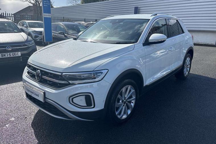 10.25" Digital cockpit pro, Bluetooth mobile phone interface, Driver alert system with fatigue detection, Driver tips and journey analysis, Emergency call service, Lane keeping system Lane Assist, Modified key software - reduce switch off time for key status change to Long no motion, Online services, Park assist including front and rear parking sensors, Service interval indicator, Tailgate/trunk lid release from outside, Think blue trainer driver tips and journey analysis, Warning sound and light for front seatbelts unfastened, Wireless app connect, Battery regeneration during braking, Start/stop function with battery regeneration, Diversity antenna for FM reception, Front and rear 6 speakers, Music playback - MP3, WMA and AAC files, Premium USB cable in choice of either Apple or Android smartphone compatibility, SD card slot, Simultaneous pairing of 2 compatible mobile devices, Title and cover art display, We Connect and We Connect Plus functionality, 3rd brake light, Auto dimming interior rear view mirror, Automatic hazard lights activation under emergency braking, Automatic headlight control with LED separate daytime running lights with coming/leaving home function, Body colour sports bumpers with silver metallic underbody fascia, Dynamic headlight range control with self adjusting whilst driving, Extended roof spoiler, Exterior mirrors aspherical on driver side, convex on front passenger side, External USB type C socket and charging sockets, Front windscreen wiper with intermittent wipe and 4 position delay, Heated rear window, LED Plus headlamps, LED rear combination lamps, LED rear number plate lights, LED tail lamp rear comination lamps, Light mode for poor weather, rain, fog or snow, Power windows with comfort operation and circuit breaker, Rain sensor, Rear exhaust tailpipe, Rear fog light on one side and reversing lights on both sides, Rear side wing doors, Rear wash/wipe with intermittent wipe setting, Remote electrically foldable door mirrors, puddle lights and reverse activated passenger's door mirror, 12V power socket in centre console, 3 rear head restraints, 3 seat bench in 2nd row, 4 load lashing points in luggage compartment, Air care climatronic air conditoning system with active combination filter and 2-zone temperature control, Chrome plated radiator grille inserts, air vent surrounds and light switch surrounds, Door and side trim panel with leatherette insert, Drawer under drivers seat, Front + rear carpet mats, Front centre armrest, Front comfort sports seats, Front cupholders x 2, Front footwell illumination, Instrument lighting, white adjustable panel illumination, Interior ambient lighting and surround lighting, Interior light delay, Isofix child seat preparation, Leather gearshift handle, LED interior light with switch off delay/dimmer and 2 front/rear LED reading lights, Load-through provision with cup holder when folded down ('Unsplit rear seat bench, split folding backrest, with centre armrest), Luggage compartment lighting, Non-folding front passenger seat backrest, Single front passenger seat, Storage compartment in left and right luggage area, Storage compartment in rear doors, Storage compartments in driver and front passenger doors, Sunvisors with illuminated vanity mirrors, Variable boot floor, height adjustable and removable, Driver assistance pack without proactive passenger protection - T-Roc, 3 point height adj front seatbelts + pretensioners, 3 point seatbelts in outer rear with ECE label, ABS, Child locks on rear doors, Driver and front passenger airbag with front passenger airbag deactivation, Driver and front passenger safety-optimised head restraints, Drivers seatbelt reminder, Electronic parking brake, Electronic Stability Control (ESC) inc EDL (Electronic Differential Lock) and ASR (Traction Control), Front and rear passengers curtain airbag system including front side airbags, Front assist with city emergency braking and pedestrian monitoring, Front seat side impact airbags, Predictive pedestrian protection, Rear disc brakes, Single tone horn, Tyre pressure loss indicator, Volkswagen roadside assistance, Alarm with interior protection, Anti-theft alarm system with interior monitoring, backup horn, and towing protection, Remote central locking with SAFELOCK, radio remote control with 2 remote control folding keys, Trims for alloy wheels,