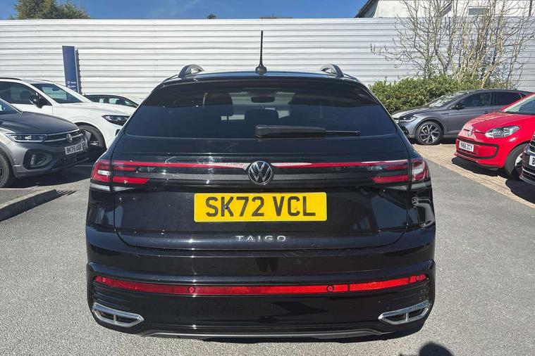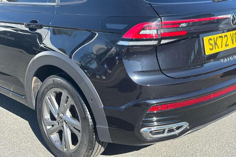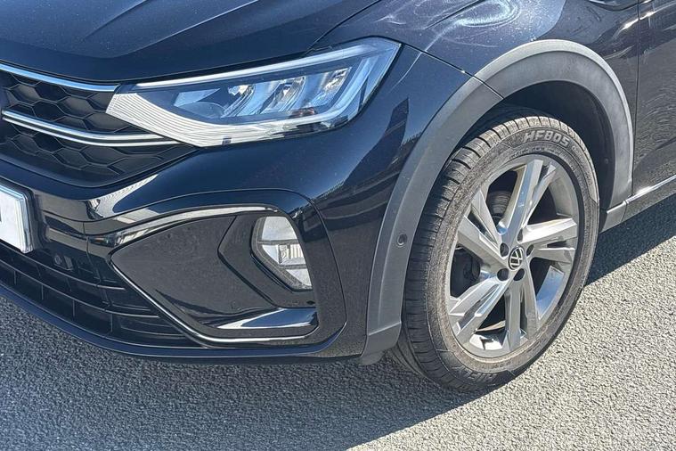 App-Connect including App-Connect Wireless, Digital cockpit pro - 10.25" high resolution TFT dash display screen with customizable menus and information, Driver alert system, Driving profile selection, e-Call (emergency call), Power Steering, Travel assist including emergency assist, Washer fluid level indicator, Wireless Charging including Bluetooth, Start-stop system with battery regeneration (recuperation - energy recovery during braking), XDS electronic differential lock for improved traction and handling, Digital radio reception (DAB+), Diversity antenna for FM reception, WeConnect plus, Ambient lighting with logo projection, Aspherical driver's exterior mirror, Auto headlights, Body coloured bumpers, Body coloured exterior mirror housings and door handles, Bumpers in R-Line style, Electric windows, External USB type C socket and charging sockets, Front fog lamps with cornering function, Front scuff plates with R-Line logo, Headlight range control, LED headlamps, LED rear combination lamp, LED third brake light, Left convex exterior mirror, Power folding adjustable/heated exterior mirrors and front passenger exterior mirror lowering function, Rear fog light on one side, reversing light on both sides, Rear side wing doors, Rear wash/wipe with intermittent wipe setting, 12V socket in centre console, 2 front reading lights, 3 rear head restraints, 3 seat bench in 2nd row, Air care climatronic air conditoning system with active combination filter and 2-zone temperature control, Black carpets, Black roof lining, Child seat anchor for child seat system i-Size, 2x top tether and child seat anchor in front on front passenger side, Chrome bezel for instrument cluster, vents, door handles + gear shift, Driver and front passenger seat height adjustment, Front + rear carpet mats, Front centre armrest, Front footwell illumination, Front sports comfort seats, Height and reach adjustable steering wheel, Interior ambient lighting and surround lighting, Karoso artvelours cloth upholstery, Leather trimmed gear knob, Leather wrapped multifunction steering wheel, Luggage compartment floor, Luggage compartment light, Lumbar support for driver's and front passengers seat, Seat covers in grey + titanium black, Single front passenger seat, Split folding backrest with centre armrest and unsplit rear seat bench, Stainless steel pedals, Storage compartment under front seats, Sun visors with illuminated vanity mirrors, Chrome Package - Taigo, Drivers assistance pack - Taigo, Light and Sight pack including High beam assist - Taigo, 2 x 3-point seatbelts/outer rear seats with ECE label, 3-point seat belts in front with pretensioner and height adjustment, 3-point seatbelt for centre rear seat, Driver and front passenger airbags with front passenger airbag de-activation, front side and curtain airbags, Driver and front passenger safety-optimised head restraints, Electronic stability control, Extended and predictive pedestrian/ cyclist protection, Front and rear disc brakes, Front curtain and side airbags with center airbag, Hill start assist, Manual rear child locks, Single tone horn, Tyre pressure loss indicator, Anti-theft alarm system with interior monitoring, backup horn, and towing protection, Anti-theft wheel bolts, Grey anodised matte decorative inserts in dash and front door panels, Low rolling resistance tyres,