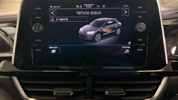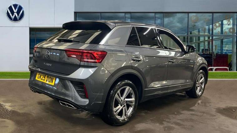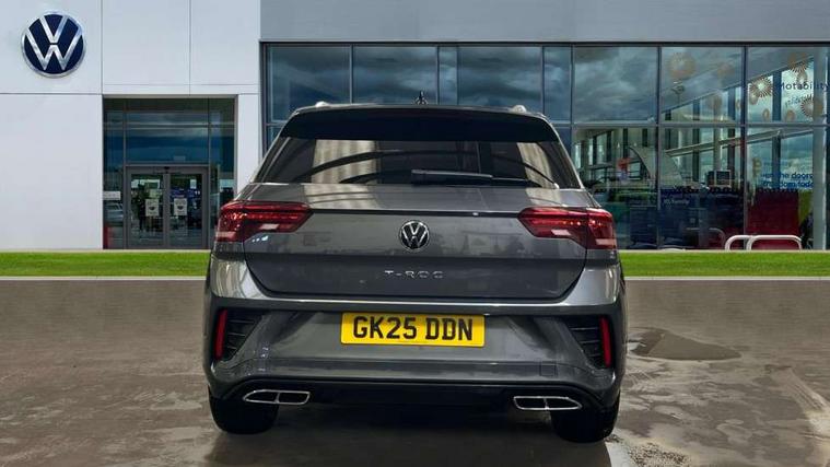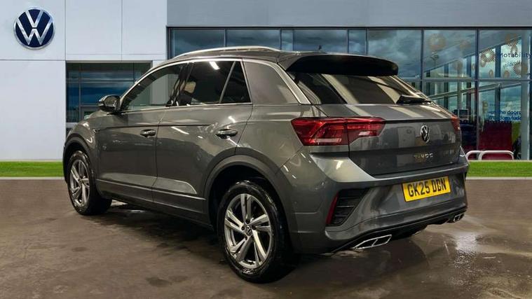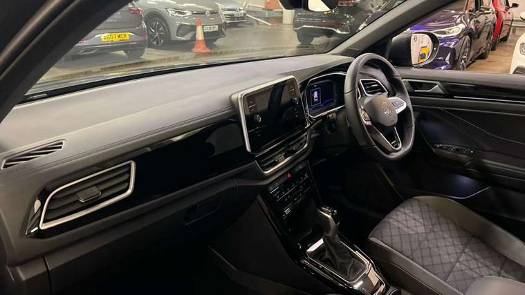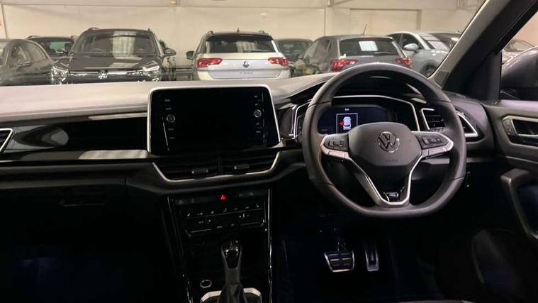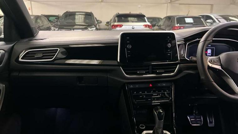 10.25" Digital cockpit pro, Advanced driver attention and drowsiness monitor, Emergency call service, Lane keeping system Lane Assist, Mobile phone interface, Modified key software - reduce switch off time for key status change to Long no motion, Online services, Park assist including front and rear parking sensors, Service interval indicator, Tailgate/trunk lid release from outside, Think blue trainer driver tips and journey analysis, Warning sound and light for front seatbelts unfastened, Wireless app connect, Battery regeneration during braking, Start/stop function with battery regeneration, DAB Digital radio, Diversity antenna for FM reception, Front and rear 6 speakers, Music playback - MP3, WMA and AAC files, Premium USB cable in choice of either Apple or Android smartphone compatibility, SD card slot, Simultaneous pairing of 2 compatible mobile devices, Title and cover art display, We Connect and We Connect Plus functionality, Auto dimming interior rear view mirror, Automatic hazard lights activation under emergency braking, Automatic headlight control with LED separate daytime running lights with coming/leaving home function, Body coloured exterior mirror housings and door handles, Electrically adjustable and heated door mirrors, Extended roof spoiler, Exterior mirrors aspherical on driver side, convex on front passenger side, External USB type C socket and charging sockets, Front windscreen wiper with intermittent wipe and 4 position delay, Heated rear window, LED 3rd brake light, LED rear combination lamps, LED rear number plate lights, Power windows with comfort operation and circuit breaker, Privacy glass for rear side windows and rear window, R-Line design body coloured bumpers, Rain sensor, Rear exhaust tailpipe, Rear fog light on one side and reversing lights on both sides, Rear side wing doors, Rear wash/wipe with intermittent wipe setting, Remote electrically foldable door mirrors, puddle lights and reverse activated passenger's door mirror, 12V power socket in centre console, 3 rear head restraints, 3 seat bench in 2nd row, 4 load lashing points in luggage compartment, Air care climatronic air conditoning system with active combination filter and 2-zone temperature control, Black roof lining, Chrome plated decorative trims, Chrome plated radiator grille inserts, air vent surrounds and light switch surrounds, Door and side trim panel with leatherette insert, Front + rear carpet mats, Front centre armrest, Front cupholders x 2, Front footwell illumination, Front reading light, Front scuff plates with R Line logo, Front seat back storage pockets, Glove compartment door with light, Instrument lighting, white adjustable panel illumination, Interior ambient lighting and surround lighting, Interior light delay, Isofix child seat preparation, Leather gearshift handle, Load-through provision with cup holder when folded down ('Unsplit rear seat bench, split folding backrest, with centre armrest), Luggage compartment lighting, Single front passenger seat, Stainless steel pedals, Storage compartment in left and right luggage area, Storage compartment in rear doors, Storage compartments in driver and front passenger doors, Sunvisors with illuminated vanity mirrors, Variable boot floor, height adjustable and removable, Driver assistance pack without proactive passenger protection - T-Roc, 3 point height adj front seatbelts + pretensioners, 3 point seatbelts in outer rear with ECE label, ABS, Child locks on rear doors, City emergency braking and pedestrian monitoring, Driver and front passenger airbag with front passenger airbag deactivation, Driver and front passenger safety-optimised head restraints, Drivers seatbelt reminder, Electronic parking brake, Electronic Stability Control (ESC) inc EDL (Electronic Differential Lock) and ASR (Traction Control), Front and rear passengers curtain airbag system including front side airbags, Hill start assist, Predictive pedestrian protection, Rear disc brakes, Two tone horn, Tyre pressure loss indicator, Volkswagen roadside assistance, Piano black decorative inserts in dashboard and front door trim panels, Trims for alloy wheels,