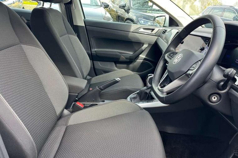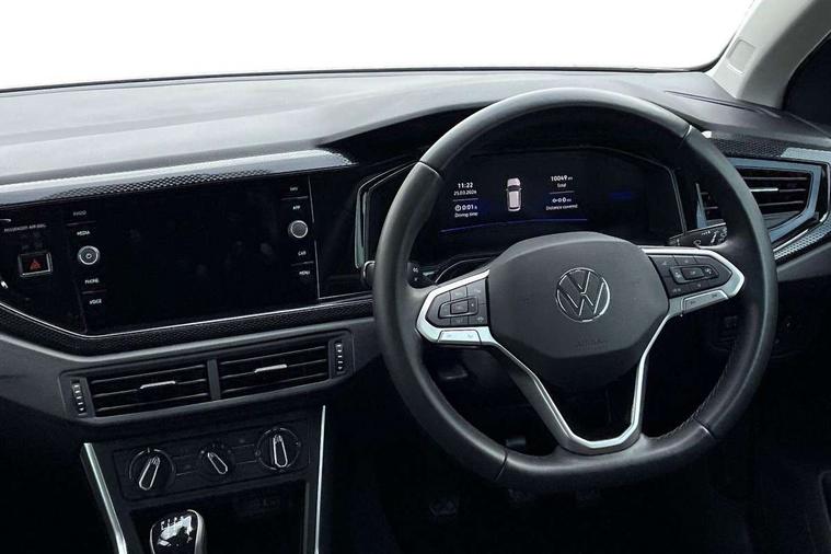 Advanced driver attention and drowsiness monitor, Bluetooth mobile phone interface, Cruise control + speed limiter, Dynamic road sign display, Emergency call service, Lane keeping system Lane Assist, Multifunction camera, Power assisted speed sensitive steering, Preparation for navigation system with media and internet package, Preparation for We connect and We connect plus, Speedo and rev counter, electronic odometer, trip, service interval display and exterior temperature gauge, Standard rear axle, Trip computer, Warning signal and warning light for front and rear seatbelts not fastened, Washer fluid level indicator, Wireless app connect, Front wheel drive, Rear shock absorpion, Start-stop system with battery regeneration (recuperation - energy recovery during braking), DAB Digital radio, Diversity antenna for FM reception, Front and rear 6 speakers, Automatic dimming interior rear view mirror, Automatic headlight control with LED separate daytime running lights with coming/leaving home function, Body colour bumpers with chrome inserts, Body colour door handles, Body colour door mirrors, Electric front windows, Engine badge deletion, Headlight range adjustment, Heat insulating and laminated safety glass windshield, Heat insulating darkened glass in side and rear windows, LED Headlights, LED rear combination lamps, Power folding adjustable/heated exterior mirrors and front passenger exterior mirror lowering function, Rain sensor, Rear electric windows, Rear fog light, Rear side wing doors, Rear windscreen washer and wiper with interval delay, Third brake light, 12V power socket in centre console, 2 front and 2 rear reading lights with switch off delay and dimmer, 2 USB-C ports in the front, 2 USB-C charging sockets on the center console in the rear, 3 rear head restraints, 60/40 split folding rear seat and rear seat bench not split, Ceramique roof lining, Chrome plated radiator grille inserts, air vent surrounds and light switch surrounds, Door and side trim panel, Driver and front passenger seat height adjustment, Driver/passenger sunvisors with illuminated vanity mirrors, Front centre armrest, Front seat backrest storage pockets, Front standard seats, Handbrake lever handle in leather, Hartley/Thomas cloth upholstery, Headliner in recycled material, Isofix child seat preparation easy-fit (for two outer rear seats, and front passenger seat) compatible with I-size, Leather trimmed gear knob, Luggage compartment cover, Luggage compartment lighting, Removable luggage compartment floor, Single front passenger seat, Standard climatic zones, Standard pedal cluster, Three spoke leather wrapped multifunction steering wheel, Light and vision pack - Polo, 3 point height adj front seatbelts + pretensioners, 3x3 point rear seatbelts, ABS, Driver and front passenger airbag with front passenger airbag deactivation, Drivers and front passengers safety optimised head restraints, ESC (Electronic stability control) + EDL (Electronic Differntial lock) and ASR (Traction control), Extended and predictive pedestrian/ cyclist protection, Front assist with autonomous emergency braking (for Adaptive Cruise Control ACC up to 130 mph), Front curtain and side airbags with center airbag, Front disc brakes, Hill hold control, Manual child lock in rear doors, Rear drum brakes, Single tone horn, Tyre pressure loss indicator, Alarm with interior protection, Anti-theft alarm system with interior monitoring, backup horn, and towing protection, Anti-theft wheel bolts, Electronic engine immobiliser, Lava stone black gloss/matt decorative inserts in dash and front door panels, Low rolling resistance tyres,