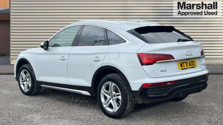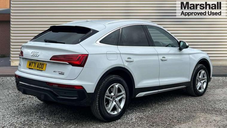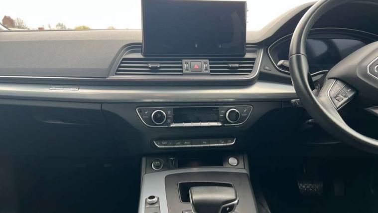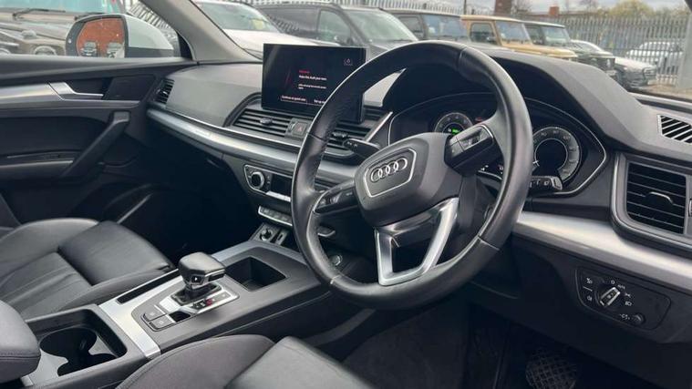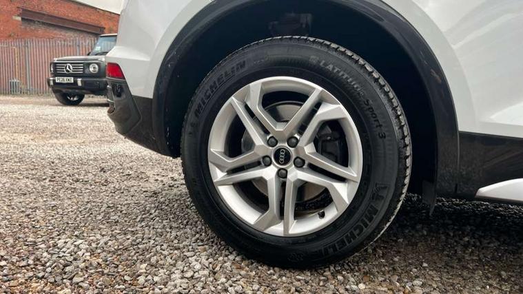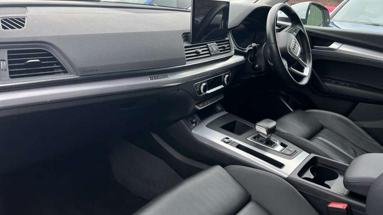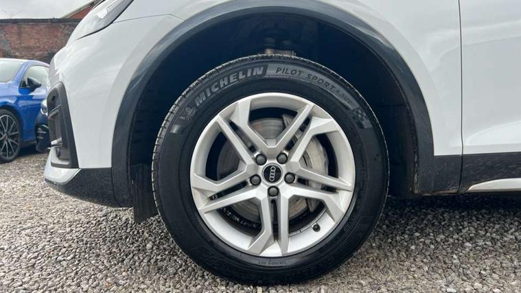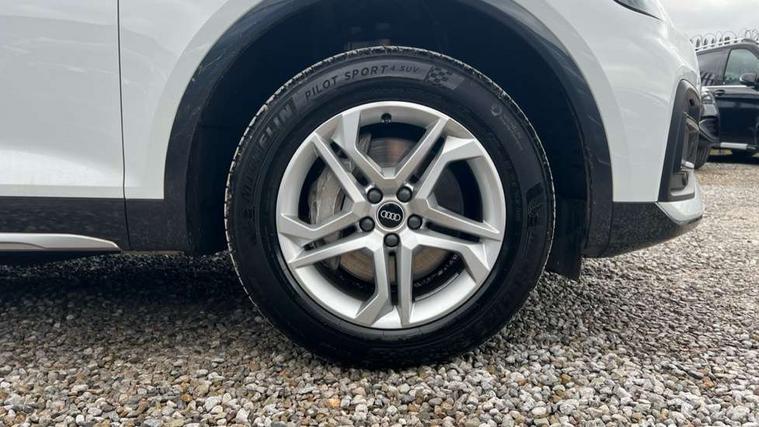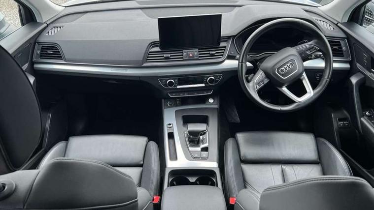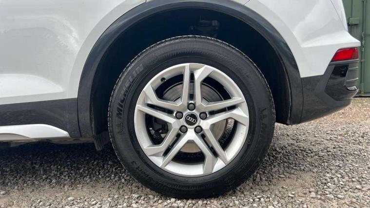 Audi connect safety and service (e-call), Audi connect with Amazon Alexa Integration, Audi drive select, Audi virtual cockpit plus with 12.3" screen and three different layout designs, Audi wireless smartphone interface, Automatic start-stop system with coasting functionality and efficiency programme, Bluetooth interface, Cruise control + speed limiter, Electro - mechanical power assisted steering, MMI navigation plus with 10.1" touch screen, Power tailgate, Reversing camera, Service interval indicator, Voice control system with Audi hotword activation "Hey Audi", 3 pin 10 amp domestic charging cable, Dynamic suspension, Quattro on demand, Type 2 mode 3 22kW 32 amp charging cable, Type 2 socket for AC charging, DAB Digital radio, Acoustic windscreen, Air inlets in matt titanium black with blades in matt aluminium silver, Aluminium roof rails, Auto dimming rear view mirror, Automatic headlights and windscreen wipers, Body colour bumpers, Body colour door mirrors, Chrome plated exhaust trims, Door sills in Selenite silver, Electric adjustable/heated/folding door mirrors, Front and rear electric windows, LED headlights and LED tail lights, Lower bumpers painted in contrast Manhattan grey, Matt selenite silver underbody protection, Matt twilight grey radiator grille with chrome vertical struts, Rear chrome trim strip below lights, Rear diffuser strip in selenite silver, Rear spoiler, Rear wiper, Roof bars, 2 x USB charging port with aux input socket, 3 rear headrests, 3 spoke multifunction leather steering wheel with shift paddles, 40:20:40 split folding rear seat with rear centre armrest, Comfort front centre armrest, Deluxe 3 zone electronic climate control, Door sills trims with aluminium inlays, Front/rear floor mats, Heated front seats, Height adjustable front head restraints, Height/reach adjustable steering column, ISOFIX child seat mounting and top tether, Manual seat adjustment with 4-way electric lumbar support, Rear seat bench plus, Silver cloth headlining, Sunvisors with vanity mirrors, Tool kit, Trunk roller cover, Twin leather upholstery + front sports seats, High gloss pack - Q5, LED interior light pack - Q5, 3 point seatbelts on all seats, 6 airbags - Driver, front passenger, curtain and side airbags, Electrically operated child locks on rear doors, Electromechanical parking brake, Electronic stabilisation control including ABS, ASR and EDL, Front passenger airbag deactivation, Hill descent control, Hill hold assist, Multi collision brake assist, Pop-up bonnet for pedestrian protection, Pre sense city, Seat belt force limiter, Seatbelt monitoring, Tyre pressure warning, Warning triangle and first aid kit, Anti theft alarm, Anti-theft wheel bolts, Keyless Go access/ignition system, Aluminium rhombus inlay, 18" 5 twin spoke dynamic design alloy wheels, Tyre repair kit,