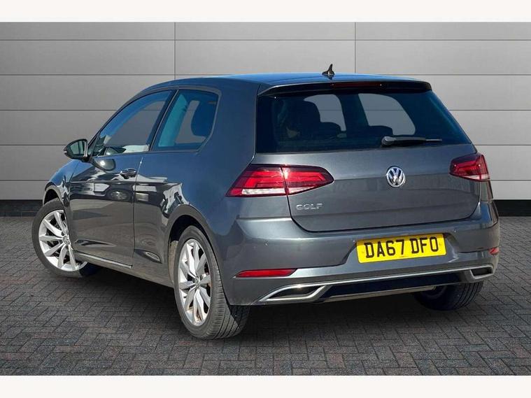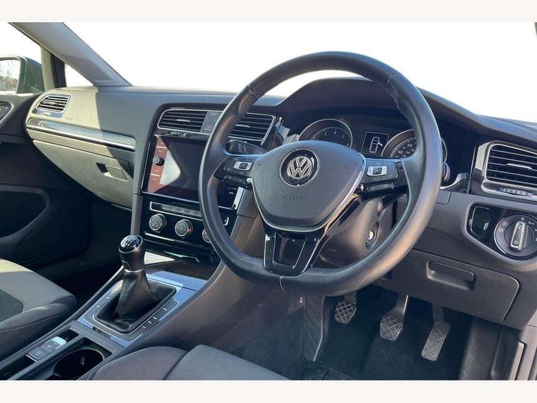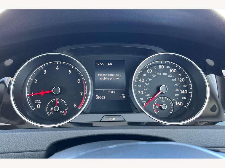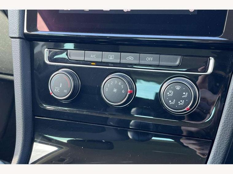 'Lights On' Reminder warning buzzer, 8" touch screen, Adaptive Cruise Control with pedestrian detection and speed limiter, App-Connect, Bluetooth hands free telephone connection, Brake pad wear indicator warning light, Driver alert system, Driver profile selection, Exterior temperature gauge, Front assistant collision mitigation, Instrument cluster in white, Multifunction computer, PAS - speed related, Rev counter, Trip and service interval display, Ultrasonic front and rear optical and audible parking sensors, Warning buzzer and light for front seatbelts unfastened, Lowered sports suspension, XDS electronic differential lock, CD/MP3/WMA, USB and SD card reader, aux-in, Composition media system, DAB Digital radio, Auto dimming rear view mirror, Automatic coming/leaving home lighting function, Automatic headlights, Black front air intake and radiator grille with chrome insert, Black rear diffuser, Body colour bumpers, Body colour door handles, Body colour door mirrors, Chrome grille surround, Electric front windows, Electrically adjustable and heated door mirrors, Heat insulated tinted glass 65% light absorbing from B pillar back, Heated rear windscreen, LED daytime running lights, LED front fog lights with static cornering light function, LED rear lights, Rain sensor, Rear roof spoiler, Rear windscreen washer and wiper with interval delay, 12V socket in luggage compartment, 3 rear headrests, 3 spoke steering wheel, 60/40 split folding rear seat, Bag hook in luggage compartment, Boot lashing points, Cooled glovebox, Courtesy light delay, Cover for storage compartment in centre, Dust/pollen filter, Easy entry slide seats (access to rear seats), Front + rear carpet mats, Front centre armrest with storage box and rear air vents, Front passenger seat height adjust, Front seat back storage pockets, Grab handles, Height adjustable driver's seat, Height/reach adjust steering wheel, Illuminated vanity mirrors, Isofix preparation for 2 rear child seats, Load through provision with rear centre armrest and cupholders x2, Luggage compartment cover, Luggage compartment lighting, Multifunction leather steering wheel with leather gear knob/handbrake grip, Overhead storage box, Pearl grey headlining, Storage box in luggage compartment, Storage compartments in doors, Sun visors, Variable boot floor, height adjustable and removable, Ambient lighting pack - Golf, Mirror pack - Golf, 3 point height adj front seatbelts + pretensioners, 3 rear 3 point seatbelts, ABS, Automatic post collision braking, Child locks on rear doors, Driver/Front Passenger airbags, Driver/Passenger whiplash optimised head restraints, Drivers knee airbag, Electronic parking brake with auto hold, ESP with EDL + ASR, Front and rear curtain airbags, Front passenger airbag deactivation, Front side airbags, Pre crash system, Tyre pressure monitor, Alarm with interior protection, Electronic engine immobiliser, Remote central locking with 2 remote folding keys, Chrome-plated light switch surround, Piano black centre console, Tumbler decorative inserts, Steel space saver spare wheel,