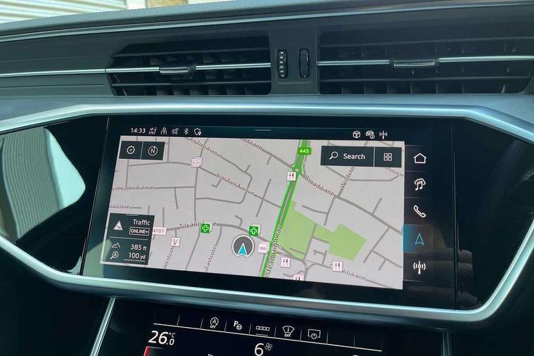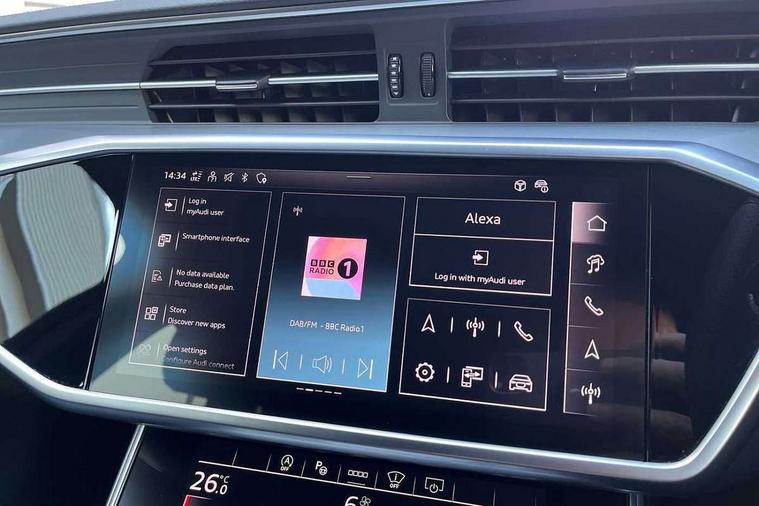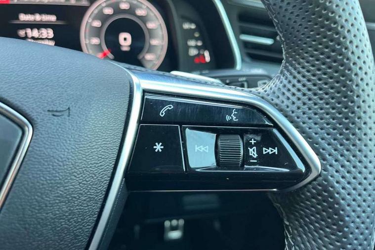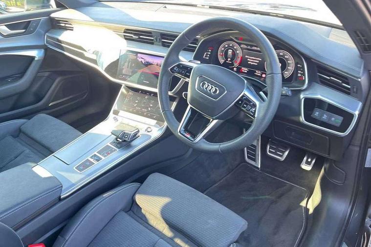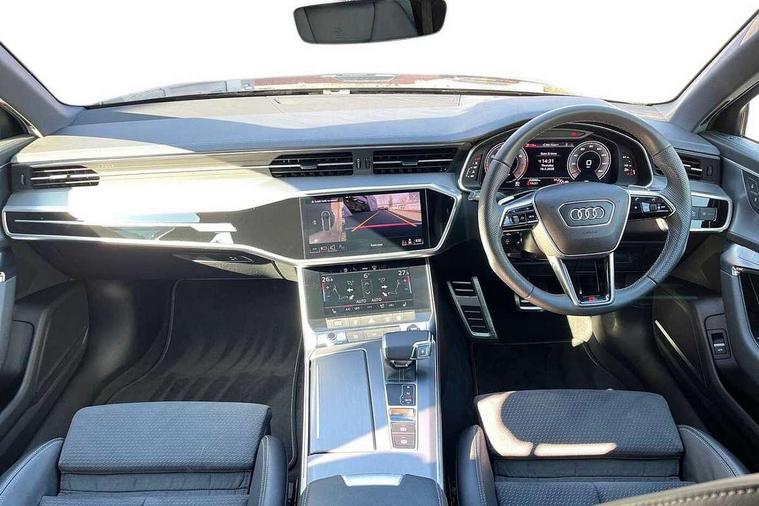 Audi connect safety and service (e-call), Audi connect with Amazon Alexa Integration, Audi drive select, Audi parking system plus - acoustic and visual park assist system for front and rear, Audi virtual cockpit, Automatic start/stop system with coasting functionality, Bluetooth interface, Camera based traffic sign recognition, Lane departure warning system, MMI navigation plus with 10.1" and 8.6" touch screens, Power operated tailgate, Progressive steering, Rear view camera, Service interval indicator, Smartphone interface includes wireless Apple carplay/Android Auto, Voice control system, Sports suspension, Audi front music interface, Audi sound system, Auxiliary input socket, DAB Digital radio, USB connection, Aluminium roof rails, Body colour rear roof spoiler, Body coloured door mirrors, Electric front/rear windows, Electrically adjustable heated and folding + automatically dimming exterior mirrors with memory function, Frameless auto dimming interior rear view mirror, Front intermittent wipers, Heat insulating darkened glass in side and rear windows, Heat insulating glass in windshield, LED rear lights with dynamic indicators, LED signature front daytime running light, LED third brake light, Matrix LED headlights, Matt black rear diffuser with diffuser strip and tailpipes in chrome, Matt black side air intake grille with inlay in matt aluminium, Privacy glass, Radiator grille in anthracite black matt, single frame in chrome and horizontal struts in matt aluminium silver, Rain and light sensors, Rear side wing doors, Rear wiper, 2 zone deluxe electronic climate control, 3 spoke high multi-function perforated leather steering wheel with contrast stitching and shift paddles, 40/20/40 split folding 3 rear seat bench in 3 parts with rear centre armrest, Audi phone box light, Black cloth headlining, Electrically adjustable front seats including seat height, fore/aft position, backrest angle and 4-way lumbar with memory for driver's seat, Front and rear floor mats, Front centre armrest, Front head restraints, Heated front seats, Height/reach adjust steering wheel, Illuminated door sill trims with S logo, Illuminated sun visors with vanity mirrors, ISOFIX child seat mounting and Top Tether with front passenger airbag deactivation, Leather gear knob, Luggage compartment system, Rear headrests, Single front passenger seat, Stainless steel pedals and foot rest, Tool kit and car jack, LED Interior Ambient Lighting Pack - A6, Non smoking pack - A6, S line exterior style pack - A6, 3 point seatbelts on all seats, Airbags - Front side, front and rear including head, Audi pre-sense front, EBD - Electronic brakeforce distribution, Electromechanical parking brake, Electronic Stability Control (ESC) including ABS, ASR and EDL, Extended pedestrian protection measures, Manual child proof rear door locks, Seatbelt monitoring, Tyre pressure warning light, Warning triangle and first aid kit, Anti theft alarm with tow away protection, Anti-theft wheel bolts and wheel loosening detection, Immobiliser, Keyless Go, Remote central locking, Matt brushed aluminium inlays,