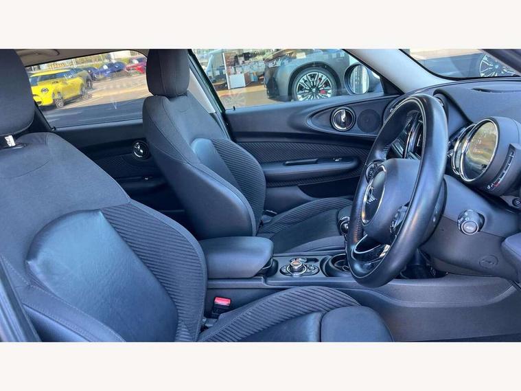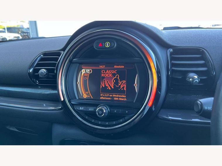Brake pad wear indicator warning light, DTC - Dynamic traction control, Exterior temperature gauge, Intelligent emergency call, Mini Ecall, MINI TeleServices, Navigation system, On board computer, Personal Profile, Service interval indicator, Servotronic speed sensitive power steering, Electronic differential lock, Auxiliary input socket, DAB digital radio module, MINI Connected, MP3 compatible radio/single CD player, Radio visual boost, Anti dazzle rear view mirror, Body coloured bumpers, Chrome door handles, Chrome exhaust tailpipe, Chrome headlight surround, Chrome plated radiator grille, Electric front windows + one touch + anti-pinch, Electrically adjustable door mirrors, Follow me home headlights, Front intermittent wipers, Heated door mirrors/heated windscreen washers, Heated rear window with timer, Metal look door sill finishers, Rain sensor including auto headlights activation, Rear wiper, Roof spoiler, White indicator lights, 12V power point front, 4 lashing points to secure luggage, 60/40 split folding rear seat, Centre console storage box, Chrome interior door handles, Driver/passenger sunvisors, Easy entry seats, Front and rear cupholders, Front and rear Isofix child seat preparation, Front and rear velour floor mats, Front centre armrest with storage compartment, Front headrests, Front interior light, Front passenger grab handle, Front seat backrest storage nets, Heater with recirculation function, Height/reach adjust steering wheel, Luggage compartment lighting, Multifunction steering wheel, Outer passenger rear headrests, Rear armrest with storage, Rear grab handles, Storage compartments in doors, Toolkit in luggage compartment, Interior lights pack - Mini Clubman, 3 point automatic seatbelts, 3 point seatbelts on all rear seats, ABS, Automatic Stability Control (ASC), Cornering brake control (CBC), Crash Sensor - activates hazard/interior lighting + unlocks doors, Driver and passenger airbags, Driver and passenger side airbags, DSC - Dynamic Stability Control, Electronic brake force distribution, Electronic parking brake, Front curtain airbags, Front passenger airbag deactivation, Fuel cut off safety device, Hill start assist, Pyrotechnically pre-tensioned front seatbelts, Traction control, Twin horns, Tyre pressure warning, Drive away door locking, Keyless start, Locking wheel bolts, RF remote control central locking, Second remote key, Thatcham category 1 alarm + immobiliser,