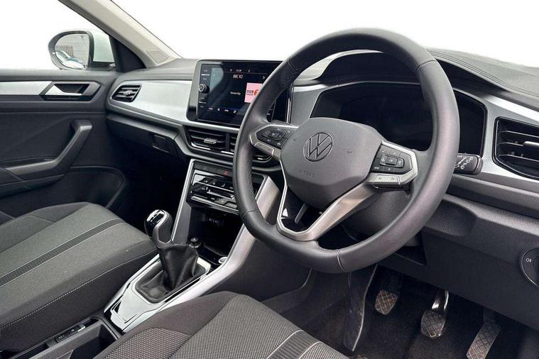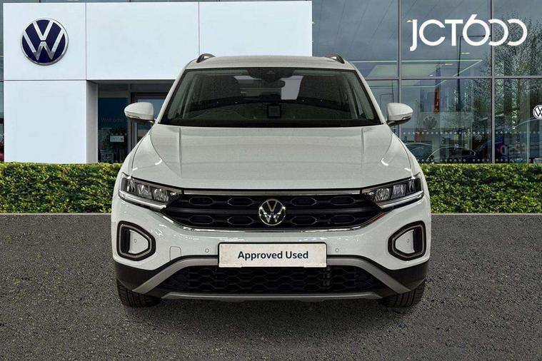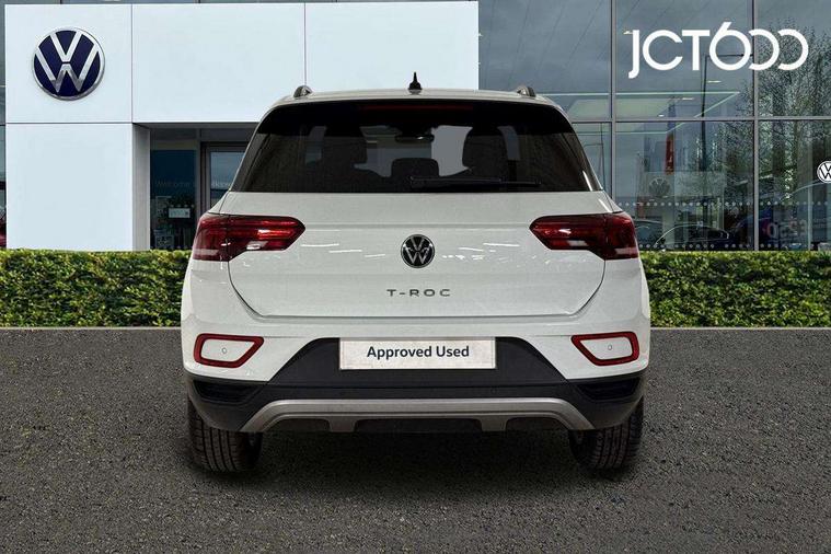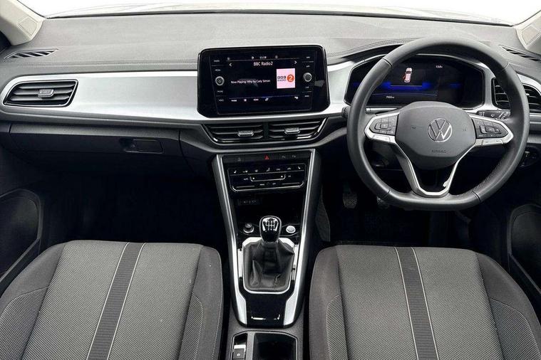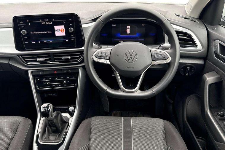 Advanced driver attention and drowsiness monitor, Dynamic road sign display, Emergency call service, Lane keeping system Lane Assist, Mobile phone interface, Modified key software - reduce switch off time for key status change to Long no motion, Online services, Park assist including front and rear parking sensors, Power assisted speed sensitive steering, Rear view camera, Service interval indicator, Tailgate/trunk lid release from outside, Think blue trainer driver tips and journey analysis, Warning sound and light for front seatbelts unfastened, Wireless app connect, Battery regeneration during braking, Front shock absorption, Rear shock absorption chassis with increased ride height, Start/stop function with battery regeneration, DAB Digital radio, Diversity antenna for FM reception, Music playback - MP3, WMA and AAC files, SD card slot, Simultaneous pairing of 2 compatible mobile devices, Title and cover art display, We Connect and We Connect Plus functionality, Auto dimming interior rear view mirror, Automatic hazard lights activation under emergency braking, Automatic headlight control with LED separate daytime running lights with coming/leaving home function, Black roof rails, Body coloured bumpers and radiator grille with chrome trim and front fog lamps with chrome bezel, Body coloured exterior mirror housings and door handles, Electrically adjustable and heated door mirrors, Extended roof spoiler, Exterior mirrors aspherical on driver side, convex on front passenger side, External USB type C socket and charging sockets, Front windscreen wiper with intermittent wipe and 4 position delay, Heated rear window, LED 3rd brake light, LED rear combination lamps, LED rear number plate lights, Power windows with comfort operation and circuit breaker, Privacy glass for rear side windows and rear window, Rain sensor, Rear exhaust tailpipe, Rear fog light on one side and reversing lights on both sides, Rear side wing doors, Rear wash/wipe with intermittent wipe setting, Remote electrically foldable door mirrors, puddle lights and reverse activated passenger's door mirror, 12V power socket in centre console, 3 rear head restraints, 3 seat bench in 2nd row, 4 load lashing points in luggage compartment, Air care climatronic air conditoning system with active combination filter and 2-zone temperature control, Black stitching for floor mats, Ceramique roof liner, Cloth upholstery, Door and side trim panel in cloth, Drawer under drivers seat, Driver/front passenger seat height adjustment, Front centre armrest, Front comfort sports seats, Front cupholders x 2, Front reading light, Front seat back storage pockets, Glove compartment door with light, Instrument lighting, white adjustable panel illumination, Interior ambient lighting and surround lighting, Interior light delay, Isofix child seat preparation, Leather gearshift handle, Load-through provision with cup holder when folded down ('Unsplit rear seat bench, split folding backrest, with centre armrest), Luggage compartment lighting, Lumbar support for driver's and front passengers seat, Non-folding front passenger seat backrest, Single front passenger seat, Storage compartment in left and right luggage area, Storage compartment in rear doors, Storage compartments in driver and front passenger doors, Sunvisors with illuminated vanity mirrors, Variable boot floor, height adjustable and removable, Driver assistance pack without proactive passenger protection - T-Roc Life/Match, 3 point height adj front seatbelts + pretensioners, 3 point seatbelts in outer rear with ECE label, ABS, Child locks on rear doors, City emergency braking and pedestrian monitoring, Driver and front passenger airbag with front passenger airbag deactivation, Driver and front passenger safety-optimised head restraints, Drivers seatbelt reminder, Electronic parking brake, Electronic Stability Control (ESC) inc EDL (Electronic Differential Lock) and ASR (Traction Control), Front and rear passengers curtain airbag system including front side airbags, Front disc brakes, Hill start assist, Predictive pedestrian protection, Rear disc brakes, Two tone horn, Tyre pressure loss indicator, Volkswagen roadside assistance, Alarm with interior protection, Keyless locking and starting system keyless access with safelock, Pewter matt decorative inserts for intrument panel, centre console and door panels at the front, Trims for alloy wheels,