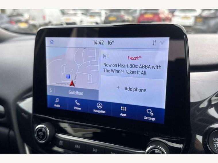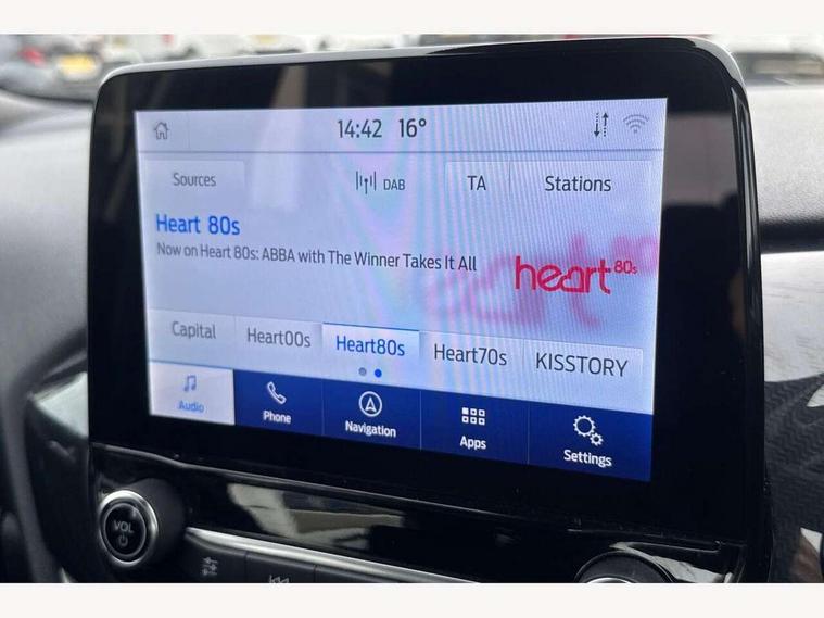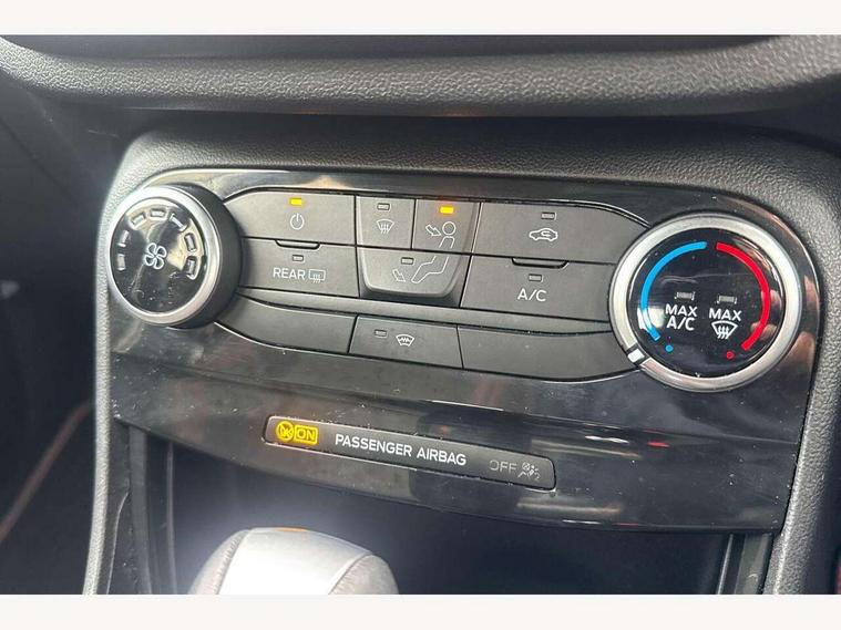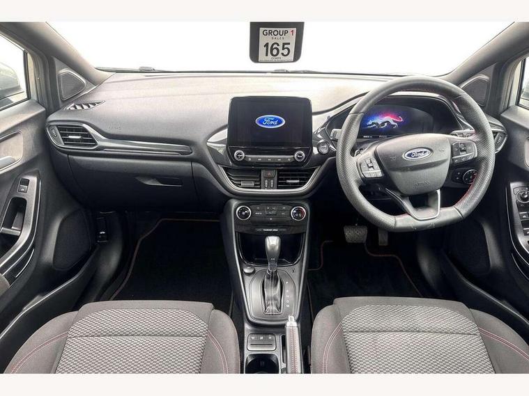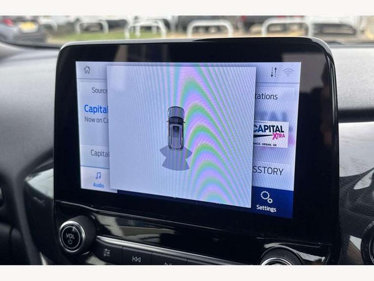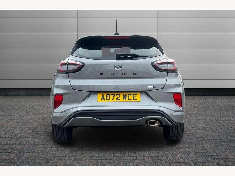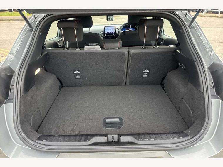 Driver impairment monitor, Emergency call service, Ford easy fuel, Full digital 12.3" instrument cluster, Lane keeping aid with lane departure warning, Power assist steering, Power start button, Rear parking sensor, Selectable drive modes(Normal, Eco, Sport, Slippery and Trail), Speed sign recognition, Sport suspension, Automatic headlights with auto high beam, Automatic rain sensing wipers, LED rear lamps, Power foldable heated door mirrors with puddle lamps, Projector headlamps with LED day time running lights and front fog lamps, Quickclear heated windscreen, Rear side wing doors, Rear wiper, ST-Line body styling kit with unique grille and large body colour rear spoiler, Third brake light, 3 seat bench in 2nd row, Centre console with armrest and stowage, Ford megabox extended bootspace, Front and rear head restraints, Front floor mats, Manual 2 way passenger seat adjustment, Manual 4 way driver seat adjust with lumbar adjustment, Single front passenger seat, ST- Line cloth trim with red stitching, ST-Line flat bottomed sensico leather steering wheel with leather handbrake and aluminium gear knob, Ford SYNC 3 navigation pack - Puma, 3 rear seatbelts, Child safety lock, Electronic stability control (ESC) and hill start assist, Pedestrian/cyclist detection & post-collision braking, Pre collision assist system, Tyre pressure monitoring system (TPMS), Thatcham alarm,