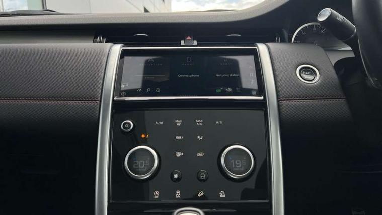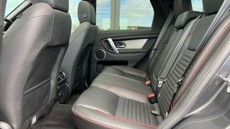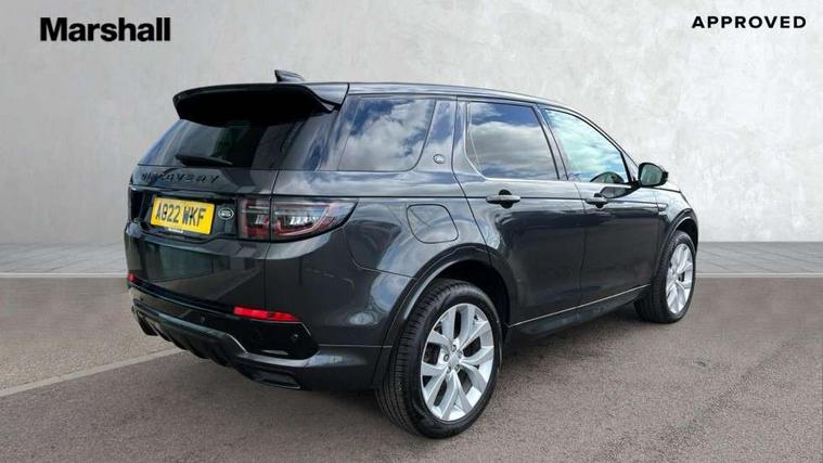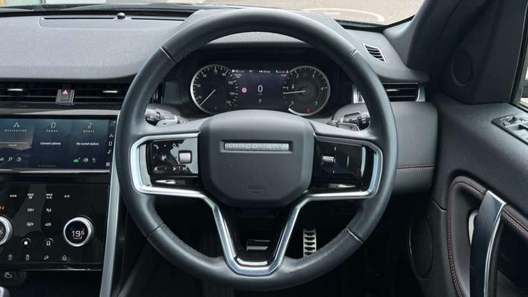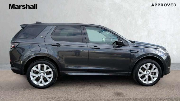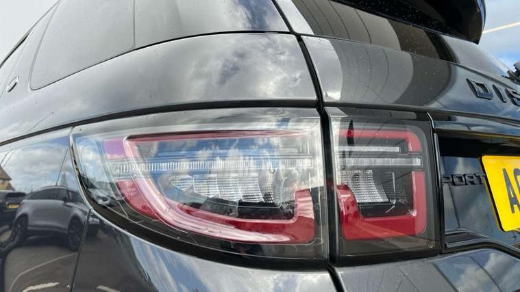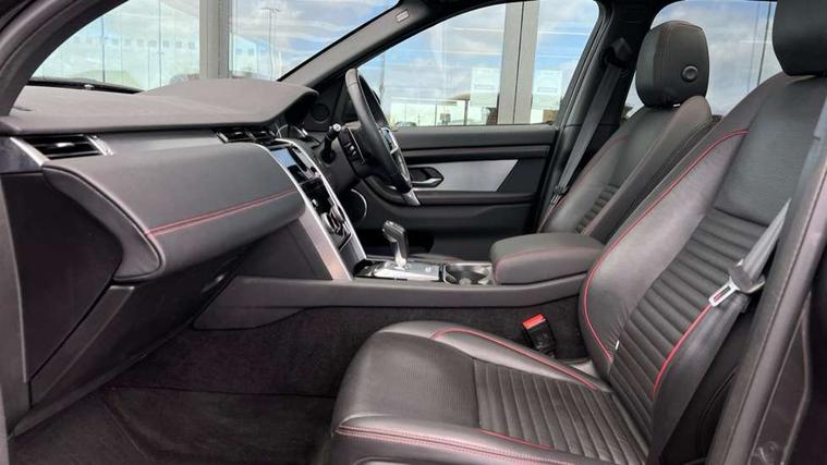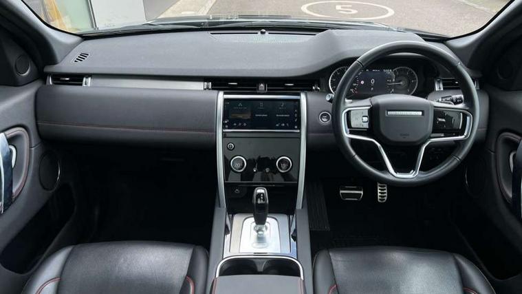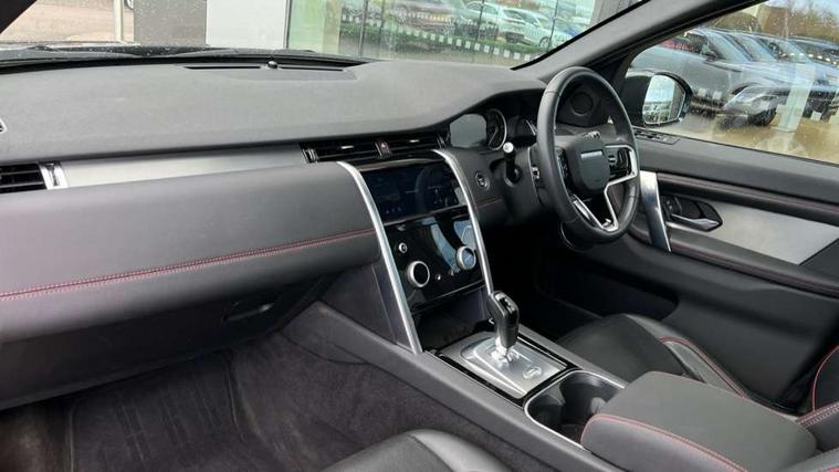 10" touch screen, Adaptive cruise control, Android Auto, Apple CarPlay, Driver condition monitor, eCall emergency call system, Front and rear parking aid, InControl remote premium, Lane keep assist, Locking fuel flap, PAS, Pivi Pro connected navigation system with upgraded Infotainment, Powered tailgate/boot lid, Push button start, Rear collision monitor, Service interval indicator, Traffic sign recognition with adaptive speed limiter, Trip computer, Wade Sensing, All terrain progress control, Coil suspension system, Diesel particulate filter, Dynamic stability control, Terrain Response 2, Bluetooth connectivity including audio streaming, Digital Audio Broadcast radio-DAB, Steering wheel mounted audio controls, 3rd brake light, Automatic headlights, ClearSight interior rear view mirror, Electric front/rear windows, Electric heated/power fold door mirrors with approach lights and auto dimming driver side, Fixed panoramic sunroof with powered sunblind, Front and rear recovery eyes, Heated rear window, Heated windscreen including heated washer jets, No badges, R Dynamic badge, Rain sensing windscreen wipers, Rear fog lights, Rear side wing doors, Rear wing door, Rear wiper, 5 seats, Bright metal pedals, Centre console with armrest, Footwell lights, Front and rear grab handles, Front passenger isofix child seat attachment, Loadspace cover, Loadspace light, Overhead lighting console, Overhead stowage for sunglasses, Rear headrests, Satin chrome gearshift paddles, Sunvisors with illuminated vanity mirrors, Tilt/reach adjustable steering wheel, Black exterior pack - Discovery sport, Online pack with data plan - Discovery, 3 point seatbelts on all seats, ABS, Brake hold function, Child locks on rear doors, Collision mitigation braking system, Cornering brake control (CBC), Driver/Front Passenger airbags, Drivers knee airbag, Electronic brake force distribution, Electronic parking brake, Emergency brake assist, ESP + traction control, Hill descent control, Hill launch assist, Pedestrian airbag system, Rear seat ISOFIX, Roll stability control, Side and curtain airbags for front and 2nd row seats, Trailer stability control, Tyre pressure monitoring system, Battery Back Up System (BBUS) with tilt sensor, Global lock and unlock switch on driver door, Intrusion sensor, Keyless entry, Locking wheel nuts, Centre stack rails in noble chrome,