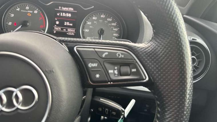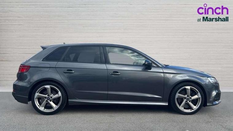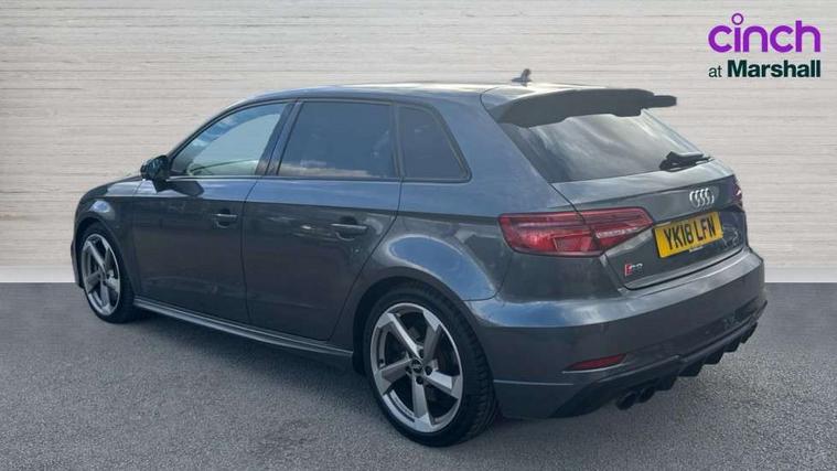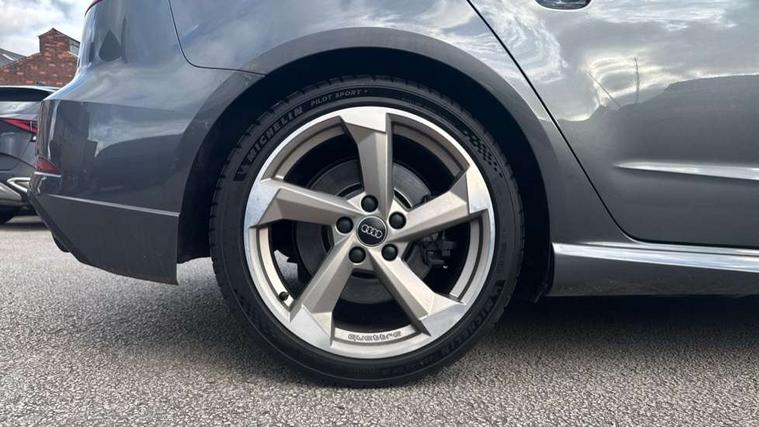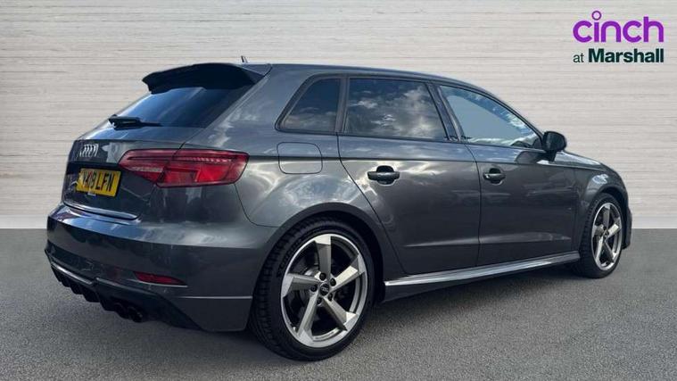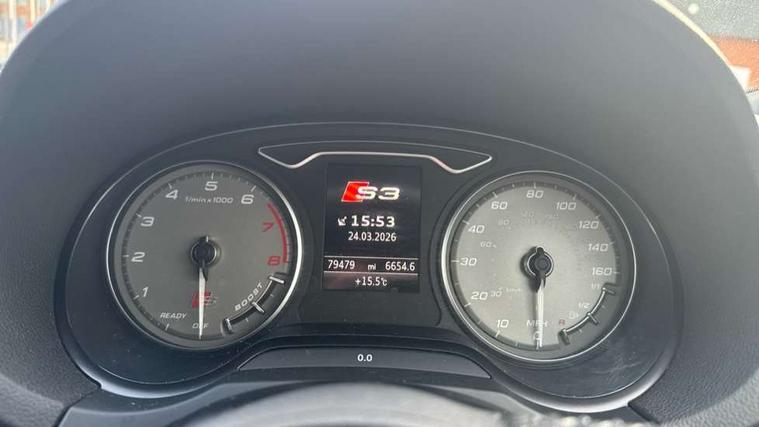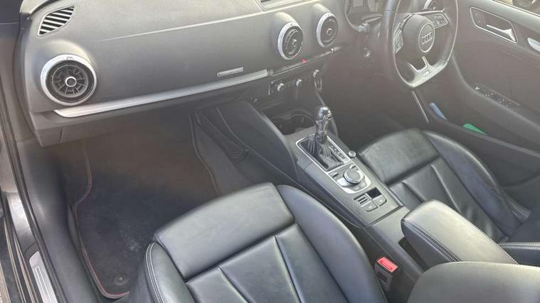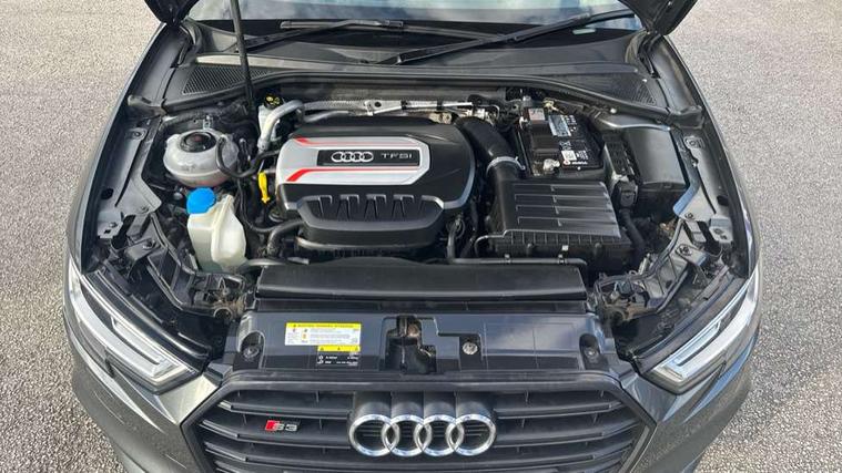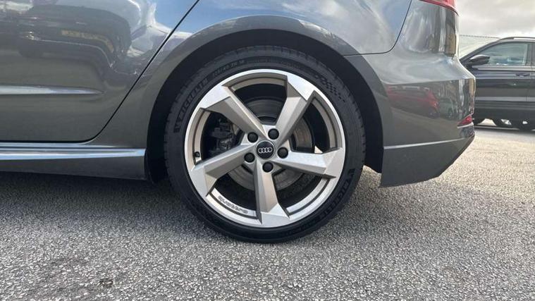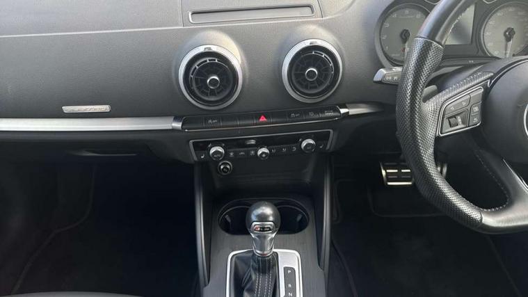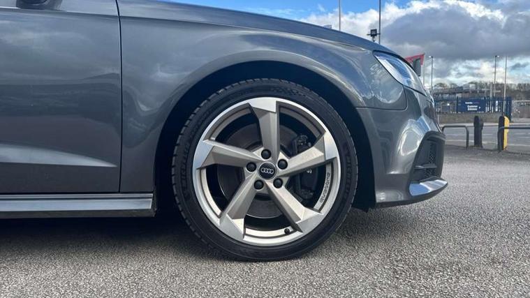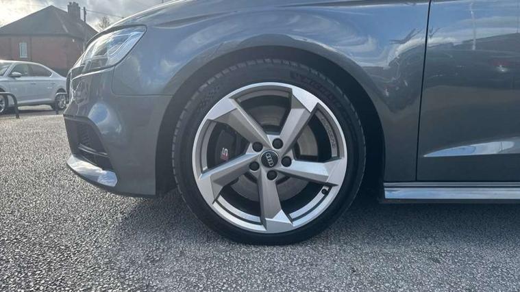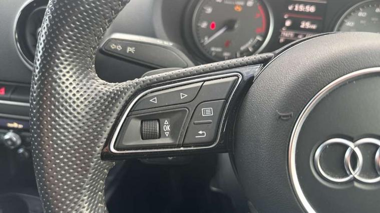 Audi connect, Audi drive select, Audi smartphone interface, Colour driver's information system display, HDD satellite navigation system radio single CD/DVD player MMI control system, Mobile telephone preparation - bluetooth interface, Progressive power assisted steering, Service interval indicator, Speed limit display, Voice control system, S sports suspension, 2 USB ports, Audi music interface, Auxiliary input socket, Bang + Olufsen advanced sound system, CD player, DAB Digital radio, MMI radio plus with 7" colour MMI screen and MMI controller, Auto dimming rear view mirror with light and rain sensors, Black door mirrors, Black window surrounds, Body colour bumpers with black insert, Body colour roof spoiler, Electric front windows, Electric operated/heated door mirrors, Electric rear windows, Headlight washers, Heated windscreen washer jets, LED daytime running lights, Matt black radiator grille, Platinum grey radiator grille with double chrome bars, Privacy glass, Rear wiper, S body styling, Twin oval chrome trimmed exhaust tailpipes, 3 adjustable rear headrests, 3 spoke flat bottomed multi-function leather steering wheel, 4 lashing points to secure luggage, Adjustable front armrest, Dual zone electronic climate control, Front and rear interior lights with delay, Front passenger seat isofix location point, Front/rear floor mats, Heated front seats, Height/depth adjustable steering column, Illuminated glovebox, ISOFIX child seat preparation+airbag deactivation, Jack and tool kit, Rock grey headlining, Stainless steel pedals, Steering wheel gearshift paddles, Storage compartment in centre console, Storage compartment under front seats, Storage compartments in doors, Black styling pack - A3/S3, LED interior light pack - A3/RS3, Non smoking pack - A3, Storage and luggage pack - A3/RS3, 3 point seatbelts on all seats, ABS/EBD, Active bonnet, Active front headrests, ASR, Curtain airbags, Driver and passenger side airbags, Driver/Front Passenger airbags, Drivers knee airbag, EDL, Electromechanical parking brake, ESC - Electronic Stability Control + traction control, Front passenger airbag deactivation, Hill hold assist, Manual rear child locks, Multi-Collision braking, Seatbelt warning, Tyre pressure warning, Warning triangle and first aid kit, Anti theft alarm, Anti-theft wheel bolts, Remote control central locking, Thatcham category 1 alarm + immobiliser, Aluminium air vent surrounds, Aluminium trim elements, Matt brushed aluminium inlays, Space saver spare wheel,
