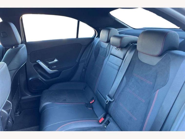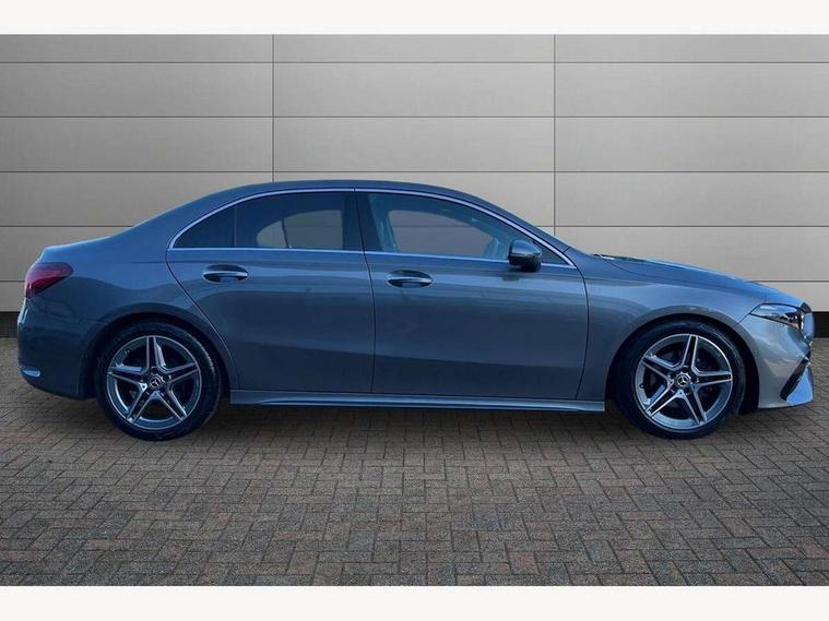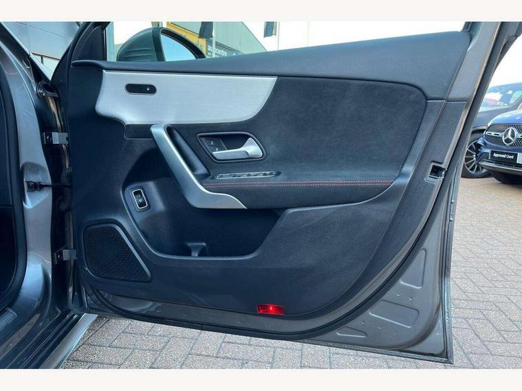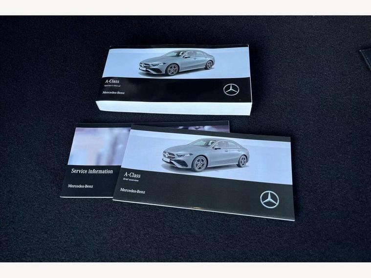 10.25 inch touchscreen central media display, 10.25" Digital instrument cluster display screen, Attention assist, Brake pad wear indicator warning light, Car wash mode, Cruise control + speed limiter, Direct steering, Direction indicators with lane change function, Dual bluetooth interfaces, DYNAMIC SELECT with a choice of driving modes (ECO, Comfort, Sport and Individual), ECO start/stop function, Engine start/stop button, Fluid level warning indicator for fuel, oil, coolant and washer fluid, Hard-disk navigation, Hey Mercedes Voice activation, Lamp failure indicator, Lane keeping system, Mercedes me connect including emergency call system, accident recovery, breakdown and maintenance management, Mercedes me remote services, Outside temperature gauge, Owners manual in English, Pre-installation of private car share, Preinstallation for Mercedes Benz link, Remote boot closing, Service indicator (ASSYST), Smartphone integration with Apple CarPlay and Android auto, Speed limit assist, Speed sensitive power steering, Trip computer in multifunction display with current consumption indicator, Wireless charging, Lowered comfort suspension, DAB Digital radio, MBUX multimedia system, Mercedes Benz sound system (100 W) with 6 speakers, 4 Electric Front and Rear windows, Adaptive brake lights, AMG body styling - AMG front apron with front splitter and AMG rear apron and visible exhaust tailpipe trim elements, Body colour bumpers, Body colour door handles with chrome inserts, Body colour side skirt, Body coloured door mirrors, Chrome beltline strips, Diamond radiator grille with pins in fine star pattern, Electric adjustable and heated door mirrors with integrated LED side indicators, Exhaust system with 2 visible tailpipe trim elements and rear apron, Headlamp assist automatic headlamp activation, Heat insulating dark tinted rear and rear side windows, Heated glass rear windscreen + timer control, LED High Performance headlamps including integral LED daytime running lamps and adaptive highbeam assist, LED tail lamp, Privacy glass, Radio aerial, Rain sensing windscreen wipers with two sensitivity settings, Rear boot, Rear fog lights, Rear side wing doors, Third brake light featuring LED technology, Window line trim strip in chrome, 3 seat bench in 2nd row, 3 Spoke flat bottom leather multi function steering wheel with perforated leather in grip area, 4 way lumbar support, 40:20:40 split folding rear seats, Air conditioning - One zone THERMATIC automatic climate control with automatically controlled air distribution, Automatic child seat recognition sensor, Black air vents with surround in silver chrome, Black roof lining, Brushed stainless steel sports pedals with rubber studs, Floor mats with AMG lettering, Front centre armrest with stowage, Front door sills with Mercedes Benz lettering, Front seat backs luggage nets, Front sports seats with adjustable head restraints, Galvanished gear shift paddles on steering wheel, Heated front seats, Height/reach adjustable steering column, Interior lighting - 64 colour Ambient lighting, Interior mirror with reading lamps in black and frameless, Rear armrest with 2 cupholders, Seat occupancy sensor for front passenger seat, Single front passenger seat, Stowage compartment in centre console with retractable cover, Sunvisors with illuminated vanity mirrors, Twin front cupholders, Keyless go comfort pack - A Class, Light and sight pack - A Class, Mirror package - A Class, Parking pack - A Class, Seat comfort pack - A Class, USB pack plus - A Class, 3 rear 3 point seatbelts, ABS with Brake Assist, Active bonnet, Active brake assist includes forward collision warning system with autonomous braking, Adaptive brake assist with hold function and hill start assist, Bonnet with power domes, Childproof locks manually operated for rear doors and electrically operated for rear power windows, Crash responsive emergency lighting, Driver and passenger head and side airbags, Drivers knee airbag, Dual stage driver/passenger airbags, Electronic parking brake, ESP curve dynamic assist, ESP with ASR, Front and rear seatbelt reminder, ISOFIX and top tether child seat fixing points in two outer rear seats, Tyre pressure monitoring system, Warning triangle and first aid kit, Window airbags, Alarm system/interior protection/immobiliser, Guard 360 degree vehicle protection, Remote central locking and crash sensor with emergency opening function, Black seatbelts, Light longitudinal grain aluminium trim, 18" AMG 5 twin spoke light alloy wheels, aerodynamically optimised, painted in termolite grey with high sheen finish, Summer tyres, Tirefit sealant kit,