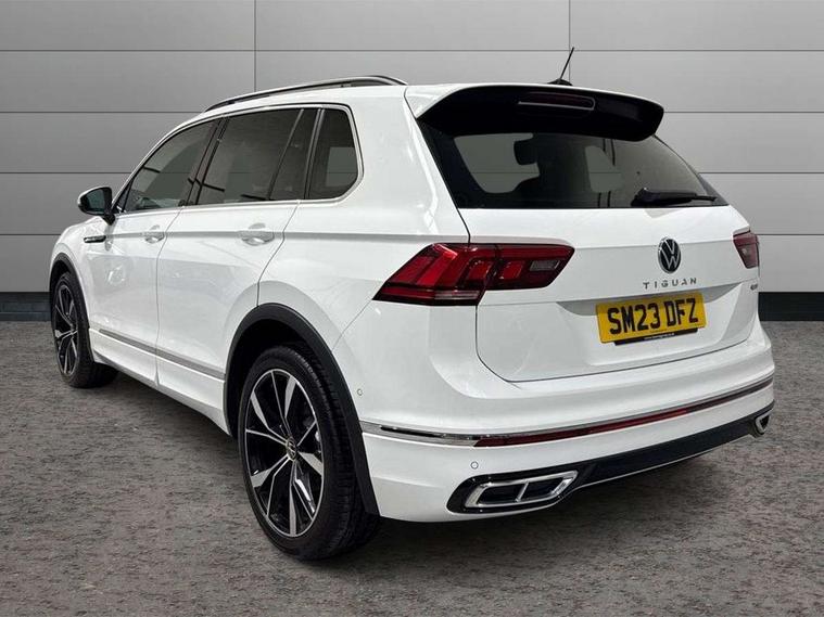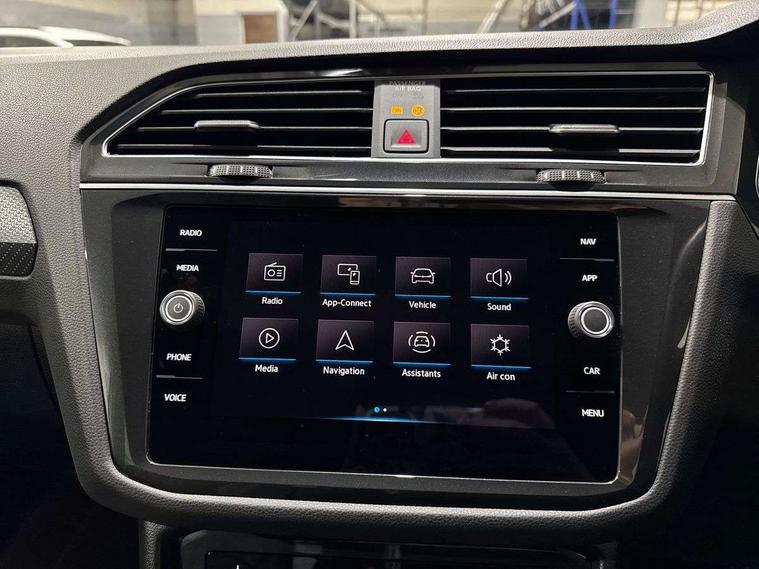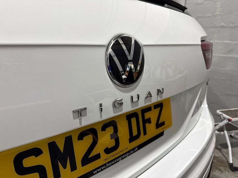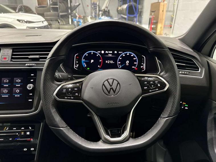 Adaptive cruise control ACC stop and go including speed limiter, App-Connect incl. App-Connect Wireless for Apple CarPlay and Android Auto, Bluetooth phone integration system, Distance control assist, Driver alert system, Driver profile selection, Dynamic road sign display, eCall emergency call system, Electromechanical speed sensitive power steering, Engine start/stop button, Lane keeping system Lane Assist, Lights on warning, Multifunction front facing camera, Outside temperature display, Premium multifunction display with multi colour display, Remote control boot opening, Rev counter, Revision / skills operating concept travel assistant, Service interval indicator, Speed limit display, Start/stop system with regenerative braking, Trip computer, Warning sound and light for doors and tailgate open, All wheel drive - 4Motion, Battery regeneration during braking, Diesel particulate filter, Misfuel prevention device for diesel engine, Selective Catalytic Reduction, XDS electronic differential lock for improved traction and handling, 4 X 20 watt output, 8 Speakers, Diversity antenna for FM reception, Radio, SD card slot, Simultaneous pairing of 2 compatible mobile devices, SMS functionality - read, compose and send SMS messages using touch-screen display, Title and cover art display, USB C ports, Auto dimming interior rear view mirror, Automatic headlight control system, Body colour door handles, Chrome moldings on the side windows, Coming/leaving home lighting function, Dynamic headlight range control, Front and rear electric windows, Heated rear window, High level 3rd brake light, Laminated safety glass windshield, heat and sound insulating, LED headlamps with LED separate daytime running light and dynamic cornering light, LED rear combination lamps, LED rear number plate lights, License plate carrier in front and rear, Poor weather light and cornering light, R Line body kit, R Line side sills, Rain sensor windscreen wipers, Rear exhaust tailpipe, Rear fog lamp, Rear side wing doors, Rear spoiler in R style, Rear windscreen washer and wiper with interval delay, Side and rear windows in heat insulating glass, Trailer Stability Programme, Unique R Line badging, Windscreen wipers/ intermittent wipe + 4 position delay, 12V outlet in center console rear and in luggage compartment, 12V outlet in front and tray, 2 cup holders in front, 2 LED front reading lights, 2 LED rear reading lights, 3 bench rear seats in 2nd row, 3 rear headrests, 4 load lashing points, 40:20:40 split folding rear seats, Air Care Climatronic 3 zone automatic climate control with enhanced air filter and controls in the rear, Backrest release for left front seat, Black headlining, Brushed stainless steel pedals and footrest, Carpet mats in front and rear with decorative stitching in Gray, Climate control unit rear with touch function, Door and side trim panel in foam film, insert in leatherette, Front centre armrest, Front footwell illumination, Front seats head restraints (x-adjustment), Height adjustable front seats, Height/reach adjust steering wheel, Instrument lighting white adjustable panel illumination, Interior light with delay, Isofix Preparation 2 Rear child seats, Leather gear knob, Lockable cooled glovebox, Luggage compartment lighting, Luggage net, Rear bench seat asymetrically split folding, longitudinally movable and folding with load-through hatch and center armrest, Remote unlocking for rear seat backrest, Removable luggage cover, Removable rear headrests, Safety optimised front head restraints, Single front passenger seat, Sliding/reclining rear seats, Standard rear seat release, Storage compartment in driver's door, Storage compartment in passenger's door, Storage compartment in rear doors, Storage compartments in luggage area left and right, Storage tray on dashboard, Sun visors with illuminated vanity mirrors, Top front comfort seats, Variable boot floor, height adjustable and removable, Driver assistance pack plus - Tiguan DSG, 3 point seat belt for centre rear seats, 3 point seat belts with seat belt pretensioners for the outer rear seats, Active bonnet, Curtain airbags for front and rear passengers, Driver/Front Passenger airbags, Drivers knee airbag, Electronic parking brake with auto hold, Electronic Stability Control with driver steering recommendation, ABS, ASR, EDL, EDTC and trailer stabilization, Front assist with autonomous emergency braking (for Adaptive Cruise Control ACC up to 130 mph), Front disc brakes, Front passenger airbag deactivation, Front side airbags, Height adjustable front 3 point seatbelts + pretensioners, Hill hold control, Manual child proof rear door locks, Pedestrian monitoring system, Power assisted brakes, Proactive passenger protection system in combination with front assist, Rear disc brakes, Rigid safety cell with front and rear crumple zones, Two tone horn, Warning sound and light for front seat belts if unfastened, Anti theft alarm system with interior monitoring, backup horn and towing protection, Anti theft wheel bolts, Electronic engine immobiliser, Tool kit,