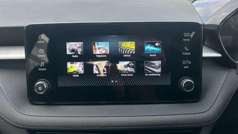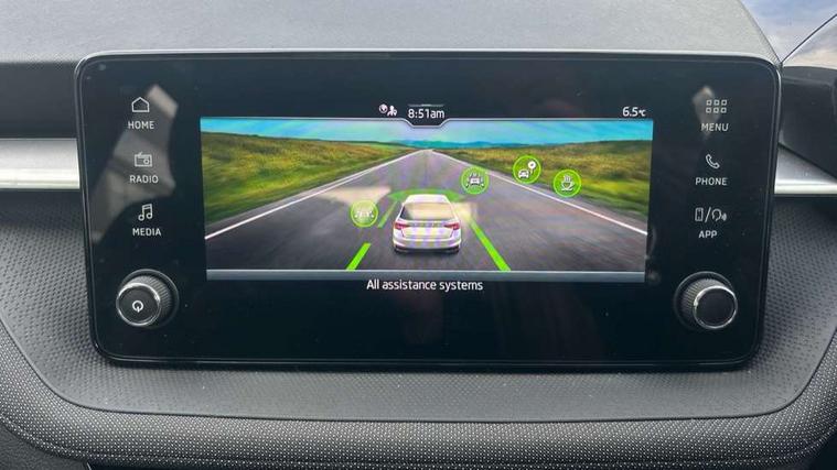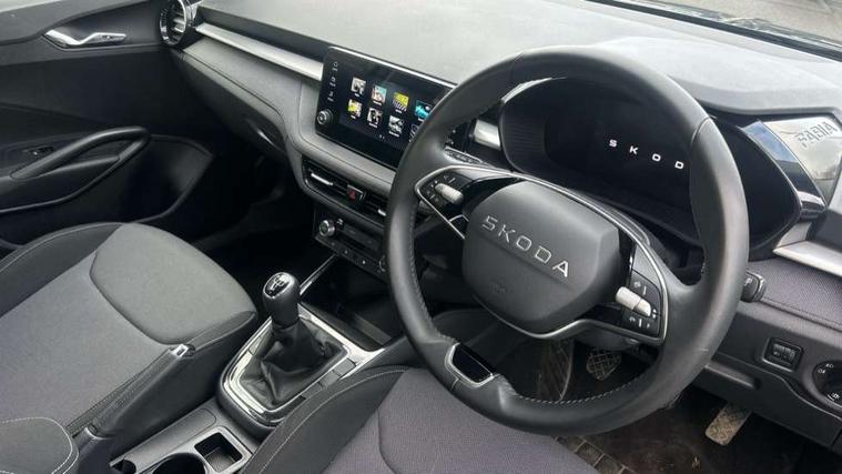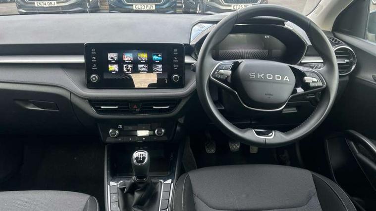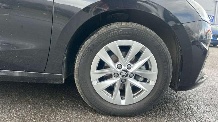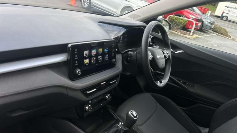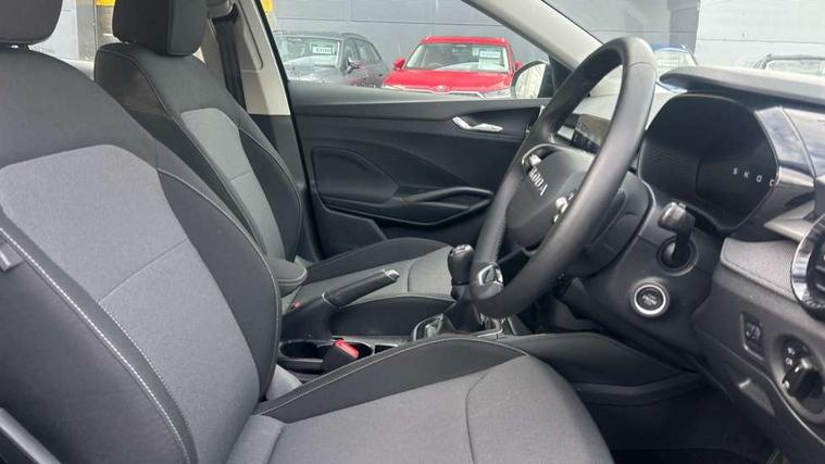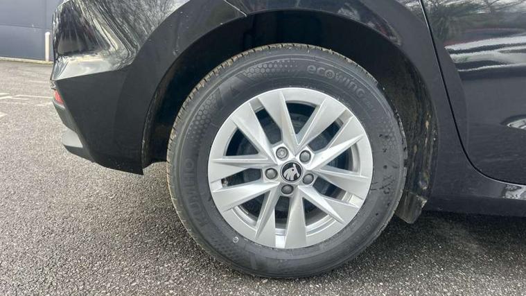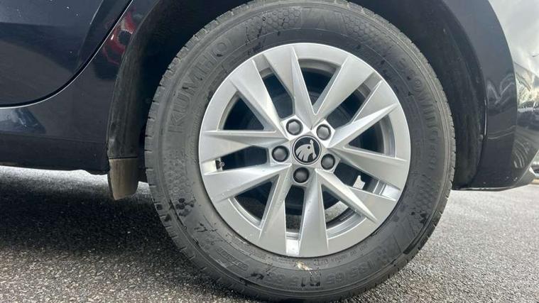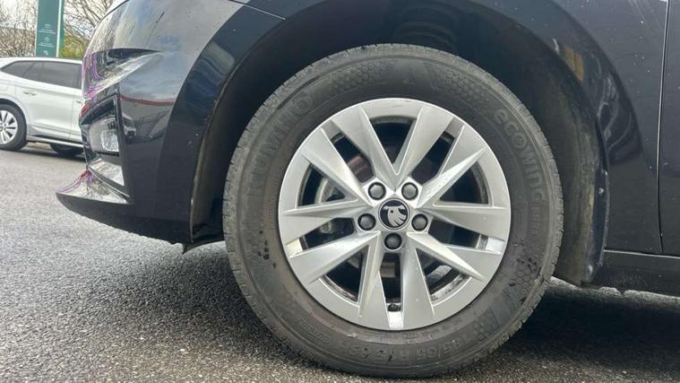 8" Digital instrument display, Advanced driver attention and drowsiness monitor, Bluetooth connection, Electromechanical power steering, Exterior temperature gauge, Service interval indicator, Traffic sign recognition, Wireless SmartLink for Apple CarPlay and Android Auto, 6 Speakers (4 in front and 2 in rear), 8.25" Skoda infotainment touchscreen display, Auxiliary socket for external MP3 player, DAB digital radio reception, Auto dimming rear view mirror, Body colour door mirrors, Body coloured bumpers, Door mirror integrated indicators, Front and rear electric windows, Front window wiper intermittent control, Headlight range control - Automatic, Ice scraper in fuel cap, LED 3rd brake light, LED daytime running lights with coming and leaving home feature, LED rear lights, Rear LED fog light, Rear side wing doors, Rear window wiper with washing nozzles, Roof mounted spoiler, SKODA tailgate lettering in chrome, Unique dark chrome design logo on alloy wheels, 2 reading lights in front and 2 reading lights in rear, 3 rear headrests, Backrest split and folding, Central console with removable cup holder and storage box, Chrome handbrake release button, Dual zone air conditioning with climatronic electronic control, Fabric upholstery, Front centre armrest, Gearshift knob/handle in leather, Grain satin black interior door handles, Hand brake lever handle in leather, Height adjustable front headrests, Height adjustable front seats, Height adjustable steering wheel, ISOFIX and TopTether anchorage points to the outer rear seats, ISOFIX and TopTether on the front passenger seat, Luggage compartment lighting, Manually adjustable lumbar support in front seats, Pollen filter, Rear seat bench unsplit, Single front passenger seat, Skoda lettering on steering wheel, Storm grey headlining, Sun visors with mirror and airbag label on passenger side, Textile floor mats, Ticket holder, Umbrella in drivers door, 3-point height adjustable front seats belts with pretensioner and force limiter, Automatic warning lights in case of crash, Driver and passengers airbag with switch off function, e-Call+, ESC including ABS, MSR, ASR, EDS, HBA and XDS, Front and rear seat belt warning, FRONT ASSIST (AEB City and AEB Inter Urban), Front side airbags, Head airbags, One tone horn, Pedestrian protection, Three rear 3-points safety seat belts with pretensioner and force limiter including stop function for outer rear seat belts, Tyre pressure monitoring system, Anti-theft alarm system including immobiliser, interior monitoring, backup horn, and towing protection, Central locking with radio remote control, interior controls, SAFE function and 2 foldable keys, Black painted air vents, Grain satin black central console cover, Metallic grey upper decorative trim, Satin black door and side trim panel in front, Textile Kota grey lower decorative inserts, Anti-theft wheel bolts protection, Super-low rolling resistance tyres,