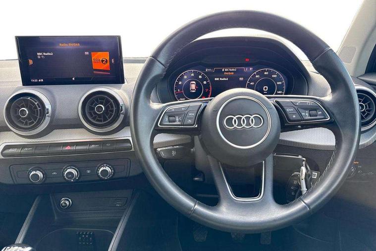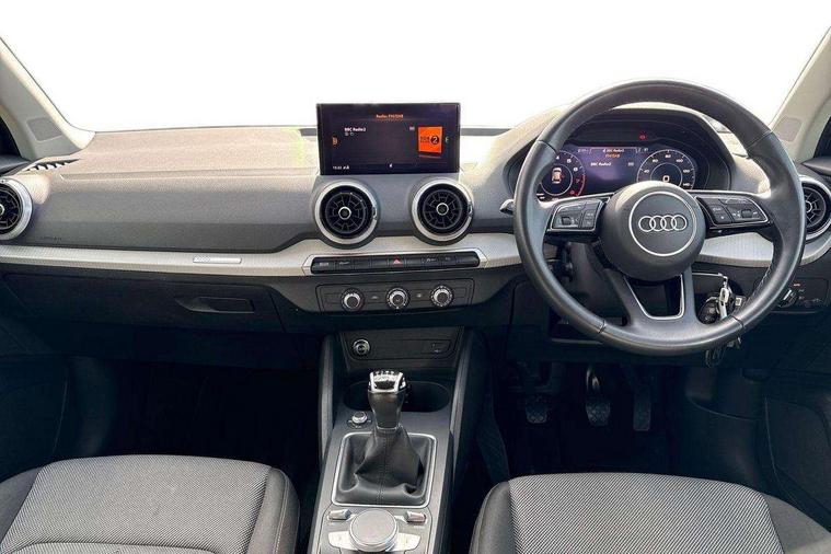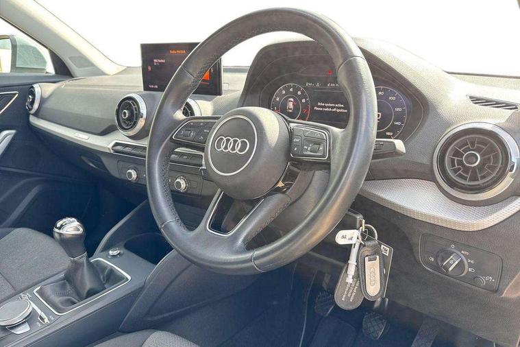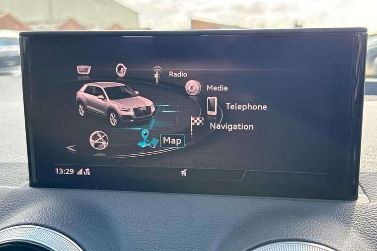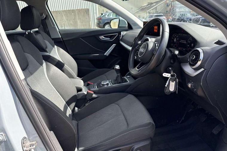 Audi drive select, Audi smartphone interface, Automatic start/stop system with recuperation, Bluetooth interface includes bluetooth audio streaming, Cruise control, MMI - Multi Media Interface control system, MMI SD card integrated nav with 3D map display, dynamic route guidance with TMC, MMI search, natural voice recognition and myAudi special destinations, Power operated tailgate, Progressive steering, Service interval indicator, Dynamic suspension, 2 x SDXC card reader, Audi music interface - apple iPod, apple iPhone, USB storage media, compatible MP3 players, 2 x USB charging points and 1 x Aux-in, CD Drive, DAB digital radio and AM/FM radio, MMI radio plus with 7" colour MMI screen and MMI controller, Air inlet in manhattan grey metallic, Black window trims, Body colour door mirrors, Chrome exhaust tailpipe, Electrically adjustable and heated door mirrors with integrated LED side indicators, Front and rear electric windows, Front underbody guard and rear diffuser trim in selenite silver, Front windscreen with grey tinted sunband, Halogen headlights including headlight range adjustment, High gloss black radiator grille, Interior mirror, LED indicator lights, Manual folding door mirrors, Rain and light sensors, Rear wiper, Side skirts in manhattan grey, Wheel arch trims in manhattan grey, 60/40 split folding rear seat bench, Door sill trims with aluminium inlay, Front centre armrest, Front headrests, Front sports seats, Front/rear floor mats, Height/reach adjust steering wheel, ISOFIX child seat mounting for front passenger with airbag deactivation and outer rear seat including top tether attachment point for outer rear seats, Manual seat adjustment including seat height adjustment for front seats, Storage compartments - Glovebox, cupholder compartment in centre console, storage compartment in rear centre console, front and rear door pockets, Three rear headrests, Titanium grey cloth headlining, Non smoking pack - Q2, 3x3 point rear seatbelts, 6 airbags - Front, curtain and front side airbags, Electromechanical parking brake, Electronic stabilisation control including ABS, ASR and EDL, Extended and proactive pedestrian protection, Hill hold assist, Multi collision brake assist, Pre-sense front with pedestrian recognition, Seatbelt monitoring, Tyre pressure warning light, Warning triangle and first aid kit, Anti theft alarm, Anti theft wheel bolts, Central locking system with remote control key, Electronically operated child locks, Aluminium interior element,