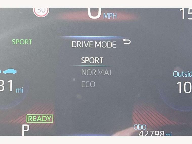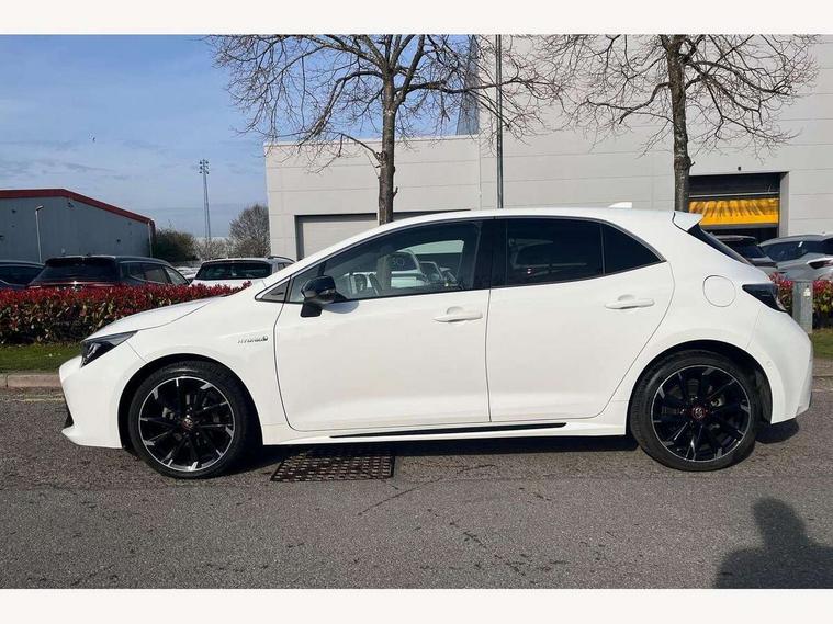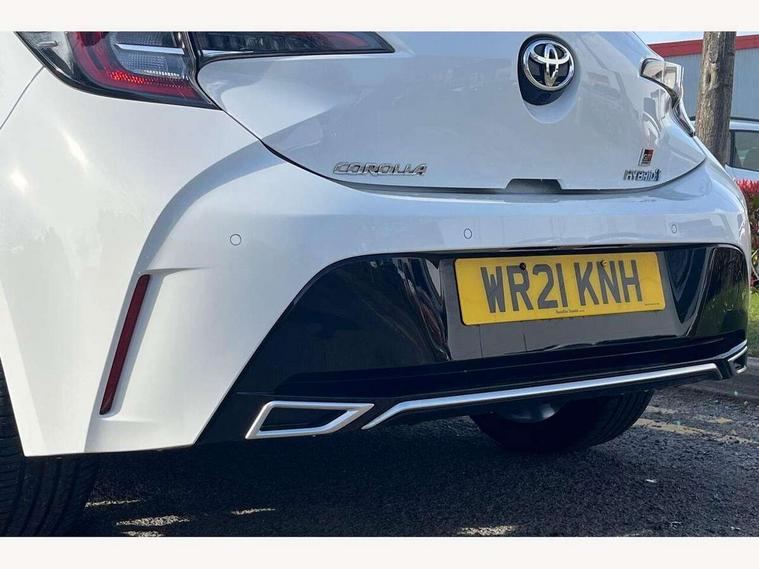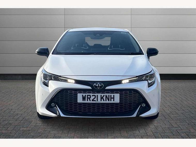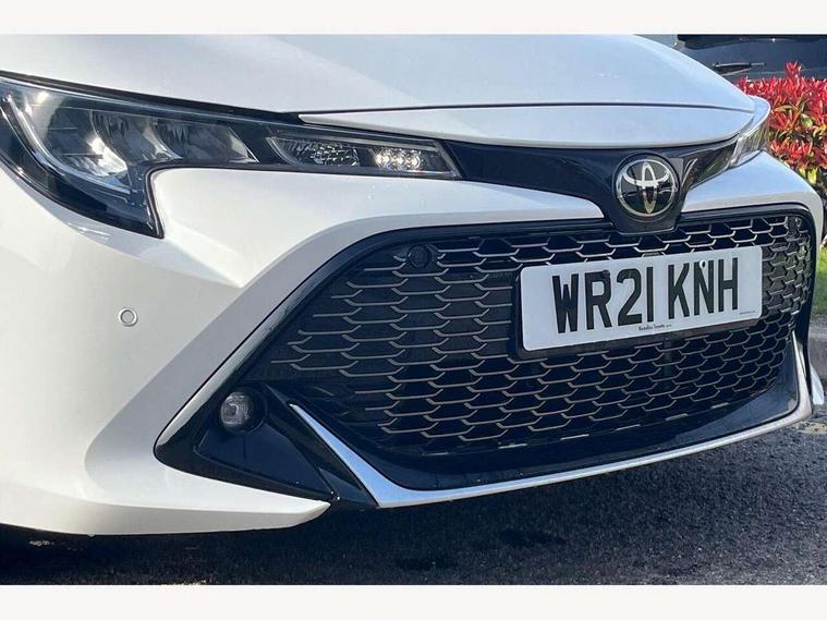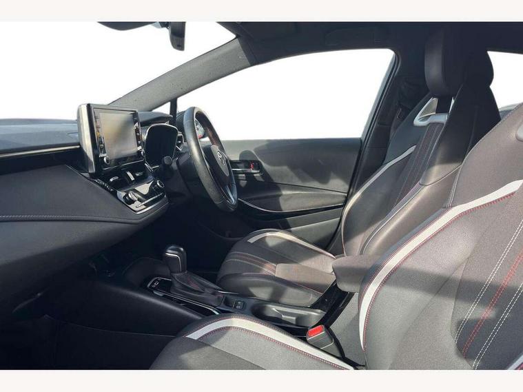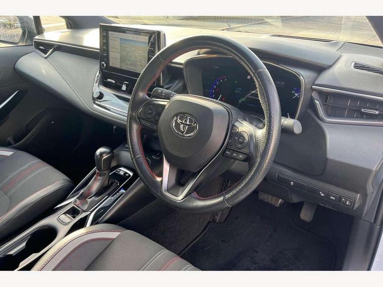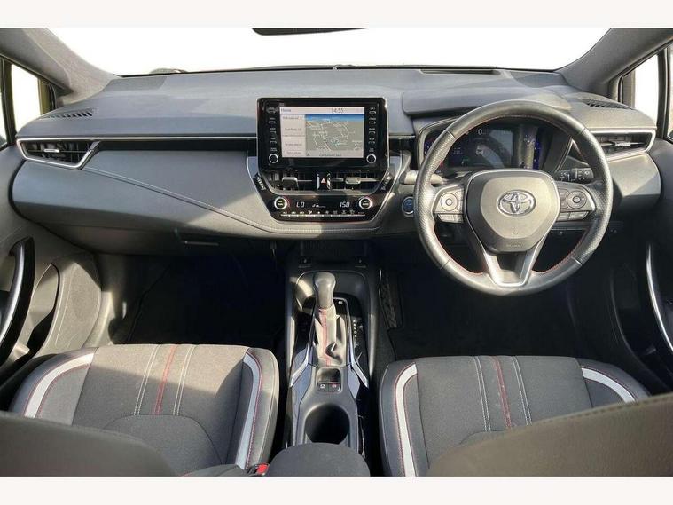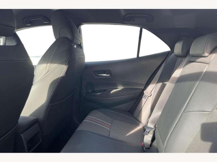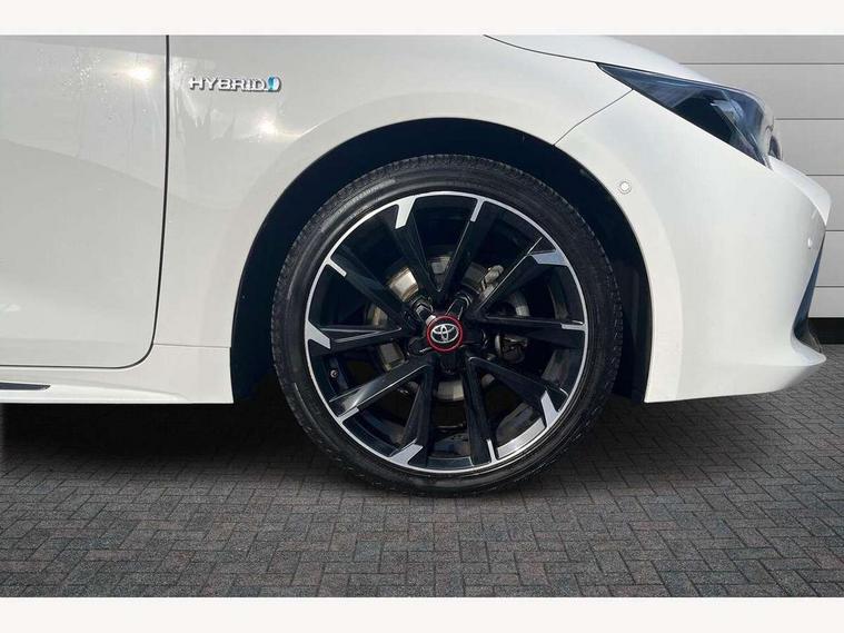7" Multi information display screen, Bluetooth telephone connectivity, Connected car functionality upgrade, tracker, remote status and e-care, E-call, Electrically assisted power steering, EV drive indicator, Head up Display, Intelligent park assist, Lane Departure Alert (LDA) switch on steering wheel, Memory on adjustable speed limiter, Push button start, Reversing camera, Smartphone integration with Apple CarPlay and Android auto, Gasoline particulate filter, Vehicle Stability Control (VSC), 6 speakers, 8" Touchscreen with MM19 Multimedia system and voice recognition, AM/FM radio, DAB Digital radio, Toyota touch 2 with go navigation system, USB and Aux in connectors + 12V front outlet, Anti-jam protection on power windows, Auto dimming inside rear view mirror, Auto up and down function on all power windows, Automatic folding mirrors, Automatic headlights with high beam assist, Black toyota logo in front, Black window frames, Body colour rear spoiler, Body coloured bumpers, Body coloured door mirrors, Body coloured outside door handles, Follow me home headlights, LED daytime running lights, LED front fog lights, LED High mounted stop light, LED multi-reflector headlights with manual headlight levelling, LED rear combi lights with LED lightguide, Piano black surround on lower front grille with dark chrome mesh effect, Power adjustable heated door mirrors, Power front windows, Power rear windows, Rain sensing wipers, Rear bumper with satin chrome plated inserts, Rear privacy glass, Rear window defogger, Rear window wiper, Reverse tilting door mirrors, Shark fin antenna, Time adjustment on intermittent wiper, Turning signal integrated indicators in door mirrors, Unique lower skirt, Unique side rocker with black insert, UV-filter on driver and passenger windows, 3 rear headrests, 3 spoke leather steering wheel + gear knob, 60/40 split folding rear seat, Adjustable speed limiter switch on steering wheel, Alcantara/partial leather upholstery, Audio, multimedia and telephone switches on steering wheel, Boot light, Centre room light, Clean air filter, Driver and front passenger personal light, Driver and passenger assist grip, Driver and passenger seatback pockets, Driver and passenger sun visor with mirror and light, Dual zone automatic air conditioning with ECO mode switch, Dynamic rador cruise control (with RSA) switch on steering wheel, Fabric armrests, Front and rear cup and bottle holders, Front door pockets, Front head restraints, Heated driver and front passenger seats, Illuminated entry system in room lamp, ISOFIX seat fixing (2 fixings on rear outer seats), Leather gear shift with satin chrome on gear shift console, Manual height adjustable for driver and front passenger seat, Parcel shelf, Pollen filter, Power adjustable lumbar support on driver seat, Power window switches with satin chrome inserts, Rear armrest with 2 cupholders, Rear passenger coat hooks (2), Satin chrome inside door handles, Shopping bag hooks in luggage compartment, Sliding armrest on centre console box, Slow opening glovebox with lights, Tilt/telescopic steering column, Voice recognition switch on steering wheel, WIL - Whiplash Injury Lessening seats, Parking pack - Corolla, Toyota safety sense 2 pack - Corolla, 3x3 point rear seatbelts, Adjustable driver and front passenger seat belt extender to top anchor point, Anti lock braking system + Electronic brake force distribution, Brake assist function, Downhill Assist Control (DAC), Electronic parking brake, Emergency brake light signal (EBS), Front passenger airbag on/off switch, Front seatbelt reminder, HAC-Hill-start Assist Control, Rear seat belt reminder, Seatbelt pretensioners and force limiters, Supplemental restraint system (SRS) 7 airbags - dual driver, dual side curtain, side impact and driver knee airbags, Traction control, Tyre pressure warning system, Acoustic vehicle alert system (AVAS), Alarm with motion sensor and immobilizer, Remote central locking + deadlocks, Satin chrome dash trim, Soft touch texture on uppder dashboard, Unique wheel finish with red wheel cap,