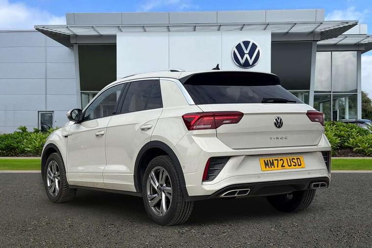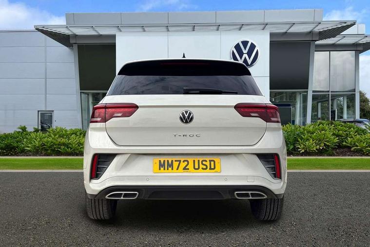 10.25" Digital cockpit pro, Bluetooth mobile phone interface, Driver alert system with fatigue detection, Driver tips and journey analysis, Emergency call service, Lane keeping system Lane Assist, Modified key software - reduce switch off time for key status change to Long no motion, Online services, Park assist including front and rear parking sensors, Service interval indicator, Tailgate/trunk lid release from outside, Think blue trainer driver tips and journey analysis, Warning sound and light for front seatbelts unfastened, Wireless app connect, Battery regeneration during braking, Start/stop function with battery regeneration, Diversity antenna for FM reception, Front and rear 6 speakers, Music playback - MP3, WMA and AAC files, Premium USB cable in choice of either Apple or Android smartphone compatibility, SD card slot, Simultaneous pairing of 2 compatible mobile devices, Title and cover art display, We Connect and We Connect Plus functionality, 3rd brake light, Auto dimming interior rear view mirror, Automatic hazard lights activation under emergency braking, Automatic headlight control with LED separate daytime running lights with coming/leaving home function, Extended roof spoiler, Exterior mirrors aspherical on driver side, convex on front passenger side, External USB type C socket and charging sockets, Front windscreen wiper with intermittent wipe and 4 position delay, Heated rear window, LED Plus headlamps, LED rear combination lamps, LED rear number plate lights, LED tail lamp rear comination lamps, Power windows with comfort operation and circuit breaker, R-Line design body coloured bumpers, Rain sensor, Rear exhaust tailpipe, Rear fog light on one side and reversing lights on both sides, Rear side wing doors, Rear wash/wipe with intermittent wipe setting, Remote electrically foldable door mirrors, puddle lights and reverse activated passenger's door mirror, 12V power socket in centre console, 3 rear head restraints, 3 seat bench in 2nd row, 4 load lashing points in luggage compartment, Air care climatronic air conditoning system with active combination filter and 2-zone temperature control, Black roof lining, Chrome plated radiator grille inserts, air vent surrounds and light switch surrounds, Door and side trim panel with leatherette insert, Drawer under drivers seat, Front + rear carpet mats, Front centre armrest, Front cupholders x 2, Front footwell illumination, Front reading light, Front scuff plates with R logo, Instrument lighting, white adjustable panel illumination, Interior ambient lighting and surround lighting, Interior light delay, Isofix child seat preparation, Leather gearshift handle, Load-through provision with cup holder when folded down ('Unsplit rear seat bench, split folding backrest, with centre armrest), Luggage compartment lighting, Single front passenger seat, Stainless steel pedals, Storage compartment in left and right luggage area, Storage compartment in rear doors, Storage compartments in driver and front passenger doors, Sunvisors with illuminated vanity mirrors, Variable boot floor, height adjustable and removable, Driver assistance pack without proactive passenger protection - T-Roc, 3 point height adj front seatbelts + pretensioners, 3 point seatbelts in outer rear with ECE label, ABS, Child locks on rear doors, Driver and front passenger airbag with front passenger airbag deactivation, Driver and front passenger safety-optimised head restraints, Drivers seatbelt reminder, Electronic parking brake, Electronic Stability Control (ESC) inc EDL (Electronic Differential Lock) and ASR (Traction Control), Front and rear passengers curtain airbag system including front side airbags, Front assist with city emergency braking and pedestrian monitoring, Front seat side impact airbags, Hill start assist, Predictive pedestrian protection, Rear disc brakes, Single tone horn, Tyre pressure loss indicator, Volkswagen roadside assistance, Alarm with interior protection, Anti-theft alarm system with interior monitoring, backup horn, and towing protection, Remote central locking with SAFELOCK, radio remote control with 2 remote control folding keys, Trims for alloy wheels,