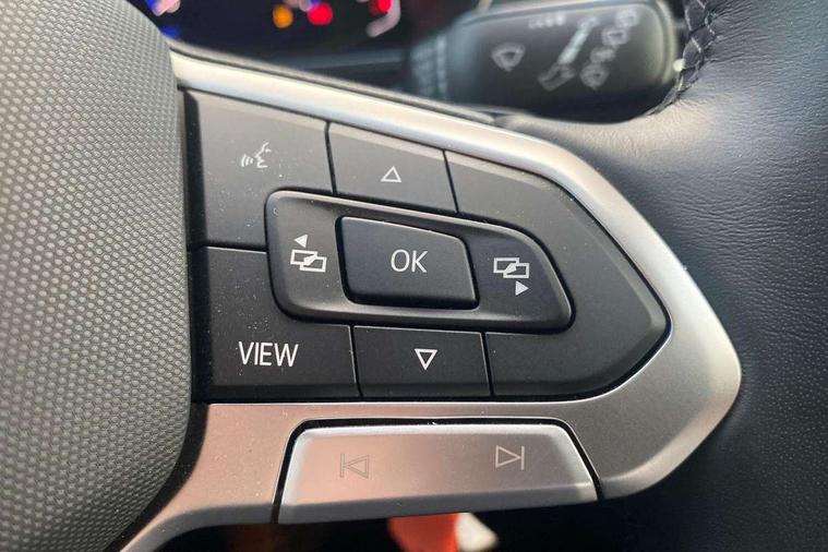 'Lights On' Reminder warning buzzer, 10.25" Digital cockpit pro, Advanced driver attention and drowsiness monitor, Blind spot monitoring, Car information display, Driver profile selection including ECO function, Dynamic road sign display, E-Sim card for online connectivity, eCall emergency call system, Front and rear parking sensors, Front assist, forward collision warning, autonomous emergency braking and speed limiter, Low washer fluid warning light, Multifunction computer with visual gear change recommendation for fuel consumption, Multifunction front facing camera for distance control, Operating permit alteration, Power assisted steering, Predictive adaptive cruise control, Preparation for navigation system with media and internet package, Preparation for We connect and We connect plus, Semi-automated driving assistance, travel assist including lane keeping system Lane Assist and emergency assisst, Speedo, rev counter, electronic odometer, trip, service interval display, exterior temperature and fuel gauge, Warning sound and light for doors and tailgate open, Warning sound and light for front seatbelts unfastened, Wireless Car net app connect with Apple CarPlay, combined functionality of Apple CarPlay/Android Auto and MirrorLink, Wireless charging, Misfuel prevention device, Start-stop system with battery regeneration (recuperation - energy recovery during braking), 2 USB C ports in front, 2 USB charging sockets on the centre console in the rear charging capacity upto 45W, Diversity antenna for FM reception, Music playback - MP3, WMA and AAC files, Radio, Automatic dimming interior rear view mirror, Automatic hazard lights activation under emergency braking, Automatic headlight control with LED separate daytime running light and coming home and leaving home feature, Body colour door handles, Body colour door mirrors, Body coloured bumpers, Dynamic headlight range control with self adjusting whilst driving, Electric folding door mirror, adjustable, heated with front passenger exterior mirror lowering function, Exterior mirrors convex on the left and aspherical on the right, Front and rear electric windows, Front door sill protectors with R-Line logo, Galvanised body, Heat insulating and laminated safety glass windshield, Heat insulating darkened glass in side and rear windows, High Beam Assist, automatic sensing for switching between dipped and main beam, LED rear combination lights, LED third brake light, Lower door sills and door pillars in black, Privacy glass for rear side windows and rear window, Rain sensor, Rear fog light on one side, reversing light on both sides, Rear side wing doors, Rear window aerial, Rear window wiper with intermittent control, Reflectors in all doors, Scuff plates, Tailgate with integrated roof spoiler, 12V Accessory socket in centre console, 2 Front and rear reading lights incorporating LED technology, 3 rear head restraints, 3 seat bench in 2nd row, 60/40 split folding rear seat backrest, Air care climatronic 2 zone air conditioning system, Ambient lighting, Brushed stainless steel pedals, Chrome plated radiator grille inserts, air vent surrounds and light switch surrounds, Cloth upholstery, Comfort front sport seats, Door and side trim panel, Drawer under drivers seat, Driver and front passenger sunvisor with vanity mirror, Dust and pollen filter, Front + rear carpet mats, Front centre armrest with storage compartment, Front footwell illumination, Front seat back storage pockets, Glove compartment door with light, Heated front seats, Heating and fresh air system with 4 stage blower, Height/reach adjust steering wheel, Instrument lighting white adjustable panel illumination, Interior light with switch off delay and dimmer, Isofix anchors for child seats on outer rear seats and front passenger seats, Leather gearshift handle, Leather wrapped multifunction steering wheel, Luggage compartment floor, Luggage compartment lighting, Manual front seats with height adjustment, Padded dashboard, Removable luggage compartment cover, Single front passenger seat, Storage compartment in drivers and front passengers door, Titanium black roof lining, Unsplit sliding rear seat bench, 3 point outer rear seat belts with ECE label, 3 Point seatbelt for centre rear seat, Anti-lock Braking System (ABS) with Hydraulic Brake Assist (HBA), Automatic post collision braking system, Disc brakes in front, Disc brakes in rear, Driver and front passenger safety-optimised head restraints, Drivers and Front Passengers airbags with front passengers airbag deactivation switch, ESC with EDL and ASR (traction control), Extended and predictive pedestrian/cyclist protection, Front and rear passenger curtain airbag system including front side airbags, Height adjustable front 3 point seatbelts + pretensioners, Hill start assist, Pre crash preventive occupant protection, Proactive passenger protection system in combination with front assist, Rear door child safety locks, Rigid safety cell with front and rear crumple zones, Single tone horn, Tyre pressure loss indicator, Volkswagen roadside assistance, Alarm with interior protection, Anti theft alarm system, Electronic engine immobiliser, Remote tailgate unlocking using key fob, Titanium Black Decorative inserts - R Line, Low rolling resistance tyres,