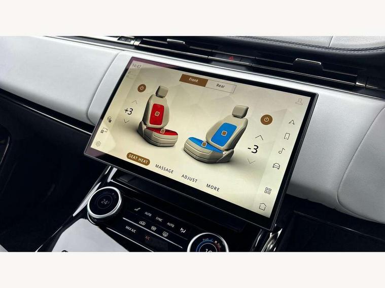 13.1" Touchscreen, 3D 360 degree surround camera with wade sensing, Adaptive cruise control with steering assist, Android Auto, Apple car play, Blind spot assist, Bluetooth connectivity streaming, Driver condition response, Eco mode, Electric power assisted steering (EPAS), Front and rear parking aid, Head up Display, Interactive Driver display instrument cluster, Lane departure warning system, Lane keep assist, Park assist, Push button start, Rear collision monitor, Rear traffic monitor, Remote, Traffic sign recognition with adaptive speed limiter, Trip computer, Wireless device charging with phone signal booster, 8 speed automatic transmission, Adaptive dynamics, Adaptive off-road cruise control, All wheel drive system, Automatic access height, Terrain Response 2, DAB Radio (Digital Audio Broadcasting), Incontrol protect - SOS emergency call with automatic collision detection, optimised assistance call and Incontrol remote app essential, Meridian sound system, Pivi pro connected, USB/aux input socket, Adaptive brake lights, Automatic headlight levelling, Automatic headlights, Centre high mounted stop light, ClearSight interior rear view mirror, Digital LED headlights with signature DRL and image projection, Electric heated/power fold memory door mirrors with approach lights and auto dimming driver side, Electric windows with one touch open/close and anti trap, Flush deployable exterior door handles, Follow me home lighting, Front and rear recovery eyes, Headlight power wash, Heated rear window, Heated washer jets, Heated windscreen, Illuminated metal treadplates with Autobiography script, LED tail lights, Metal load space scuff plates, Rain sensing windscreen wipers, Rear animated directional indicators, Rear fog lights, Rear side wing doors, Rear wash/wipe, Remote window closing, Side repeater indicators in mirror, Sliding panoramic roof with electric sunblind, Trailer stability assist, Winter wiper park position, 22 way heated and ventilated front and power recline rear seats, massage electric memory front seats and front and rear winged headrests, 3 seat bench in 2nd row, 60:40 seats with power recline and loadthrough, Air quality sensor, Automatic air recirculation system, Bright metal foot pedals, Centre console with armrest, Customer configurable single point entry, Driver's footrest, Easy boot loading, Ebony console door armrests and seatbelts, Electric adjustable steering column, Four zone climate control, Front and rear cupholders, Front door storage space, Front map lights, Front seat back map pockets, Front stowage pocket, Front/rear passenger grab handles, Gearshift paddles, Heated steering wheel, Isofix child seat preparation, Loadspace cover, Loadspace floor partition, Loadspace Hook, Loadspace light, Loadspace mounting provisions, Lockable glovebox, Luggage tie-downs in loadspace, Multifunction steering wheel, Pollen filter, Power socket, Premium cabin lighting, Rear centre armrest, Rear ISOFIX, Single front passenger seat, Soft close doors, SV bespoke carpet mats, Three 12V accessory power outlets, Twin blade sunvisors with Illuminated vanity mirrors, Upper secondary glovebox, Online pack with data plan - Range Rover Sport, 3 point seatbelts on all seats, Anti-lock braking system (ABS), Brake pre-fill technology, Configurable autolock, Cornering brake control (CBC), DSC - Dynamic Stability Control, EBD - Electronic brakeforce distribution, Electric parking brake, Electronic traction control, Emergency braking, Front seatbelt pretensioners, Front side airbags, Height adjustable front seatbelts, Hill descent control, Hill launch assist, Illuminated seat belt buckles, Low traction launch, Occupant protection assist, Passenger seat occupant detector with front airbags, Power operated child locks, Roll stability control, Seatbelt warning, TPMS (Tyre pressure monitoring system), Immobiliser, Intrusion sensor, Keyless entry, Locking wheel nuts, Perimetric and volumetric anti theft alarm, Remote locking, Moonlight noble chrome interior finishers,