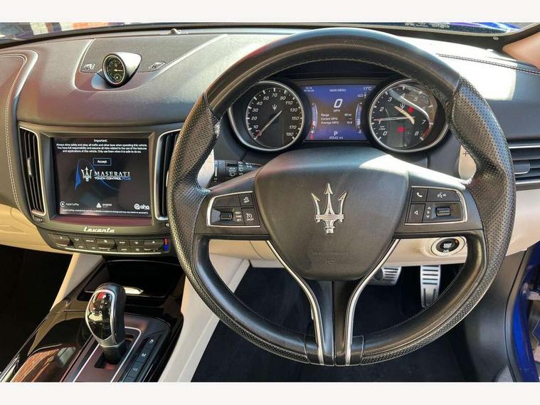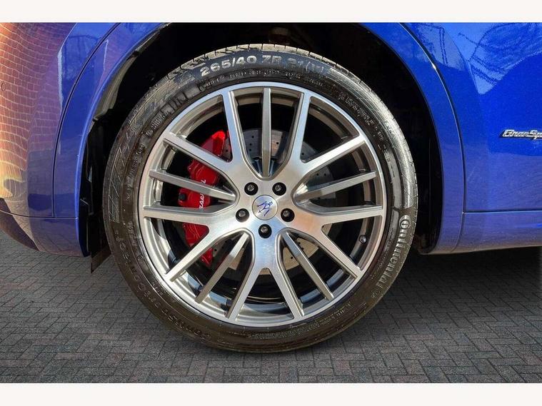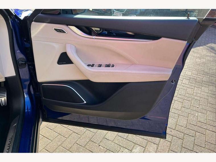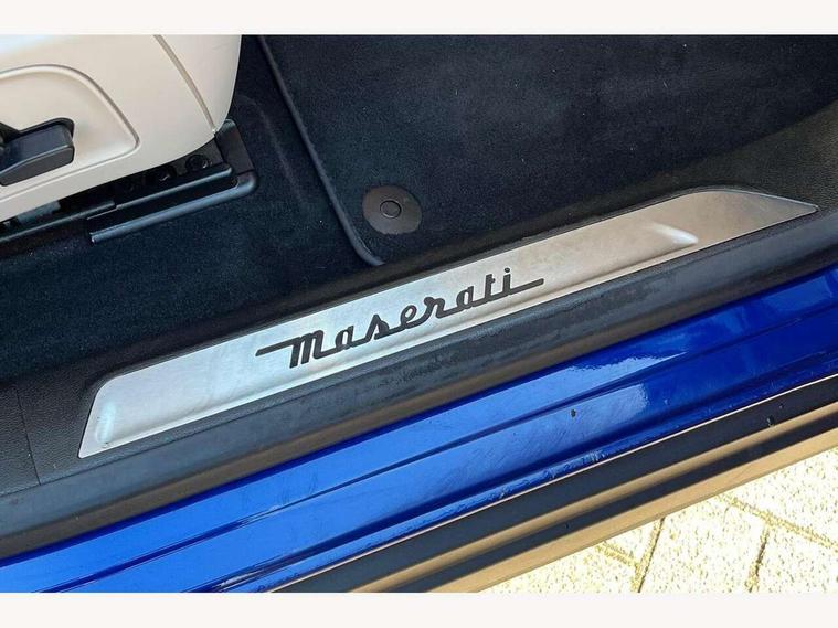 Apple car play/Android Auto, Drive mode selector, Front and rear parking sensors, Instrument cluster in blue, Maserati dash mounted design specific clock, Mist sensor, On board computer, Power tailgate, Service indicator, SIRI smart personal assistant, Speed sensitive variable PAS, Touch screen control unit navigation with DAB radio, CD/DVD, SD card and bluetooth, Limited slip differential, Sport skyhook - variable active damping system, USB/aux input socket, Anti trap windows, Auto dimming door mirrors, Automatic headlamp activation, Body colour lower mouldings, Body coloured bumpers, Chrome line exterior, Chrome ornamental side grilles, Dual chrome plated stainless steel tailpipes, Electrically adjustable and folding door mirrors, Electrochrome rear view mirror, Front and rear electric windows, Heat and noise insulating glass, Heated door mirrors, Heated rear windscreen, LED daytime running lights, LED fog lights, LED rear lights, Rain sensor, 12V socket, 12V socket in luggage compartment, 3 spoke multifunction steering wheel, 4 way electric lumbar support for driver and front passenger, 60/40 split rear bench seat, 8 way electrically adjustable front seats, Air quality sensor, Aluminium gear shift paddles, Brushed stainless steel sports pedals, Cargo net, Driver seat memory function, Driver/pass sunvisor/illuminated courtesy mirror, Footwell lights, Front armrest with illuminated, air conditioned storage, Front headrests, Front/rear courtesy lights, Glovebox, Rear armrest with 2 cupholders, Rear headrests, Soft close doors, Sports seats, Through load system including ski bag, Velour floormats, ABS+EBD+Brake assist, ASR + MSR, Curtain airbags, Driver and passenger side airbags, Drivers knee airbag, Dual stage driver/passenger airbags, Electronic parking brake, Front seatbelt pretensioners + load limiters, Hill descent control, Hill hold control, Maserati stability programme (MSP), Passenger airbag deactivation system, Rear seatbelts with pre-tensioners and load limiters, Tyre pressure monitoring system, Aluminium key fob, Electronic immobiliser, Keyless Start, Navtrak vehicle tracking system, Perimetric and volumetric anti theft alarm, Remote central locking, Two tone dash, door trim, armrest and interior stitching,