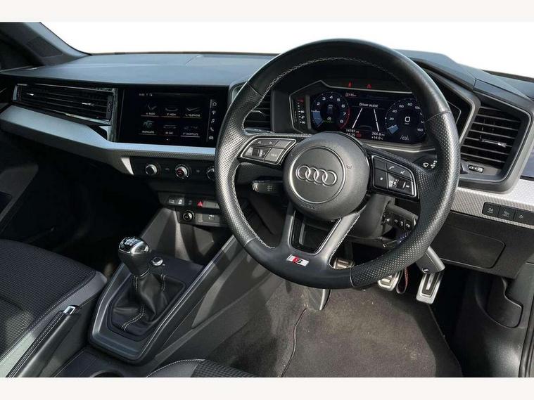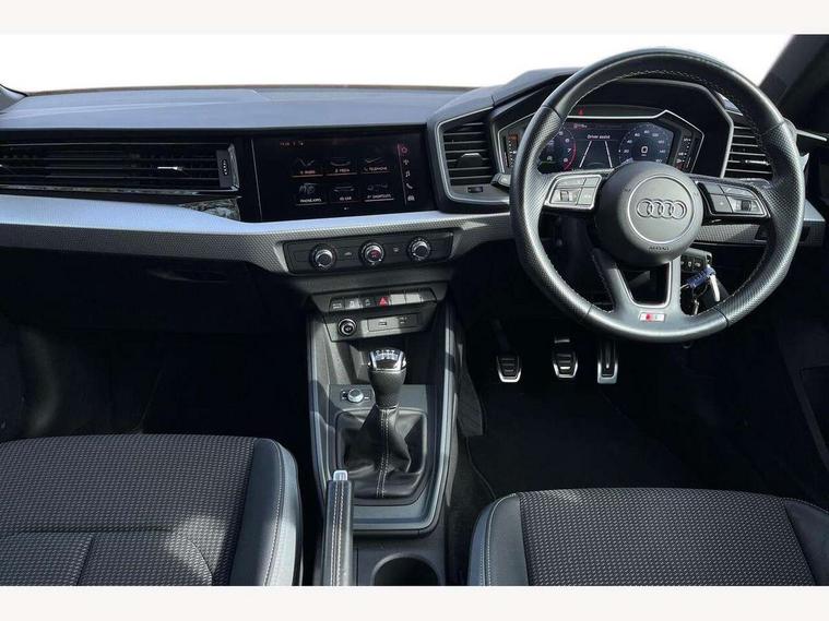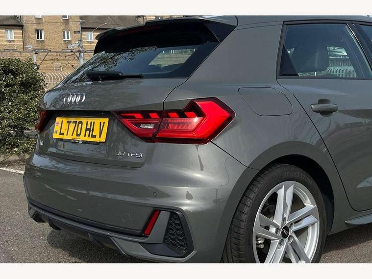 10.25" Digital instrument cluster display classis style instrument dials + speed, odometer, time, outside temperature, telephone menu + fuel level warning, Audi connect safety emergency and service including E-call, Audi drive select - power steering assistance + engine, Audi smartphone interface with connect compatible smartphone via USB directly MMI display + Nav, music, third party apps controlled via MMI controller, Automatic start/stop system, Bluetooth interface, Cruise control, Driver's information system, Electromechanical power steering, Lane departure warning system, Service interval indicator, Speed limiter, Voice control system, Washer fluid level indicator, Sports suspension, 1 x SDXC card reader, 2 x USB type C connection points, DAB Digital radio, MMI radio plus with 8.8" colour MMI display screen and MMI touch, Auto dimming rear view mirror, Body coloured door mirrors, Door sills with aluminium inlays and S Line logo, Electric front and rear windows, Electrically adjustable, heated, folding door mirrors with integrated LED side indicator, Front side air inlets in grained matt black and C frame in titanium black, Heat insulating glass windscreen and side windows, Heated rear windscreen, LED headlights with LED rear lights + dynamic rear indicators + headlight adjustment and high beam, turning light + LED daytime running lights, Radiator grille and rear diffuser in matt titanium black, Radiator protective grille frame in matt aluminium silver, Rain and light sensors, Rear fog lights, Rear wiper, S line badges on front wings, Side front spoiler lips in grained matt black, 12V socket in centre console with two cup holders, 3 rear seats with headrests, 40:60 Split folding rear seat or folded fully, Black cloth headlining, Driver and passenger seat with manual height adjust with forward and backwards adjustment, Front and rear black floor mats with contrast stitching in fine silver, Front head restraints, Height and reach adjustable steering wheel, ISOFIX child seat mounting for front passenger and outer rear seats including top tether attachment point of outer rear seats, Leather gear knob with aluminium trim, Luggage compartment light with front and rear reading lights, Manually adjustable lumbar support in front seats, Stainless steel pedals, LED interior lighting pack - A1, Luggage compartment pack - A1, S line exterior styling pack - A1 Sportback, 3x3 point rear seatbelts, Audi pre-sense front with pedestrain and cyclist recognition, Brake assist function, Driver and front passenger airbag with front side and head airbags, Electronic Stability Control including ABS, EBD, ASR and EDL, Front and rear seatbelt reminder, Front passenger airbag deactivation switch, Hill hold assist, Seatbelt height adjustment for front seats, Seatbelt monitoring, Tyre pressure warning light, Warning triangle and first aid kit, Anti theft alarm, Anti theft wheel bolts and loose wheel warning, Immobiliser, Remote central locking with 2 foldaway keys, Aluminium trim for control switches, air vents and digital instrument cluster, Silver grey inlays polygon structure in diamond paint finish, Structured grey accent areas including air vents, door handle recesses and centre console in quartz paint finish,