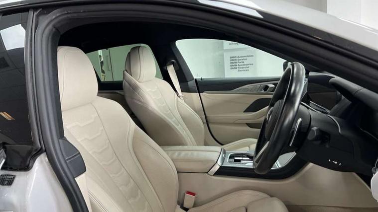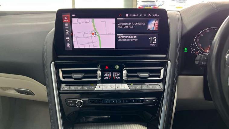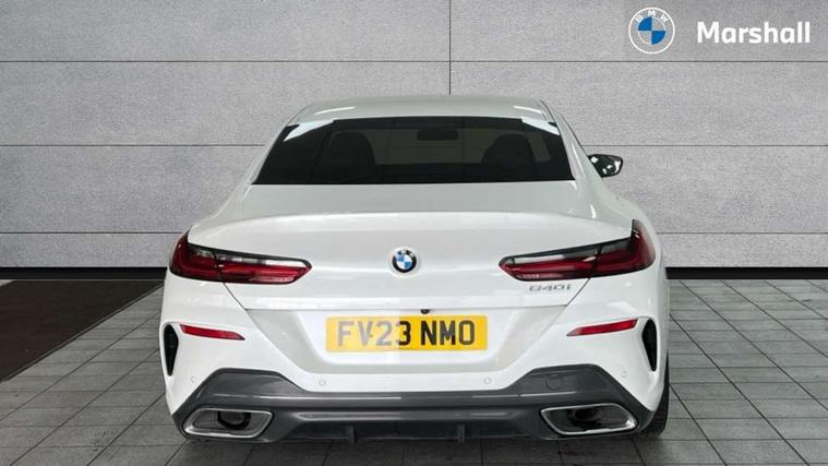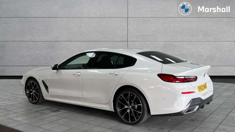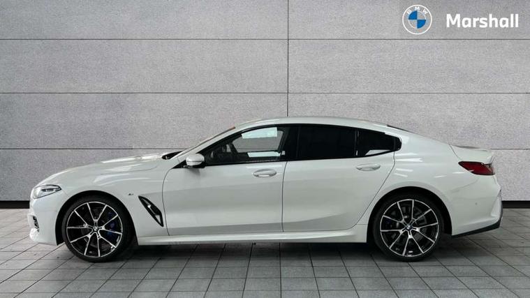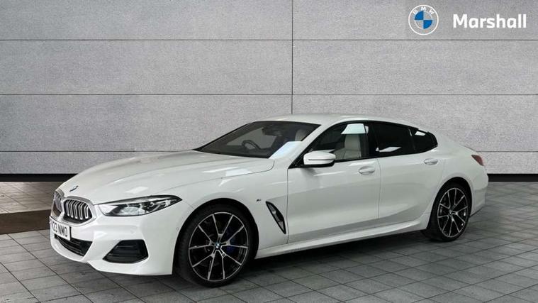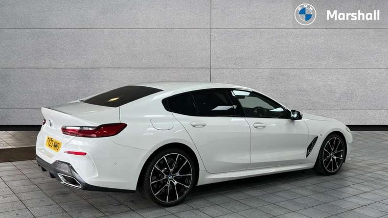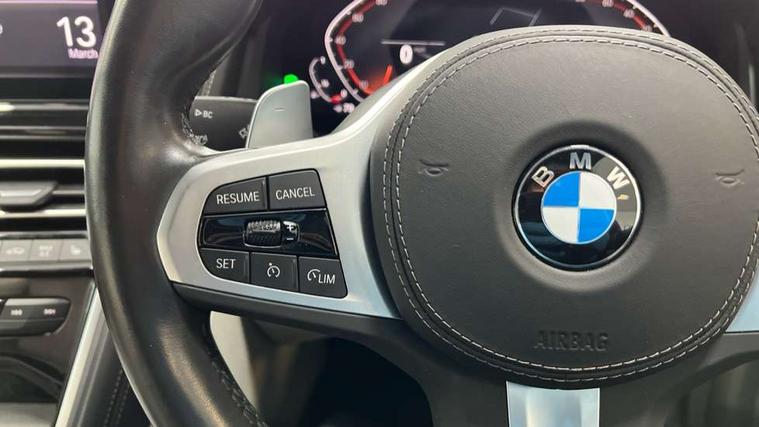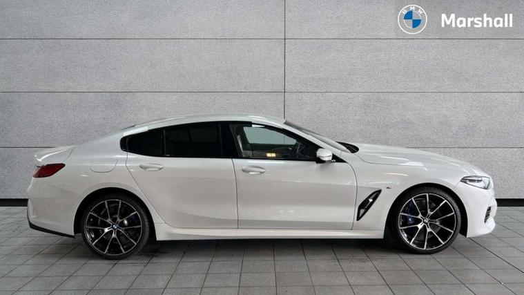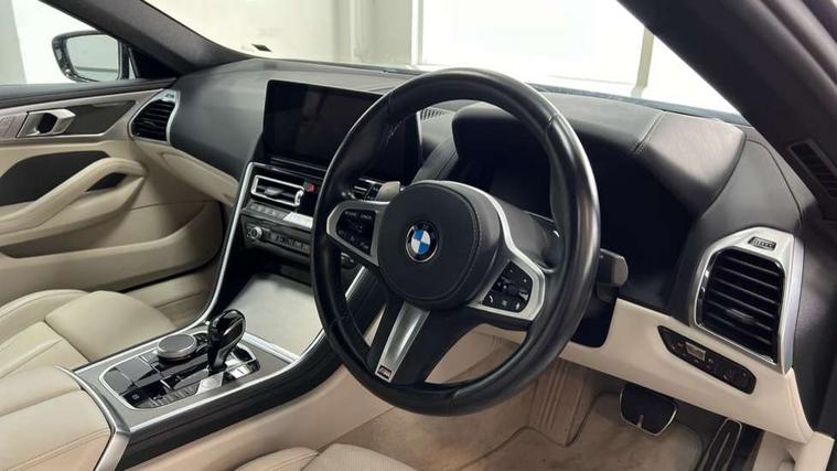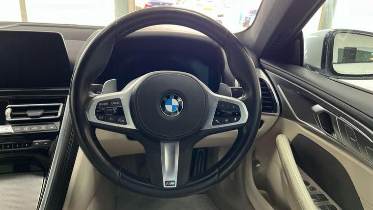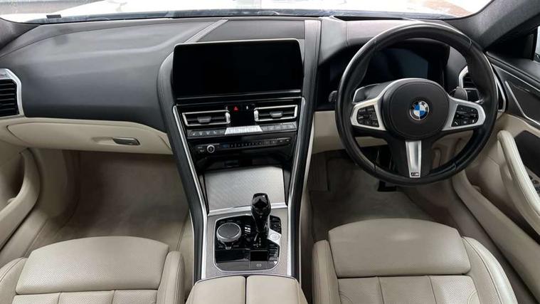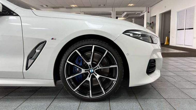 Automatic tailgate operation, remote opening with key, closing by tailgate button or remote control including tailgate in LED technology, Bluetooth hands free facility with USB audio interface, voice control and enhanced bluetooth + Wireless charging, BMW ConnectedDrive online services, BMW legal emergency call, BMW Teleservices, Brake pad wear indicator, Check control system, Condition based service, Drive experience control with Sport, Comfort, Eco Pro and Adaptive modes, Electric bootlid, Head up Display, iDrive controller with shortcut buttons, Instrument and upper door panel in walknappa leather, Integrated owners handbook, Light on warning, Oil sensor for level and grade, On board computer, Outside temperature display, Run flat indicator, Service interval indicator, Servotronic system, Speed limiter, Wi-Fi hotspot, Adaptive M suspension, Double wishbone front axle, Dynamic Damper Control, Eight speed sport automatic transmission, M Sport differential, Petrol Particulate Filter, Sport exhaust system, DAB Digital radio, Favourite buttons, Air breather inlay in pearl chrome, frame in black high gloss, Automatic windscreen wipers and automatic headlight, Carbon core, Climate comfort windscreen, Daytime driving lights front and rear active, Dynamic brake lights, Exterior mirrors - Floating design mirror, electric adjust/heated/folding, aspherical, Follow me home headlight function, Frameless interior mirror, Front and rear bumper system with replaceable deformation elements, Front electric windows, Front ornamental grille with kidney grille bars, Heat protection, sun protection glazing, Heated rear window, glass, Heated windscreen washer jets, High beam assistant, Illuminated door handles, Illuminated radiator grille iconic glow, LED rear lights, M emblem on front side panel in light chrome, Model logo on right tailgate, Radiator grille frame in pearl chrome, Radiator grille struts in aluminium matt, Rain sensor and automatic driving lights control, Rear boot, Rear side wing doors, sDrive designation on left tailgate, Sun protection glass, Thermally insulated windscreen, Third LED technology brake light in rear window, Welcome lights in interior and door handle area, Window frame and mirror base in black high gloss, 2 cup holders in front, 2 rear head restraints, 2 X front 12v power sockets, 3 spoke M sport leather multifunction steering wheel with shift paddle, 4 zone control automatic air conditioning, 5 seats, 50/50 split folding rear seat, Ambient light with dynamic interior light, BMW ID, Front and rear seat heating, Front centre armrest with light, 12V socket and USB and storage compartment, Front door pockets, Front entry lights doors, Front reading lights, Front sun visors with ticket holder and illuminated mirror, Interior lighting - Interior light front centre above interior mirror, luggage compartment light, automatic interior light system soft on/soft off, Lashing eyelets, Lockable glove compartment with light, Microfilter and active carbon filter, Steering column with adjustable height and length and activation via control on the steering column, Through loading function, BMW Live cockpit professional pack - 8 Series, Connected professional pack - 8 Series, Exterior items pack - 8 Series, M sport exterior styling aerodynamics pack - 8 Series, 18" M Sport braking system with blue painted brake calipers, 3x3 point rear seatbelts, ABS/EBD, Active protection, Airbags - Driver and front passenger airbag with seat occupancy detection, knee, side and front passenger seat airbag deactivation, Brake discs, compound structure, Child locks on rear doors, Cornering brake control (CBC), Crash sensor activating central locking release, hazard warning lights, fuel cut off, interior lighting, safety battery terminal clamp and airbags, DSC - Dynamic Stability Control, Dynamic brake control, Dynamic Traction Control - DTC, Electromechanical parking brake with automatic drive away release and auto hold function, Front three point with pyrotechnical belt latch tensioner seat belts, belt force limiter and belt stopper, Head airbags for 1st and 2nd seat row, Hill start assist, Integrated brake system, ISOFIX child seat mounting for the two outer rear seats, Rear three point with pyrotechnical belt latch tensioner seat belts and belt force limiter, Side impact protection, Tyre pressure monitoring system (TPMS), Warning triangle and first aid kit, Alarm system (Thatcham 1) with electronic engine immobiliser, Centre lock switch, Closing system with central locking, Comfort access system, Keyless entry with start/stop button, Locking wheel bolts, Vehicle key with exclusive M designation,
