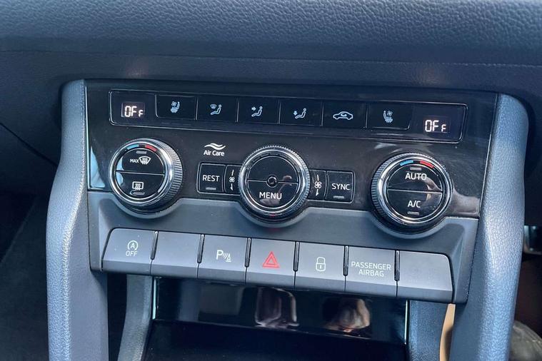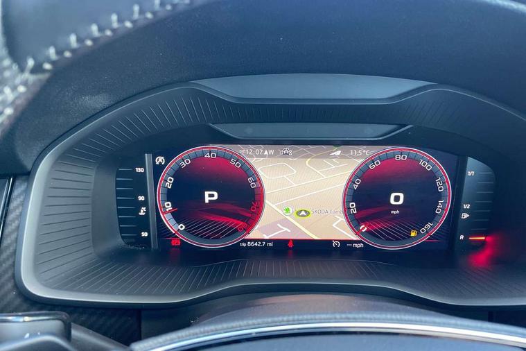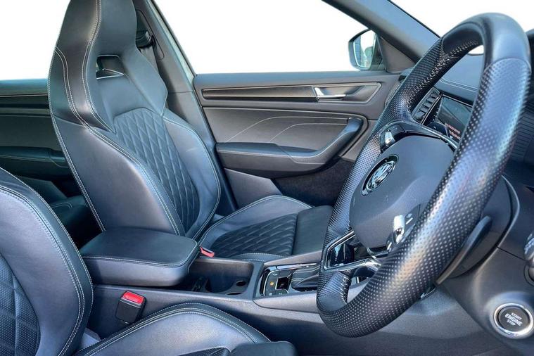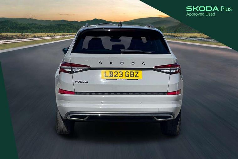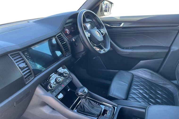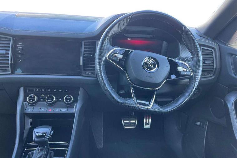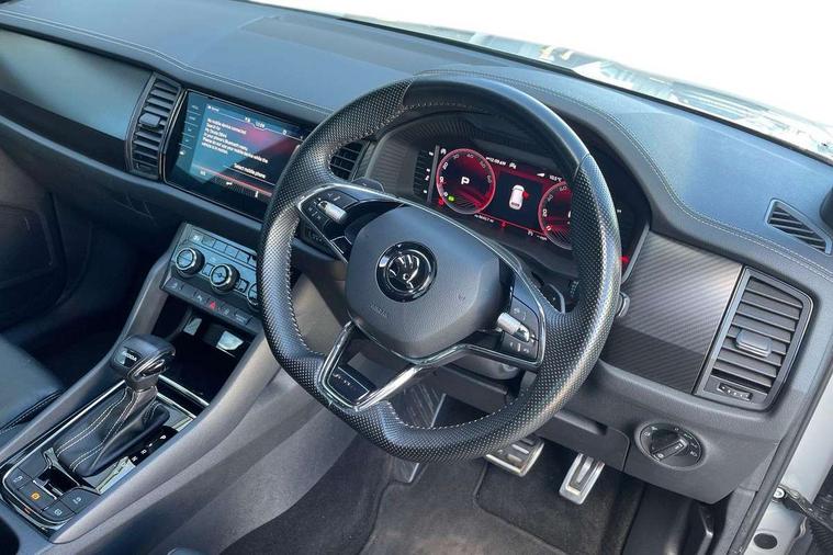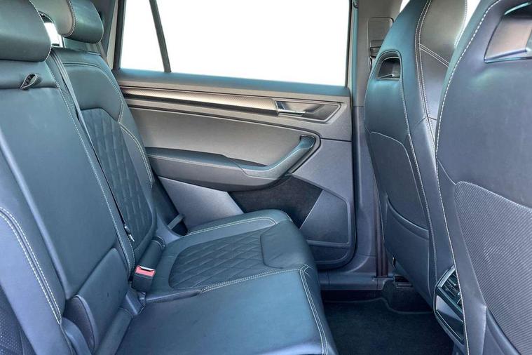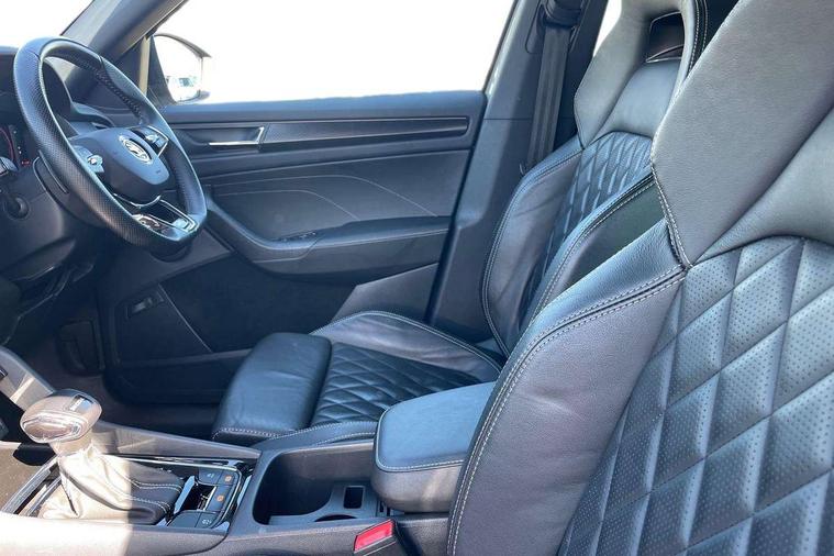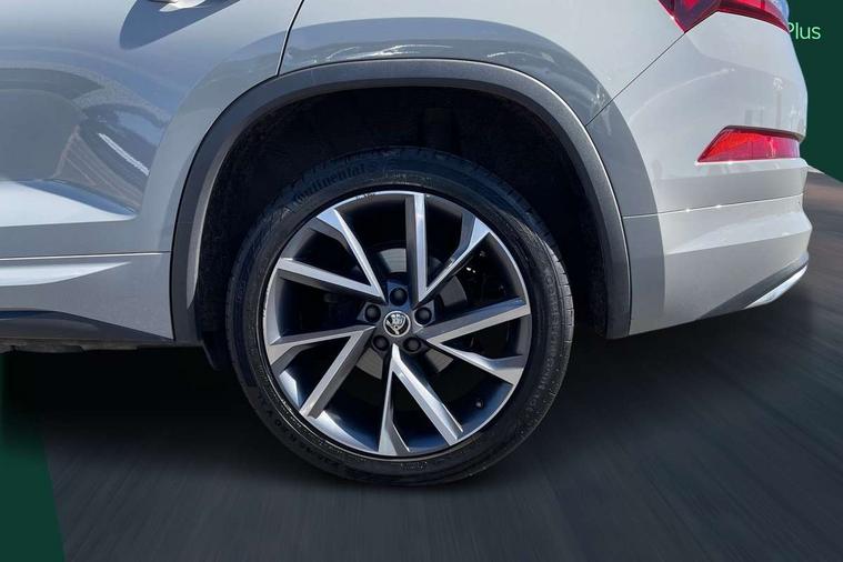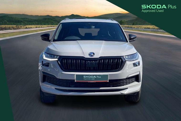 Bluetooth system, Columbus satellite navigation with 9.2" touchscreen, integrated Wi-Fi, web radio, Digital voice enhancement, e call+, ECO Stop/start function, Exterior temperature indicator, Progressive steering, Rear view camera, Smartlink wireless for apple carplay and wired for android auto, Speed limiter, Tailgate unlocking from outside, USB C Port x 2 in front centre console, Virtual Cockpit - 10.25" digital display with additional sports design, Wireless charging, 8 Speakers, DAB Digital radio, Aero front windscreen wipers with intermittent function, Aero rear window wiper, Auto dimming rear view mirror, Black roof rails, Black sports styling including front grille and window surrounds, Black wheel arch surrounds, Body colour bumpers, Body colour door handles, Electric adjustable/heated/folding door mirrors, driver side auto dimming with boarding sports and memory function, Electric front and rear windows, Extended rear spoiler with finlets in gloss black, Front fog lights, Full LED matrix headlights with AFS (adaptive front light system), cornering function and AWL (all weather lighting system), Gloss black door mirrors, Headlight washers, Heated rear window, Invisible tailpipe, LED daytime running lights, LED rear fog light, LED third brake light in rear spoiler, Light assistant (coming/leaving home/tunnel light), Off-road style lower front bumper element, Privacy glass, Rain and light sensors, Rear diffuser, Rear LED lights (high functionality) with welcome effect and dynamic indicators, Rear side wing doors, Safety reflectors on front and rear doors, Sportline badge on front fender, Sports front and rear bumpers including lower rear chrome strip, Tailgate lettering in Black, Window control switches with black trim, 12V socket in boot, 2 rails with 2 hooks, 2 seat bench in 3rd row, 3 seat bench in 2nd row, 4 foldable roof handles with rear coat hooks, 60:40 foldable rear seat with sliding adjustment and backrest angle adjustment, Aluminium pedals, Black roof headlining, Bottle holders in door panel in the 1.5 litre front and 1 litre rear, Cargo storage compartments, Chrome headlight control button, Chrome interior door handles, Coat hooks on B pillar, Covered storage compartment on driver side, Decorative door sill covers, Front and rear door armrest with black adductor trim, Front centre armrest with storage compartment, cup holder and 12V socket, Front courtesy lights, Gear shift lever with chrome frame and black gloss insert, Grey stitching in front and rear armrests and door armrests + door inserts, Height adjustable front headrests, Illuminated and cooled glovebox, Illuminated luggage compartment, Isofix child seat fittings in outer rear seats with top tether, Manually adjustable steering column, Microsuede door panels, Net programme in boot (1x horizontal Net, 2x vertical Nets), Overhead glasses storage compartment, Pollen filter, Rear centre armrest with cupholders, Single front passenger seat, Sliding trunk cover, Small Bags on the inner sides of the front backrests, Sports seats, Sunvisors with illuminated vanity mirrors, Three rear height adjustable headrests, Ticket holder on A Pillar, Umbrella in door panel, Variable boot floor, LED Interior light pack - Kodiaq, Auto door release and activation of warning lights in the event of an accident, Child locks on rear doors, Driver and front passenger airbag with knee airbag and front passenger airbag deactivation, Electronic parking brake with hill start assist, Emergency rear braking signal, ESC (incl. ABS+MSR+ASR+EDS+HBA+DSR+RBS+MKB), Front assist with autonomous emergency braking, Front side airbags with curtain airbags, Fuel cut off safety device, Height adjustable front 3 point seatbelts + pretensioners, Hill hold control, Rear disc brakes, Safety vest holder in door, Seat belt reminder for all seats, Three point rear seat belts, Two tone horn, Tyre pressure monitor, Alarm with interior monitoring and tilt sensor with safe function, Anti-theft wheel bolts, Immobiliser, Keyless entry and start system (KESSY), Remote central locking with 2 keys, Black air vent surround, Carbon finish dashboard and door inserts, Grey stitching in dashboard, 20" Vega Anthracite alloy wheels, Temporary spare wheel (space saver),