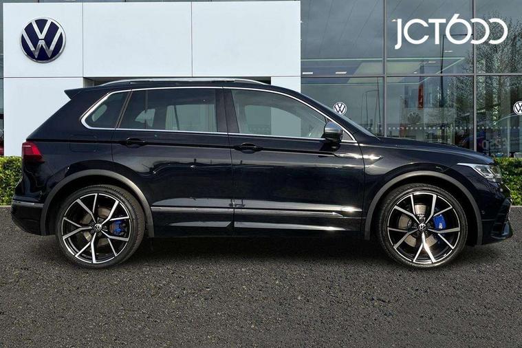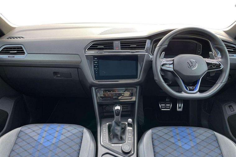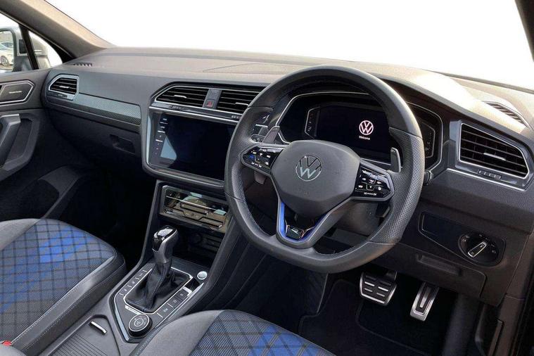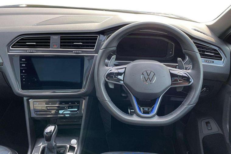 Adaptive cruise control ACC stop and go including speed limiter, App-Connect incl. App-Connect Wireless for Apple CarPlay and Android Auto, Bluetooth phone integration system, Distance control assist, Driver alert system, Driver profile selection, Dynamic road sign display, eCall emergency call system, Electromechanical speed sensitive power steering, Engine start/stop button, Instrument cluster mph speedometer Great Britain, Lane keeping system Lane Assist, Lights on warning, Motorised electric tailgate operated via key fob, drivers door and foot movement under tailgate, Multifunction front facing camera, Outside temperature display, Premium multifunction display with multi colour display, Remote control boot opening, Rev counter, Revision / skills operating concept travel assistant, Service interval indicator, Speed limit display, Start/stop system with regenerative braking, Tailgate/trunk lid unlocking from outside, Trip computer, Warning sound and light for doors and tailgate open, ACC - Adaptive chassis contol with adaptive dampers, All wheel drive - 4Motion, Battery regeneration during braking, XDS electronic differential lock for improved traction and handling, 2 USB-C ports in the front, 1 USB-C charging socket on the center console in the rear, 4 X 20 watt output, 8 speakers, Diversity antenna for FM reception, Radio, SD card slot, Simultaneous pairing of 2 compatible mobile devices, SMS functionality - read, compose and send SMS messages using touch-screen display, Title and cover art display, Auto dimming interior rear view mirror, Automatic headlight control system, Body colour door handles, Body coloured door mirrors with integrated indicators, Chrome matt mirror covers, Chrome moldings on the side windows, Coming/leaving home lighting function, Dynamic headlight range control, Front and rear electric windows, Front illuminated door sills with R logo, Heated rear window, High level 3rd brake light, IQ light-Adv high beam, Dynamic light assist for LED matrix headlamp+LED separate DRL+DCL, dark red rear LED tech, Poor weather light+ cornering light, Laminated safety glass windshield, heat and sound insulating, LED rear number plate lights, License plate carrier in front and rear, Poor weather light and cornering light, Privacy glass for rear side windows and rear window, R-Logo light projection, R-Logo on radiator grille with side panels and rear, R-specific diffuser, painted black with cut out for trailer hitch, R-Specific front and rear bumpers, Rain sensor windscreen wipers, Rear fog lamp, Rear side wing doors, Rear spoiler in R style, Rear windscreen washer and wiper with interval delay, Side and rear windows in heat insulating glass, Silver anodised roof rails, Trailer Stability Programme, Windscreen wipers/ intermittent wipe + 4 position delay, 12V outlet in center console rear and in luggage compartment, 12V outlet in front and tray, 2 cup holders in front, 2 LED front reading lights, 2 LED rear reading lights, 3 bench rear seats in 2nd row, 3 rear headrests, 4 load lashing points, 40:20:40 split folding rear seats, Air Care Climatronic 3 zone automatic climate control with enhanced air filter and controls in the rear, Backrest release for left front seat, Black headlining, Climate control unit rear with touch function, Door and side trim panel in foam film, insert in leatherette, Floor mats with R-Logo and stitching, Front centre armrest, Front footwell illumination, Front seats head restraints (x-adjustment), Height adjustable front seats, Height/reach adjust steering wheel, Instrument lighting white adjustable panel illumination, Interior light with delay, Isofix Preparation 2 Rear child seats, Leather gear knob, Lighting door sill trim at front with R Logo, Lockable cooled glovebox, Luggage compartment lighting, Luggage net, Pedals and footrest in stainless steel, R Performance steering wheel with R button, larger paddle shifters, blue stiching and blue steering wheel clip, R Specific key caps, R-specific sport skin with R Logo in active Info dsiplay, R-taster (direct selection of race mode/ flap control), Rear bench seat asymetrically split folding, longitudinally movable and folding with load-through hatch and center armrest, Remote unlocking for rear seat backrest, Removable luggage cover, Removable rear headrests, Safety optimised front head restraints, Single front passenger seat, Sliding/reclining rear seats, Standard rear seat release, Storage compartment in driver's door, Storage compartment in passenger's door, Storage compartment in rear doors, Storage compartments in luggage area left and right, Storage tray on dashboard, Sun visors with illuminated vanity mirrors, Tool kit, Top sports seats integrated headrest, blue R-Logo in front seats, seat centre panels and outer rear seats in fabric inner side bolster art Velors, Variable boot floor, height adjustable and removable, Ambience pack - Tiguan, Easy open and close pack with safelock - Tiguan, Park assist pack - Tiguan, 3 point seat belt for centre rear seats, 3 point seat belts with seat belt pretensioners for the outer rear seats, Active bonnet, Curtain airbags for front and rear passengers, Driver/Front Passenger airbags, Drivers knee airbag, Electronic parking brake with auto hold, Electronic Stability Control with driver steering recommendation, ABS, ASR, EDL, EDTC and trailer stabilization, Front assist with autonomous emergency braking (for Adaptive Cruise Control ACC up to 130 mph), Front disc brakes, Front passenger airbag deactivation, Front side airbags, Height adjustable front 3 point seatbelts + pretensioners, Hill hold control, Manual child proof rear door locks, Pedestrian monitoring system, Power assisted brakes, Proactive passenger protection system in combination with front assist, Rear disc brakes, Rigid safety cell with front and rear crumple zones, Two tone horn, Tyre pressure monitoring system, Warning sound and light for front seat belts if unfastened, Anti theft alarm system with i