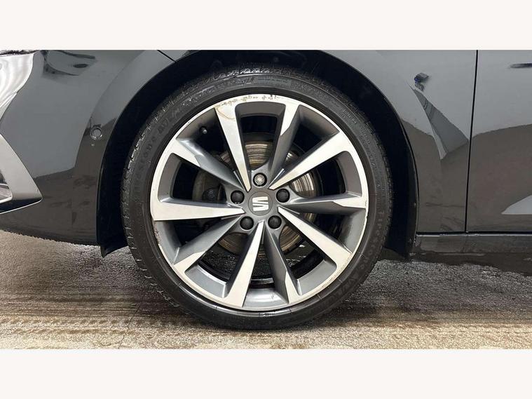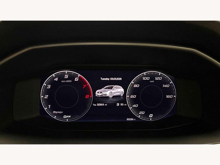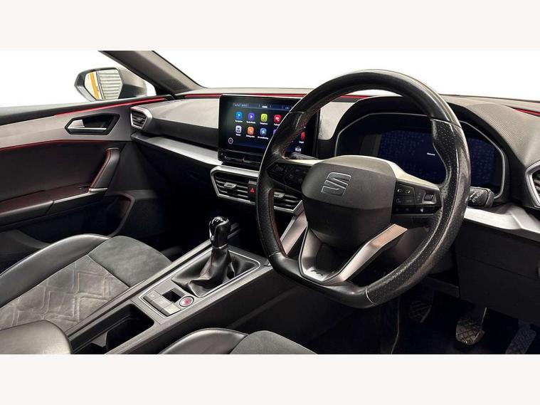 Digital cockpit, Front assist with forward collision warning braking reaction to vehicles, pedestrians and cyclists, Full link smartphone integration with Mirror Link, wireless Apple CarPlay and wired Google Android Auto, Lane assist, Lockable tailgate, Park assist (inc front/rear parking sensors), Power assisted speed sensitive electro-mechanical steering, RPM, trip computer, outside temp gauge, instrument light brightness, low fuel warning light, lights on reminder, gearshift indicator, SEAT drive profile with 4 modes (Eco/Normal/Sport/Individual), throttle response, Service interval indicator, Start/stop system with regenerative braking, Wireless phone charging, Sports suspension, XDS electronic differential lock and dynamic traction support, 7 speakers, Auxiliary input socket, Auto dimming rear view mirror, Body colour door handles, Body coloured bumpers, Dark tinted rear windows, Door mirror LED indicator lights, Electric adjustable/heated/folding door mirrors with memory, Electric front/rear windows, FR sports bumper, Illuminated front door sill, LED front fog lamps with cornering function, LED headlights and tail lights with dynamic turn signals, welcome light silhouette from exterior mirrors and dynamic headlight range control, LED rear fog lamp, Matt black roof rails, Rain sensing wipers, Rear wash/wipe, Separate daytime running light with automatic headlight control and coming home feature, 12V Accessory socket in the load area, 12v power point in centre console, 60/40 split rear bench seat with armrest, Ambient lighting with glovebox, footwell and single monocolour, Black headlining, Dust/pollen filter, Electric driver lumbar support + passenger manual lumbar support, Four x USB Type C ports, Front and rear height adjustable headrests, Front and rear reading lights X 4, Front centre armrest, Front seatback storage pockets, Heated front seats, Heated leather steering wheel with leather gearstick, Height/reach adjust steering wheel, ISOFIX points in outer rear seats with top tether anchorage points, Luggage tie-down hooks, Microsuede cloth upholstery, Power driver seat with memory and manual height adjustable passenger seat, Sliding boot cover, Sunvisors with covered illuminated mirror, Three zone climate control, Wraparound lighting, Media system plus with navigation - Leon, 3 point seatbelts on all rear seats, ABS, Brake control system - ESC and brake booster, Child proof door locks, Driver and front passenger airbags with front passenger airbag de-activation, front side and curtain airbags, Electronic parking brake, Extended safety system - seat belt tensioner, window closure and hazard lights, Hill hold control, Rear disc brakes, Seat belt reminder for front and rear seats, Tiredness recognition system, driver alert system, Tyre pressure monitoring system, Anti theft alarm system with interior monitoring in cab, backup horn and towing protection, KESSY Go (Keyless start), Locking wheel bolts, Chrome interior detailing, 18" Performance machined alloy wheels with 92Y tyres, Tool kit,