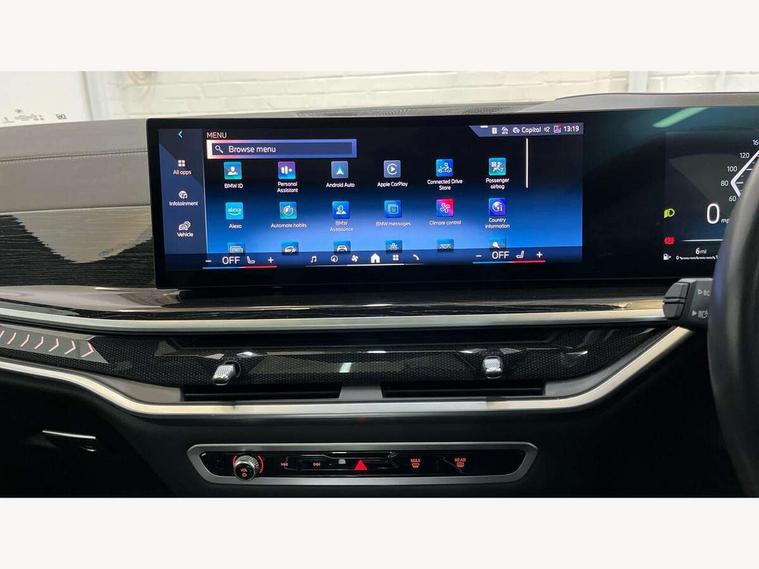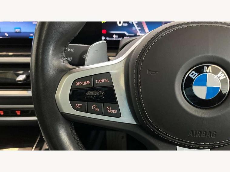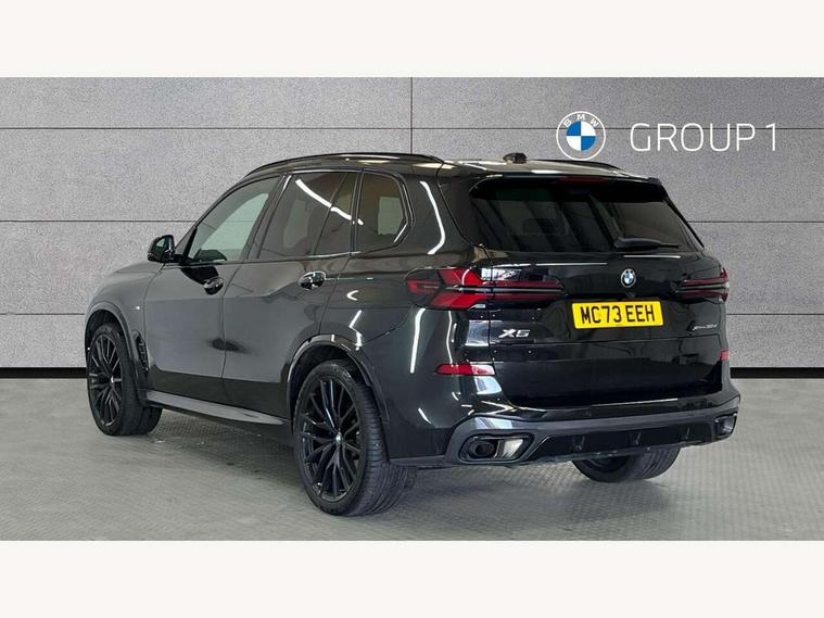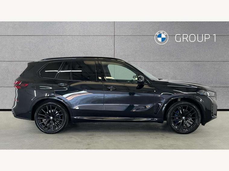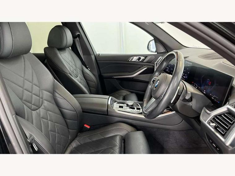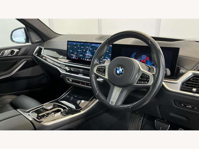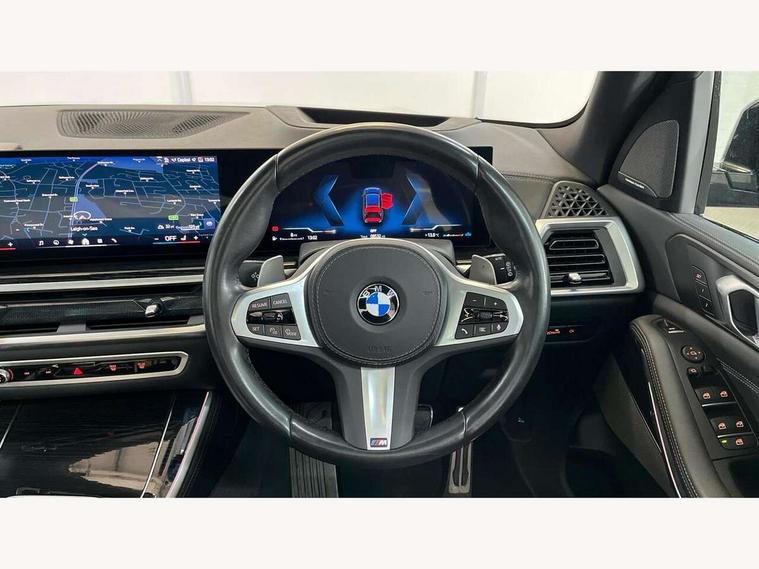 Attentiveness assist, Automatic tailgate operation, BMW ConnectedDrive online services, BMW live cockpit + with curved 12.3 instrument cluster/14.9 central display, nav/Tuner with diversity reception, RDS/4GLTE/remote software upgrade, BMW Recovery system, BMW Teleservices, Condition based service, Cruise control with brake assist, eCall emergency call system, Enhanced bluetooth with wireless charging, Integrated owner's handbook, PAS, Speed limiter, Wi-Fi hotspot, Drive performance control with ECO PRO comfort + sport mode, Eight speed steptronic sport automatic transmission and gearshift paddles on the steering wheel, Hi-Fi loudspeaker system, Adaptive LED Headlights, Front and rear electric windows, High beam assistant, High gloss black shadow line roof rails, LED daytime running lights, Rear side wing doors, Third brake light in rear spoiler, Variable intermittent rear wash/wipe, 12V - Power sockets with 2x centre console and 1x luggage compartment, 3 seat bench in 2nd row, Foldable rear centre armrest with 2 cupholders and storage compartment, Front and rear side armrest integrated into door trim, Headrests for all seats, Luggage compartment separating net, Single front passenger seat, Three spoke sport M leather steering wheel, Velour floormats, Ambient light interior pack - X5, Driving assistant pack with radar based driver assistance system - X5, Expanded exterior mirror pack - X5/X5 M, M aerodynamics pack - X5, 3 rear seatbelts, Active protection, Airbags - driver/front passenger, rear and side, first and second row seats head airbags, front passenger seat airbag deactivation + knee airbag, Anti-lock braking system (ABS), Automatic Stability Control (ASC), Brake energy regeneration, Cornering brake control (CBC), Crash sensor activating central locking release, hazard warning lights, fuel cut off, interior lighting + activation of safety battery terminal clamp, DSC - Dynamic Stability Control, Dynamic Traction Control - DTC, Electromechanical parking brake with automatic drive away release and auto hold function, Electronic brake force distribution, Hill start assistant, M Sport blue painted brake calipers with 'M' designation, Mechanical child proof lock on rear doors, Tyre pressure monitoring system, Tyre pressure sensors, Ventilated front and rear disc brakes, Warning triangle and first aid kit, Closing system with central locking, Comfort access system, Locking wheel bolts, Sensatec instrument panel,
