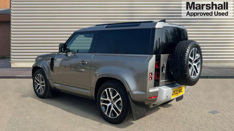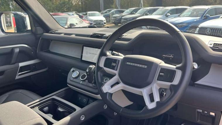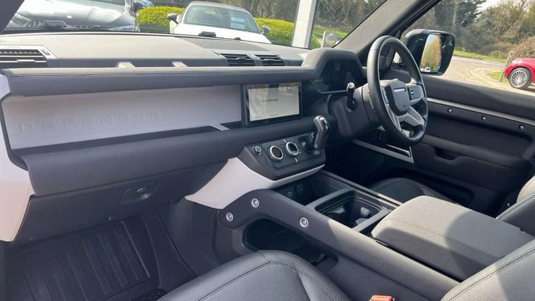 360 degree parking aid, 3D Surround Camera with 360 View, 180 Rear View, Front Traffic Detection, Forward Vehicle Guidance, Tow Hitch Assist and clear sight Ground View, Android Auto, Apple CarPlay, Assisted tailgate with soft close, Blind spot assist, Bluetooth system, Brake pad wear indicator, Clear exit monitor, Connected navigation pro, Cruise control + speed limiter, Driver condition monitor, Electric power assisted steering (EPAS), Lane keep assist, Push button start, Rear traffic monitor, Traffic sign recognition with adaptive speed limiter, Trip computer, Wade Sensing, 8 speed automatic transmission, Adaptive dynamics, All wheel drive system, Electronic air suspension, Twin speed transfer box, DAB Radio (Digital Audio Broadcasting), Meridian 400w sound audio system with 11 speakers and subwoofer, Pivi pro connected, Automatic headlight levelling, Automatic headlights, Body coloured roof, Centre high mounted stop light, ClearSight interior rear view mirror, Electric heated/power fold door mirrors with approach lights and auto dimming driver side, Electric windows with one touch open/close and anti-trap, Follow me home lighting, Front fog lights, Heated rear window with timer, Heated windscreen, Illuminated metal treadplates with brand name script, LED tail lights, Matrix LED headlights with signature DRL, Panoramic rear side glass, Privacy glass, Puddle lights, Rain sensing windscreen wipers, Rear fog lights, Rear wiper, Side hinged tailgate, Sliding panoramic roof, Trailer stability assist, 12 way heated and cooled electric memory front seats with 2 way manual headrests, 12V power socket in loadspace, 3 seat bench in 2nd row, 40:20:40 fixed rear seats with centre armrest, Alpine lights, Durable rubber cabin flooring, Durable rubber loadspace flooring, Electric cabin pre conditioning, Electric reach + rake adjustable steering column, Footwell lights, Front centre console refrigerator compartment, Grained Leather upholstery, Heated steering wheel, Leather gearshift, Light oyster morzine headlining, Loadspace cover, Loadspace Hook, Multifunction steering wheel, Overhead stowage for sunglasses, Premium cabin lighting, Rear headrests, Rear ISOFIX, Rear reading lights, Single front passenger seat, Standard interior, Standard leather steering wheel, Standard seat configuration, Storage glovebox, Sunvisors with illuminated vanity mirrors, Twin front cupholders with cover, Online pack with data plan - Defender, XS Edition exterior pack - Defender, 5 x 3 point seatbelts, ABS, Brake hold function, Cornering brake control (CBC), Cross car beam in light grey powder coat brushed finish, Customer configurable autolock, DSC - Dynamic Stability Control, EBD - Electronic brakeforce distribution, Electric parking brake (EPB), Emergency brake assist, Emergency braking, ESP + traction control, Front airbags with passenger seat occupant detector, HDC - Hill descent control, Hill launch assist, Low traction launch, Remote for (e-Call, Optimised assistance call, InControl app, Climate, beep and flash and door), RSC - Roll stability control, Seat belt reminder, TPMS (Tyre pressure monitoring system), Alarm, Immobiliser, Intrusion sensor, Keyless entry, Locking wheel nuts,