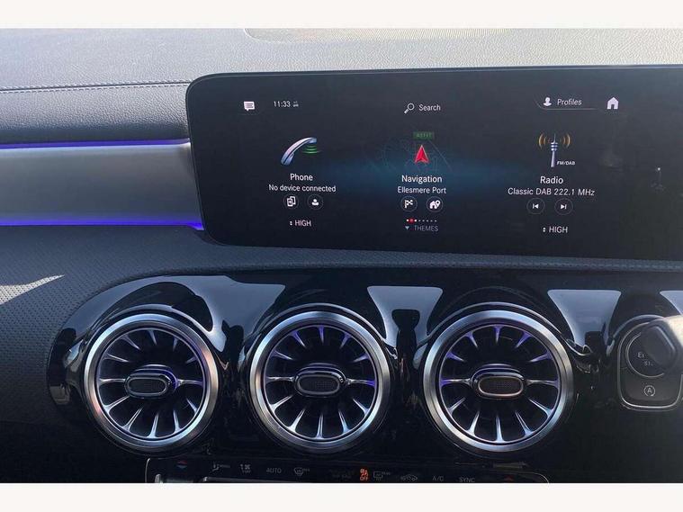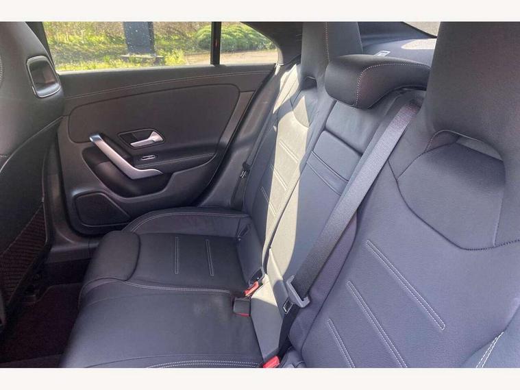 10.25 inch Instrument display with digital cockpit, 10.25 inch touchscreen central media display, Active lane keeping assist, Attention assist - Monitors steering behaviour and long journey fatigue, Bluetooth connection, Car wash mode, Cruise control with limiter, Direct steer system with speed sensitive power steering, DYNAMIC SELECT with a choice of driving modes (ECO, Comfort, Sport and Individual), ECO start/stop function, Fluid level warning indicator for fuel, oil, coolant and washer fluid, Hard-disk navigation, Hey Mercedes Voice activation, Lamp failure indicator, Mercedes me connect including emergency call system, accident recovery, breakdown and maintenance management, Mercedes me remote services, Outside temperature gauge, Owners manual and service booklet in English, Pre-installation of private car share, Preinstallation for Mercedes Benz link, Radio aerial integrated into front and rear windshields, Service indicator (ASSYST), Smartphone integration with Apple CarPlay and Android auto, Speed limit assist, Trip computer in multifunction display with current consumption indicator, Lowered comfort suspension, Rear axle multi-link, DAB digital radio tuner, MBUX multimedia system, Mid-range sound system, USB (type C) ports (2) in stowage compartment and 1 in front of centre console, Adaptive brake lights, AMG body styling with AMG front apron and rear apron and visible exhaust tailpipe in chrome trim elements, AMG bodystyling side skirts, Body colour bumpers, Body colour door handles, Chrome beltline strips, Diamond radiator grille pins in chrome, Electric windows, Electrically adjustable and heated door mirrors with integrated LED indicators, Exhaust system with 2 Visible tailpipe trim elements and rear apron with trim in chrome, Headlamp assist automatic headlamp activation, Heated glass rear windscreen + timer control, High level LED third brake light, Interior mirror with black reading lamps and frameless, LED high performance headlamps with integrated LED daytime running lights, LED tail lamp, Privacy glass with dark tinting on rear side windows and rear window, Rain sensing windscreen wipers with two sensitivity settings, Rear boot, Rear fog lamp, Rear side wing doors, Variable front intermittent wipers, Window line trim strip in chrome, 3 seat bench in 2nd row, 3 spoke flattened bottom nappa leather multifunction steering wheel with perforated leather in grip area, 40:20:40 split folding rear seat backrests, Air conditioning - Two zone thermotronic luxury automatic climate control with display, Air vents with surround in silver chrome, Artico man-made leather upholstery, Automatic child seat recognition sensor, Black roof lining, Brushed stainless steel sports pedals with rubber studs, Floor mats with stitched AMG lettering, Front centre armrest with stowage, Galvanished gear shift paddles on steering wheel, Heated front seats, Illuminated front door sills with changeable cover, Illuminated glove compartment stowage, Interior lighting - 64 colour Ambient lighting, Luggage net on driver/front passenger seat backrest, Manually adjustable front seats, Manually height and reach adjustable steering column, Rear armrest with two integral cup holders for drinks, Rear head restraints, Single front passenger seat, Sport seats with fixed head restraints, Stowage compartment in centre console with retractable cover, Sunvisors with illuminated vanity mirrors, Touchpad on center console, Twin front cupholders, Two outer rear seat isofix and top tether child seat fixing points, Keyless go comfort pack - CLA, Light and sight pack - CLA, Mirror pack - CLA, Night package - CLA, Parking package - CLA, Seat comfort pack - CLA, Active bonnet pedestrain safety measure which detects an impact and raises bonnet by 65mm, Active brake assist includes forward collision warning system with autonomous braking, Adaptive brake assist with hold function and hill start assist, Anti lock braking system (ABS) with brake assist, Black seat belts, Bonnet with power domes, Brake pad wear warning indicator, Childproof locks manually operated for rear doors and electrically operated for rear power windows, Crash responsive emergency lighting, Driver and front passenger head and sidebags, Driver and front passenger windowbags, Drivers knee airbag, Dual stage driver and front passenger airbags, Electric parking brake, Electronic stability programme with acceleration skid control, ESP curve dynamic assist, Front and rear seatbelt reminder, Front passenger seat occupancy sensor, Three point rear seat belts, Tyre pressure monitoring system, Warning triangle and first aid kit, Guard 360 degree guard vehicle protection system with immobiliser and interior protection, Remote central locking and crash sensor with emergency opening function, Light aluminium with longitudinal grain interior trim, 18" AMG 5 twin spoke light alloy wheels painted in black with high sheen finish, Summer tyres, Tirefit tyre sealant kit,