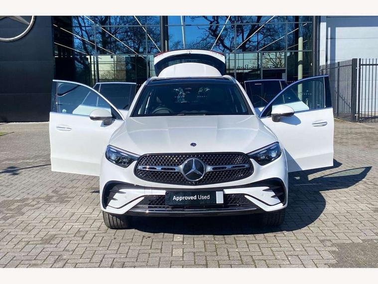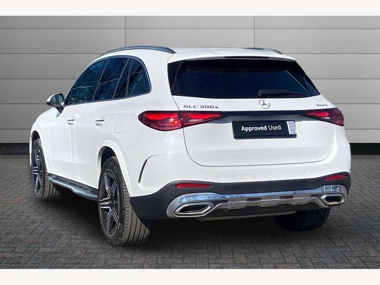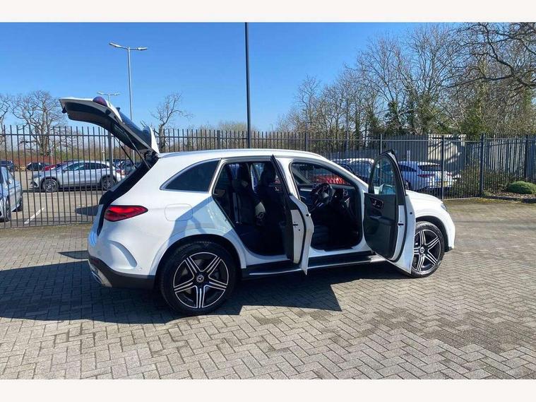 11.9" high resolution multimedia colour display, 12.3" Digital individually configurable instrument display, Acoustic presence indicator, Active lane keeping assist, Attention assist, Blind spot assist, Bluetooth interface for hands free telephone, Collision prevention assist plus, Cruise control with speedtronic variable speed limiter, Dashcam - front camera for video recording, Direct steer speed sensitive steering, DYNAMIC SELECT with a choice of driving modes (ECO, Comfort, Sport, Sport+ and Individual), eCall emergency call system, ECO start/stop function, Fingerprint scanner, Fluorescent jacket for driver, Hard disc navigation, Instrument display in miles with English lettering, MBUX augmented reality for navigation, MBUX navigation premium, MBUX voice control activated by keywords "Hey Mercedes", Mercedes me connect, Outside temperature display, Remote and charging services plus, Remote boot release, Road sign recognition system, Service indicator (ASSYST), Smartphone integration, Status display for rear seat belts in instrument cluster, Traffic sign assist, Trip computer, Wireless charging, 1 x type 2 and 3 phase 4m straight wallbox cable, 49 litre fuel tank, 4MATIC permanent four wheel drive, 7.4 kW monophase on board charger, 9G TRONIC plus automatic transmission, Alternating current charging system (AC charging), Comfort suspension, Petrol Particulate Filter (PPF), Self levelling suspension, DAB digital radio tuner, MBUX extended functions, Mercedes benz sound system, Pre installation for Mercedes Benz Link, Adaptive brake lights, Adaptive high beam assist plus, Aluminium look running boards with rubber studs, Aluminium roof rails, AMG bodystyling front apron, rear apron and side skirts, AMG Line exterior, Auto headlights, Body colour bumpers, Body colour door mirrors, Digital light LED headlights, Electrically adjustable door mirrors, Front and rear electric windows, Headlight washers, Heat insulating dark tinted glass, Heated rear window, High level LED brake light, Integrated LED daytime running lights, LED indicator lights, LED rear fog lights, LED tail lamp, Motor way mode function and locator lighting, Noise acoustic glass, Radiator grille with Mercedes Benz pattern and integreated Mercedes star and louvre in dark grey matt with chrome inlay and black frame, Rain sensor windscreen wipers, Range adjustable headlights, Rear side wing doors, Rear wiper, Transparent Bonnet, Two chrome plated tailpipe trim elements, Variable front intermittent wipers, Welcome and follow-me home light functionality, Wider wheel arch for AMG wheels, 3 seat bench in 2nd row, 40:20:40 split folding rear seats, Ambient lighting premium, AMG line interior, Artico man-made leather upholstery, Audio and onboard settings control on multifunction steering wheel, Automatic child seat recognition sensor, Black fabric roof lining, Black floor mats with AMG lettering, Double cup holder in centre console, Easy-pack removable load compartment cover, Electrically height/reach adjustable steering column, Front centre armrest with stowage compartment, Front head restraints, Galvanised steering wheel gearshift paddles, Heated front seats, Illuminated door sill panels with Mercedes Benz lettering, Illuminated glove compartment, Instrument panel and beltlines in ARTICO manmade leather in nappa look, Multifunction sports steering wheel in nappa leather, Rear centre headrest, Rear head restraints, Rear top tether child seat ISOFIX attachment, Single front passenger seat, Sports pedals with stainless steel surfaces and rubber studs, Sports seats, Sun visors, THERMATIC 2 zone automatic climate control, Anti theft protection package - GLC, Boot comfort package - GLC, Exterior chrome package - GLC, Interior chrome package - GLC, Interior lighting pack - GLC, Keyless-Go comfort package - GLC, Memory pack - GLC, Mirror pack - GLC, Parking package with 360 degree camera - GLC, Seat comfort package - GLC, Stowage space package - GLC 300e/300de, USB Plus Pack - GLC, 3 rear 3 point seatbelts, Active braking assist, Anti-lock braking system (ABS), ASR traction control, Automatic front passenger airbag deactivation, Black seat belts, Brake calipers with Mercedes-Benz lettering + perforated brake discs, Child proof door locks, Dual-stage airbags - driver and front passenger, driver knee bag and window bags for driver, front passenger and rear passengers, Electronic parking brake, Electronic stability programme (ESP) with curve dynamic assist and cross wind assist, Front and rear seatbelt reminder, Front passenger seat occupancy sensor, Front seatbelt pretensioners, Hill start assist, Tyre pressure monitoring system, Warning triangle and first aid kit, Automatic door locking, Guard 360 degree vehicle protection plus, Interior protection/immobiliser, Remote central locking, Centre console in metal structure finish, Metal structure trim, 20" AMG 5 spoke aerodynamically optimised light alloy wheels in painted black with high sheen finish, Summer tyres, TIREFIT with tyre inflation compressor,