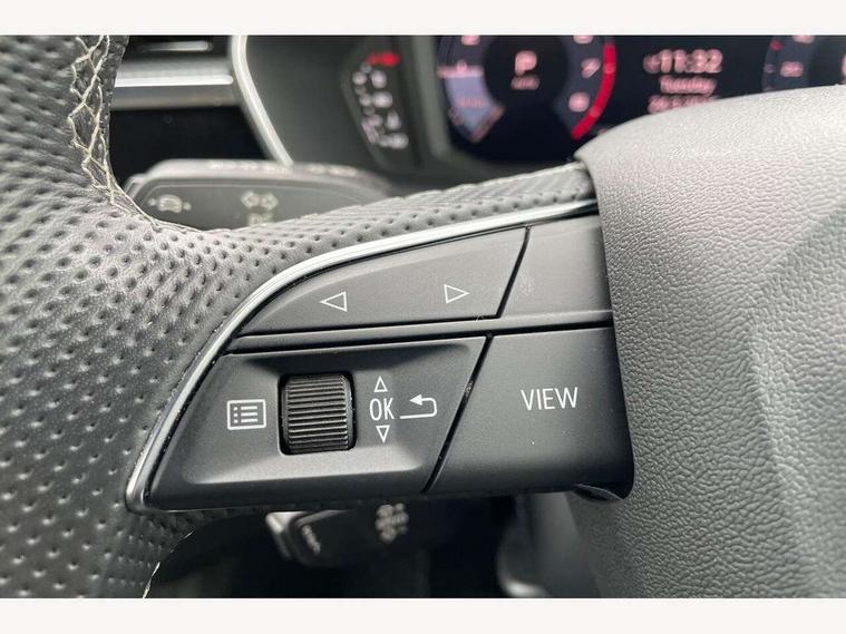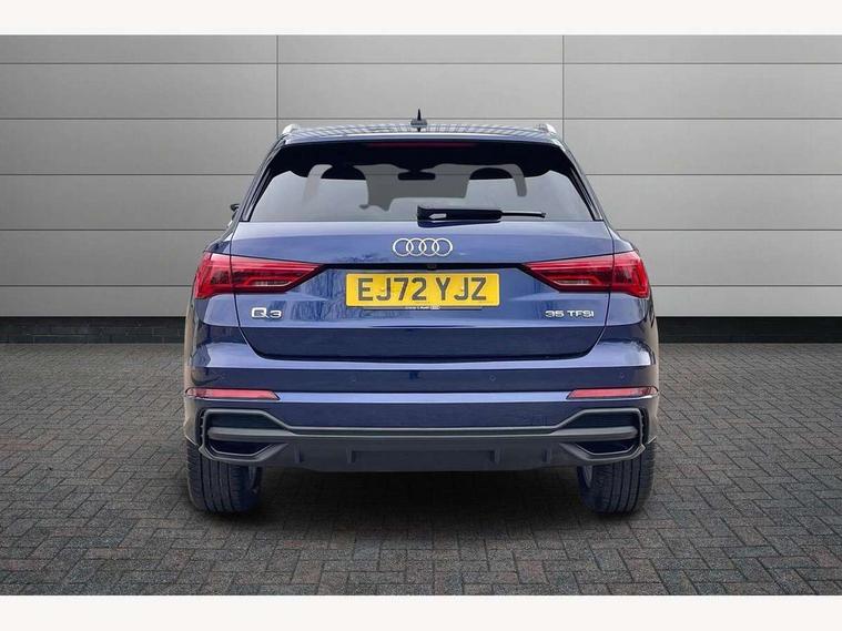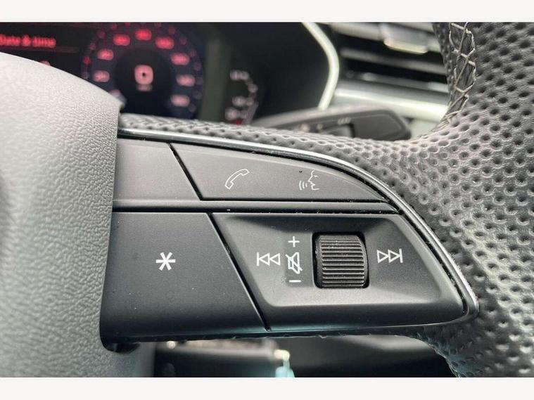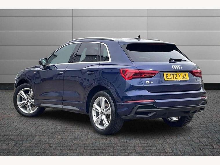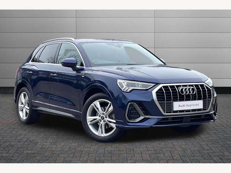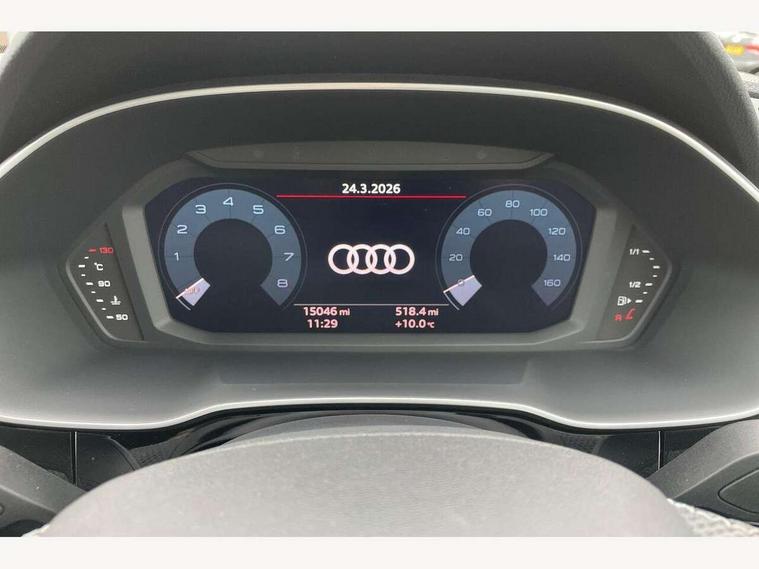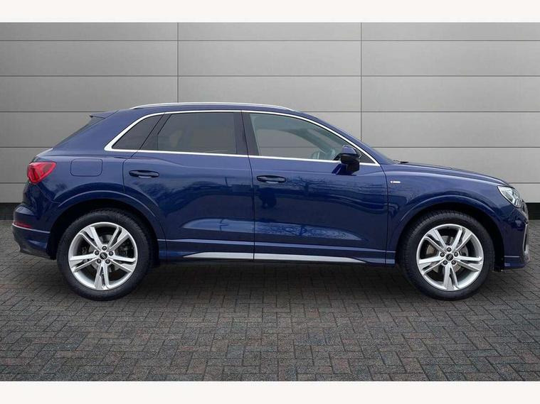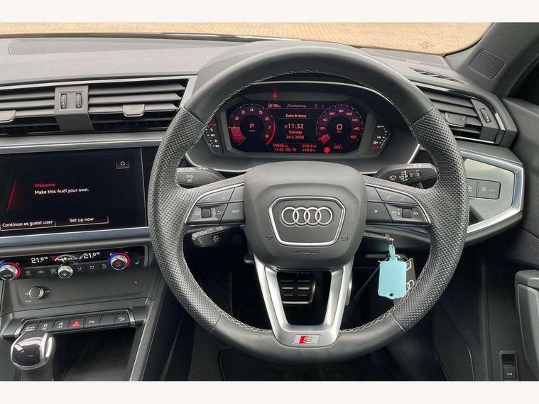 Amazon alexa Integration, Audi drive select, Audi lane departure warning, Audi Virtual Cockpit - 10.25" display, Bluetooth interface, Camera based traffic sign recognition, Legal emergency call, MMI Navigation Plus with high resolution 10.1 inch touchscreen colour display, Power operated tailgate, Progressive steering, Service interval indicator, Smartphone interface includes wireless Apple carplay/Android Auto, Start stop system with recuperation, Voice control system with natural language interaction, Sports suspension, 2 USB-C ports with charge and data functions, 6 passive loudspeakers, DAB digital radio module, Acoustic windscreen, Aluminium roof rails, Aluminium window trim, Auto dimming frameless rear view mirror, Body colour front spoiler blade, Body coloured bumpers, Electrically folding, adjustable and heated door mirrors with integrated LED side indicators and kerb view function for passenger side, Front and rear electric windows, Front fog lights, Front side air inlets in matt platinum grey, Grille vertical bars in aluminium silver/Matt, High gloss black finish B and C pillars, LED Dynamic rear indicators, LED headlights with LED daytime running lights, LED rear lights, LED third brake light, Privacy glass dark tinted rear and rear-side windows (from B-pillar backwards), Rain and light sensors, Rear diffuser grille in grained matt black, Rear diffuser strip in matt titanium black, Rear side wing doors, Rear wiper, S line badges on front wings, S Line front and rear bumpers, Side skirt insert in matt Platinium grey, Titanium black radiator grille, Variable front intermittent wipers, 12V socket in rear centre console, 3 seat bench in 2nd row, 40:20:40 folding with manual adjustment for 60:40 forwards/backwards position and backrest angle, Adjustable rear seat bench/backrest with centre armrest and cupholder, Black cloth headlining, Dual zone electronic climate control, Front and rear black floor mats with contrast stitching in rock grey, Front and rear headrests, Front and rear roof module including reading lights, Front centre armrest, Glove compartment lighting, Height and reach adjustable steering wheel, Illuminated door sill trims with S logo, ISOFIX child seat mounting for front passenger with airbag deactivation and outer rear seat including top tether attachment point for outer rear seats, Luggage compartment light, Manual front seats with height adjustment, Perforated leather gearknob, Single front passenger seat, Stainless steel luggage compartment sill finisher, Stainless steel pedals, Ambient lighting pack - Q3, Non smoking pack - Q3, 3x3 point rear seatbelts, 6 airbags - Driver, front passenger, curtain and side windows, Audi pre-sense front with pedestrain and cyclist recognition, Electrically operated child locks on rear doors, Electromechanical parking brake, Electronic stabilisation control including ABS, ASR and EDL, Front seatbelt reminder, Hill descent control, Hill hold assist, Pre sense basic, Seatbelt monitoring, Tyre pressure warning, Warning triangle and first aid kit, Anti theft alarm, Anti theft wheel bolts, Immobiliser, Remote central locking, Dark matt brushed aluminium inlay, Detail dashboard around MMI touch colour display in glass look, black with surround in aluminium look, Leatherette door armrest,