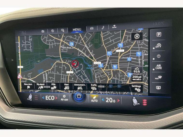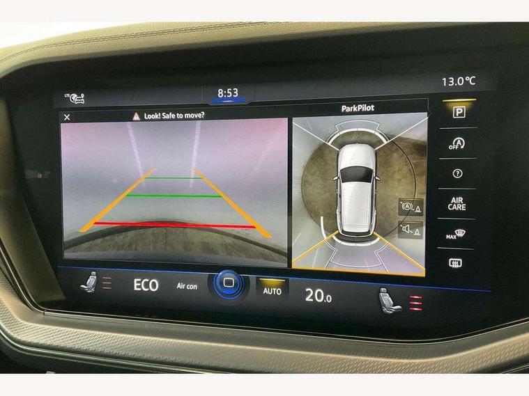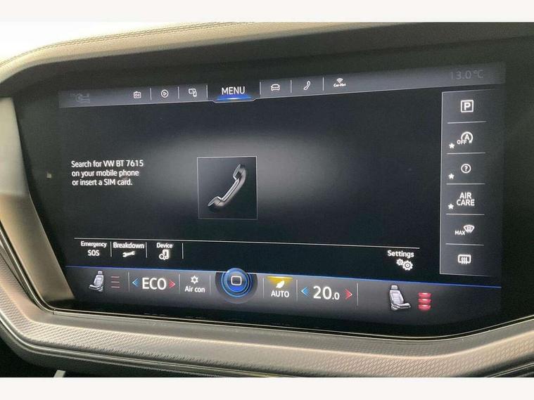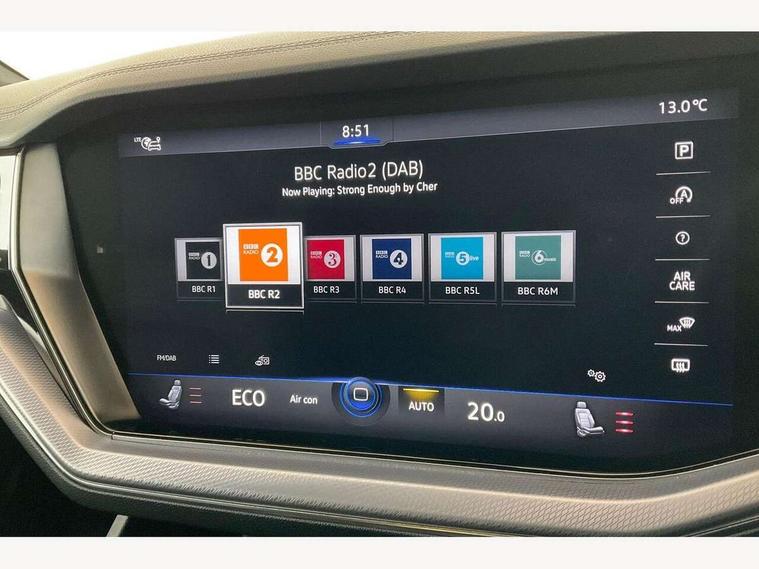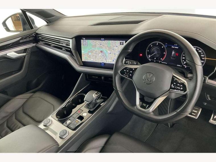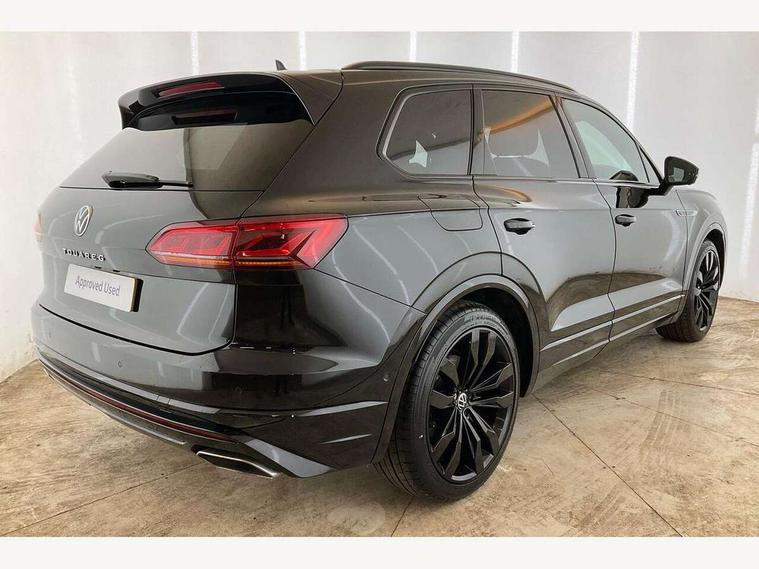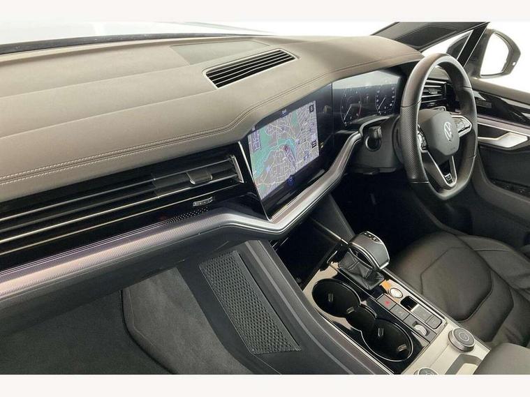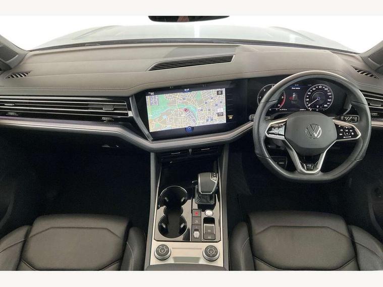 2D/3D map view, ACC - Adaptive cruise control with front assist, forward collision warning, distance monitoring, city emergency brake and speed limiter, Apple car play/Android Auto, Audible and visual fatigue detection system, Bluetooth hands free telephone connection, Car information display, Drive select with Damper control, Driver alert system, Driver profile selection, Dusk sensor, Dynamic road sign display camera controlled system with visual warning for traffic and road signs, eCall emergency system, Fully electric tailgate + keyless entry and start, Instrument cluster, MirrorLink, Multifunction camera, Multifunction computer premium with 7" colour display, One touch indicators with repeat function, Service interval indicator, Speed sensitive power steering, Start/stop system with regenerative braking, Tailgate power latch, Think blue trainer driver tips and journey analysis, Traffic sign recognition, Voice control system, Wireless Smartphone charger, 24 litre AdBlue tank, Torsen limited slip differential, DAB Digital radio, Dynamic navigation based on TMC+, Gesture control for infotainment system, Multi device interface (MDI) with illuminated USB-C connection, Music playback - MP3, WMA and AAC files, SD card slot, Simultaneous pairing of 2 compatible mobile devices, SMS functionality - read, compose and send SMS messages using touch-screen display, Title and cover art display, Volkswagen media control, Adaptive low beam for urban and motorway use, Auto dimming rear view mirror, Automatic coming/leaving home lighting function, Automatic headlights, Black anodised roof rails, Black door mirrors, Black rear diffuser, Black side window surrounds, Black upper and lower grille louvres extending into headlights and radiator grille, Body colour door handles, Body coloured wheel arches, C signature gloss black front air intake, Chromed tailpipe on the left and right integrated in the bumper with trapezoid design, Dynamic headlight range control, Electric front tilt/slide panoramic sunroof and fixed rear sunroof, Electrically power adjustable, heated, folding, auto dimming, front passenger exterior door mirror lowering function, Front and rear electric windows, Galvanised body, Gloss black finish B pillar, Gloss black rear diffuser, Headlight washers, Heat insulating glass in side and rear windows, Heated windscreen washer jets, IQ.Light-LED matrix headlight, daytime running light with dynamic cornering light and indicator, LED 3rd brake light, LED rear fog light, LED rear number plate lights, Plastic scuff plates in door apertures, Poor weather light, Puddle lights, Rain sensor, Rear side wing doors, Rear wiper, 12V socket in front and rear centre console and boot, 2 Coat hooks on B pillar, 3 rear head restraints, 3 seat bench in 2nd row, 3 spoke sport heated leather multi-function sports steering wheel with gear shift paddles - generation 2, 4 way adjustable front head restraints, 4 way electric lumbar support for driver and front passenger, 4 zone climate control, 40:20:40 split folding slide/recline rear seat, B pillar vents, Black lower edge of door extending sills, Branded points of interest, Double sun visor for drivier and passenger with LED illuminated vanity mirrors, Electric luggage compartment cover, Folding rear centre armrest with 2 cupholders, Front + rear carpet mats, Front centre armrest with storage box, Gear shift indicator, Height/reach adjust steering wheel, Illuminated air conditioned glovebox, Isofix preparation for 2 rear child seats, Jack and tool kit, Leather trimmed gear knob with gloss black inlay/aluminum trim, Leatherette door trim, LED luggage compartment lighting, Load through provision, Luggage compartment with load lashing rings, Plastic loading edge protection, Rear seat remote release levers, Single front passenger seat, Soul black headlining, Stainless steel pedals, Innovision cockpit pack - Touareg, 3 point front seatbelts with pre-tensioners, ABS, Active bonnet, Automatic post collision braking system, Curtain airbags, Driver/Front Passenger airbags, EBD + Brake Assist, EDL, Electronic parking brake with auto hold, ESC with ASR, Front seat side impact airbags, Hill descent control, Hill start assist, Passenger airbag deactivate switch, Seatbelt warning lamp and buzzer, Three 3 point rear seatbelts, Two tone horn, Volkswagen roadside assistance, Warning triangle and first aid kit, Alarm with interior monitoring in cab, backup horn and towing protection, Child security locks for front and rear doors, Electronic engine immobiliser, Remote central locking, Black decorative trims on the side windows, High gloss black centre console,